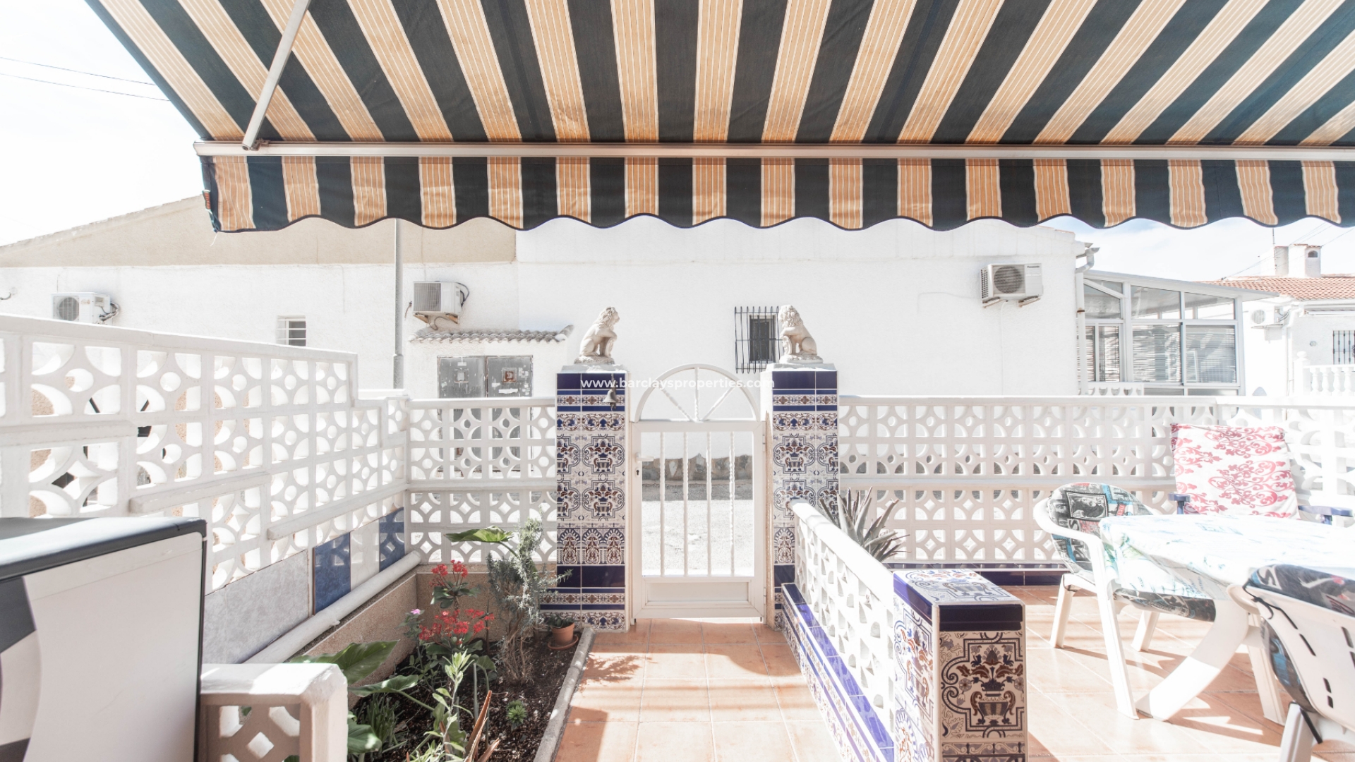 Dieses charmante Reihenhaus, ein Modell 'Cristina', befindet sich in der Urbanisation La Marina in einer zentralen und doch ruhigen Gegend. Es ist nur einen kurzen Spaziergang von Annehmlichkeiten wie Supermärkten, Geschäften, Arztpraxen, Apotheken und einer Mischung aus Bars und verschiedenen Restaurants mit lokaler und internationaler Küche entfernt.