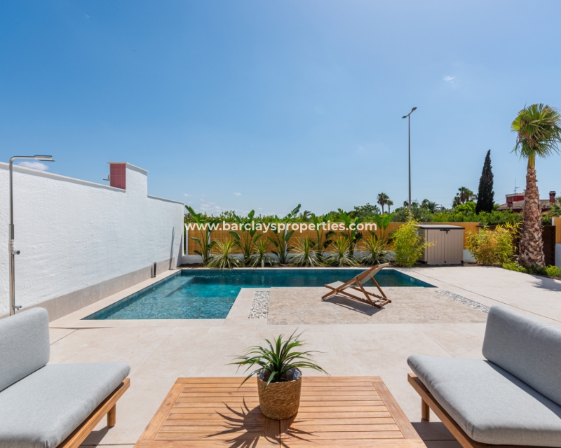 Entdecken Sie Ihren mediterranen Traum in dieser neu gebauten Villa. Ein ➡️ ebenerdiges Haus mit 3 Schlafzimmern und 2 Bädern auf einem 300m2 großen Grundstück bietet eine perfekte Mischung aus modernem Komfort und zeitlosem Charme.