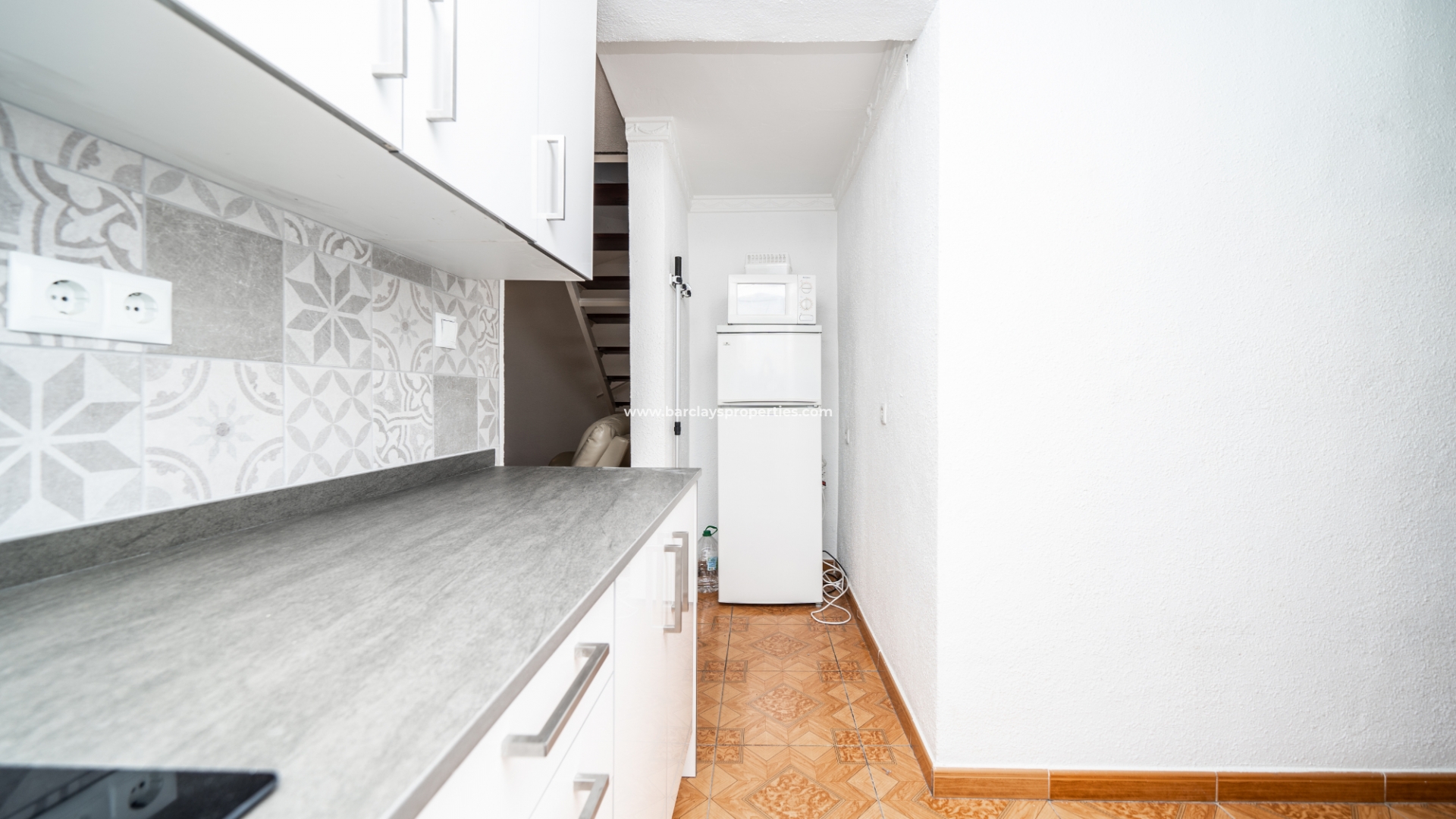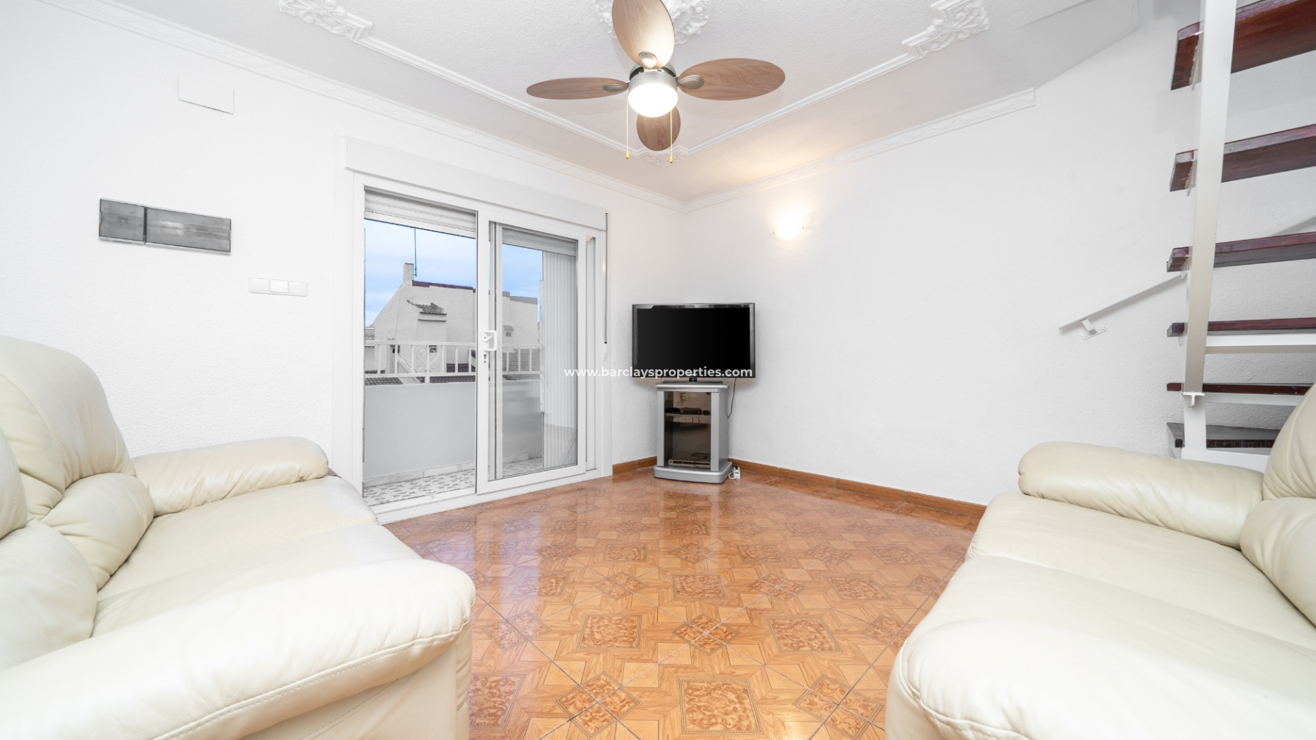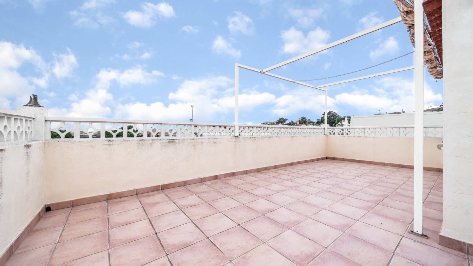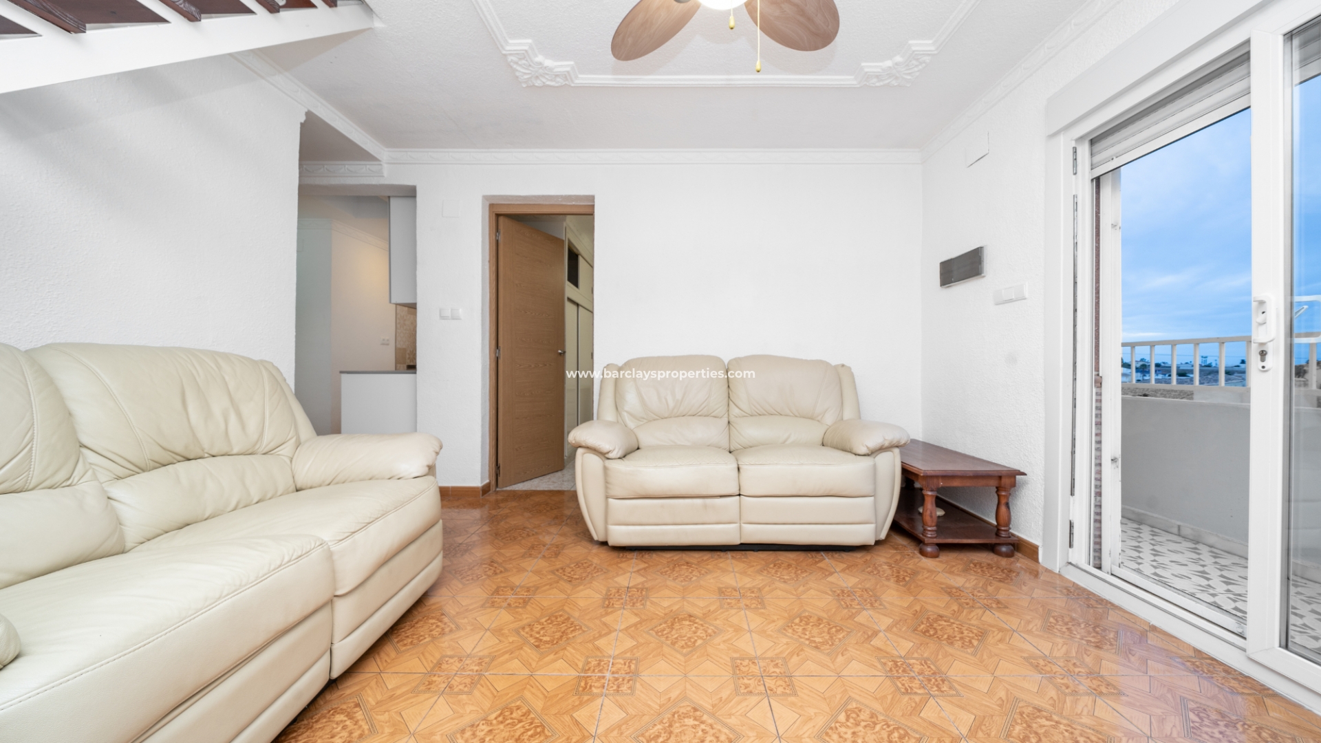 Treppen auf der vorderen Terrasse führen zur oberen Ebene dieses "Rosita", wo sich eine Sonnenterrasse und Zugang zum Inneren der Immobilie durch Schiebetüren befinden, die Zugang zum Wohnzimmer, zur offenen, neu renovierten, modernen Küche, 2 Schlafzimmern und neu renovierten, modernen Badezimmern geben. Eine interne Treppe führt uns zur Dachterrasse mit herrlichem Blick von der Immobilie, einer Pergola für Schatten und einem praktischen Abstellraum.