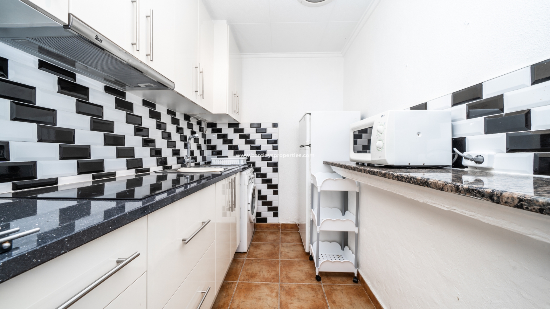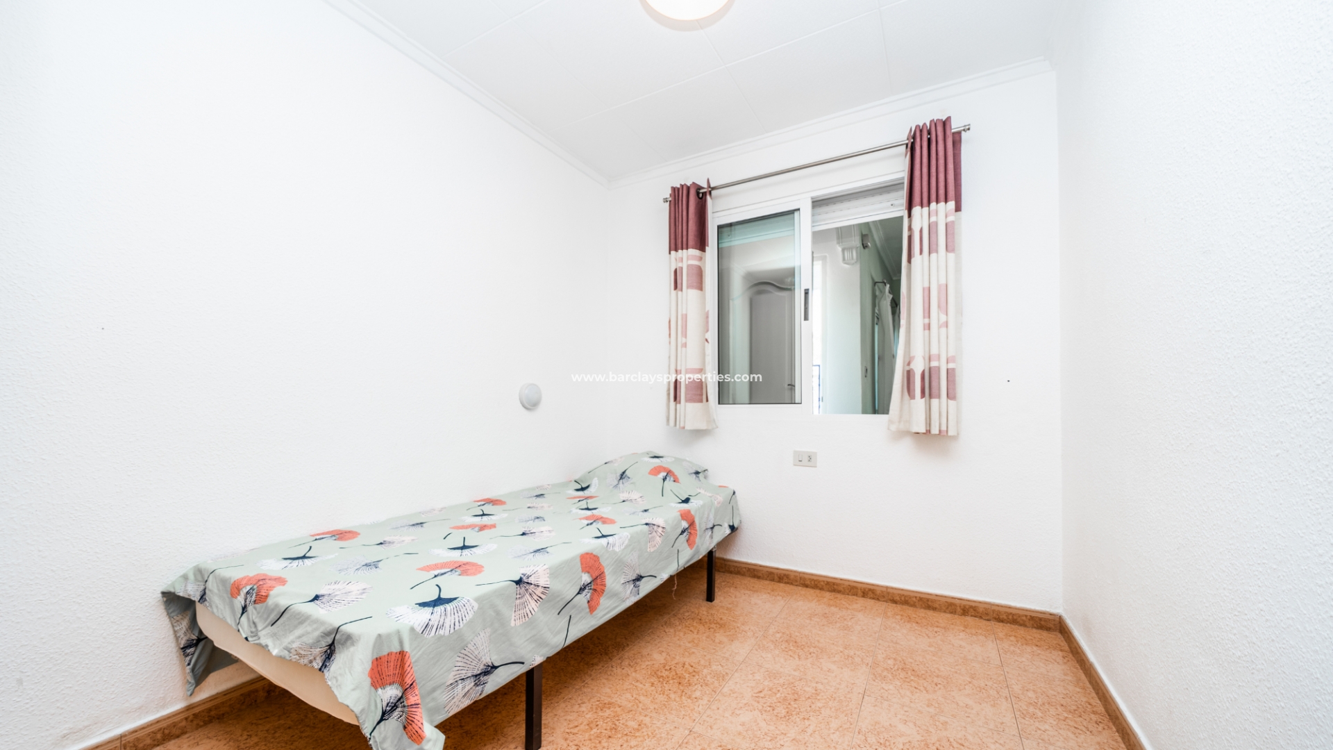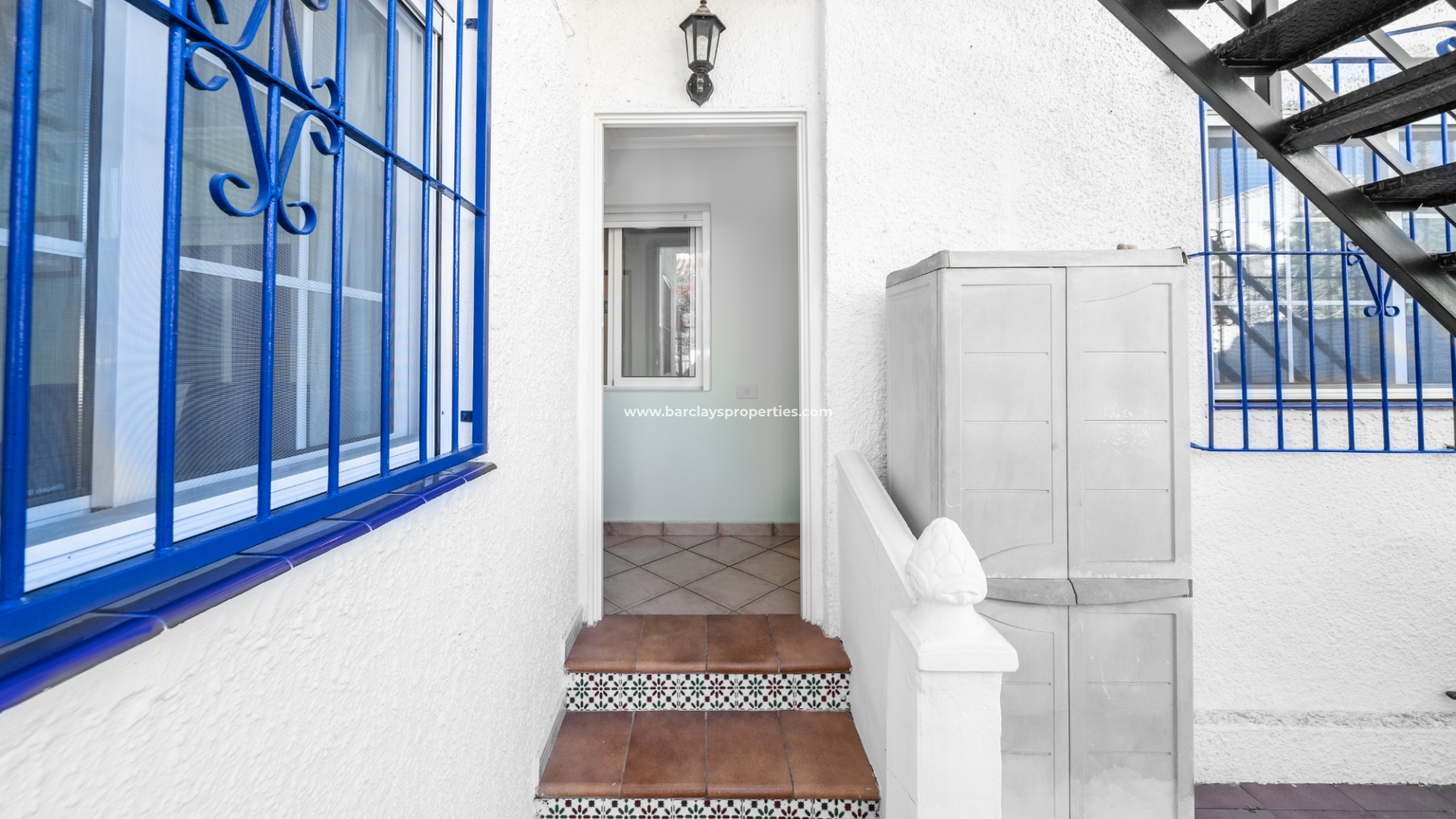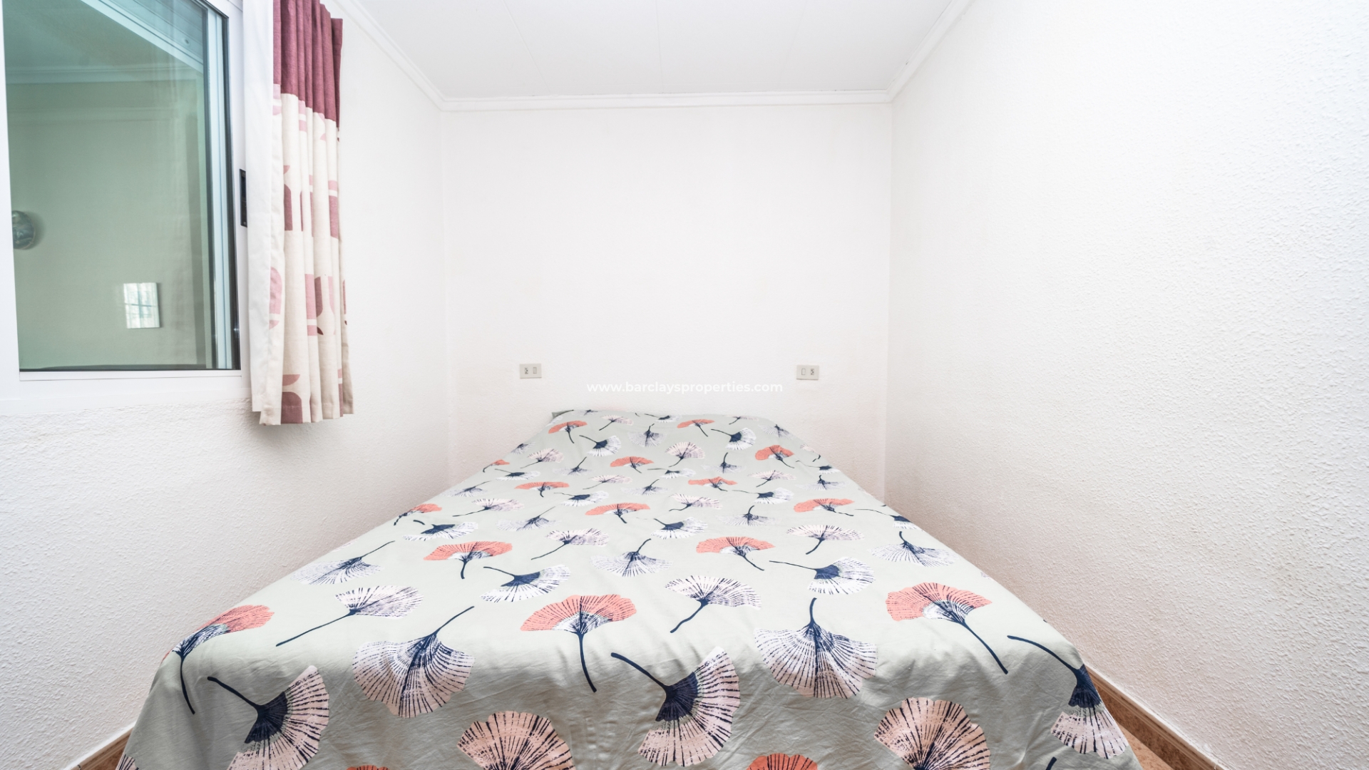 Der Innenraum dieser charmanten Immobilie in Urb La Marina besteht aus einem Wohnzimmer mit Klimaanlage, das einen kühlen und einladenden Raum zum Entspannen und Unterhalten bietet. Durch den Flur gelangen Sie zu einem geräumigen Schlafzimmer mit Doppelbett, das Privatsphäre und Ruhe bietet. Die unabhängige Einbauküche ist modern und funktional. Darüber hinaus verfügt die Immobilie über zwei weitere Schlafzimmer, die jeweils ausreichend Platz und natürliches Licht bieten. Das Badezimmer ist gut ausgestattet mit einer bodenlangen Dusche, WC und Waschbecken, um Bequemlichkeit und Komfort für die Bewohner zu gewährleisten.