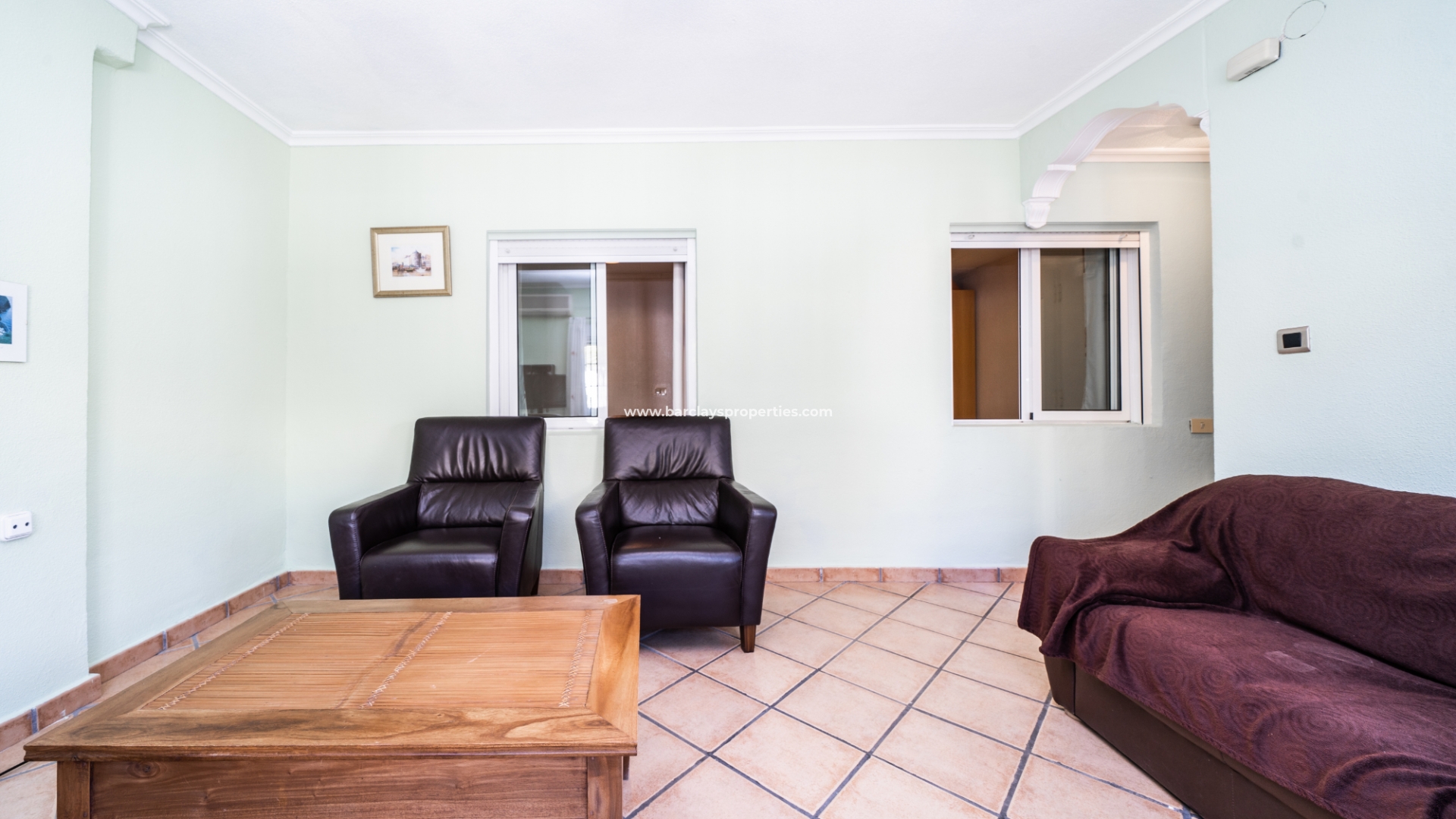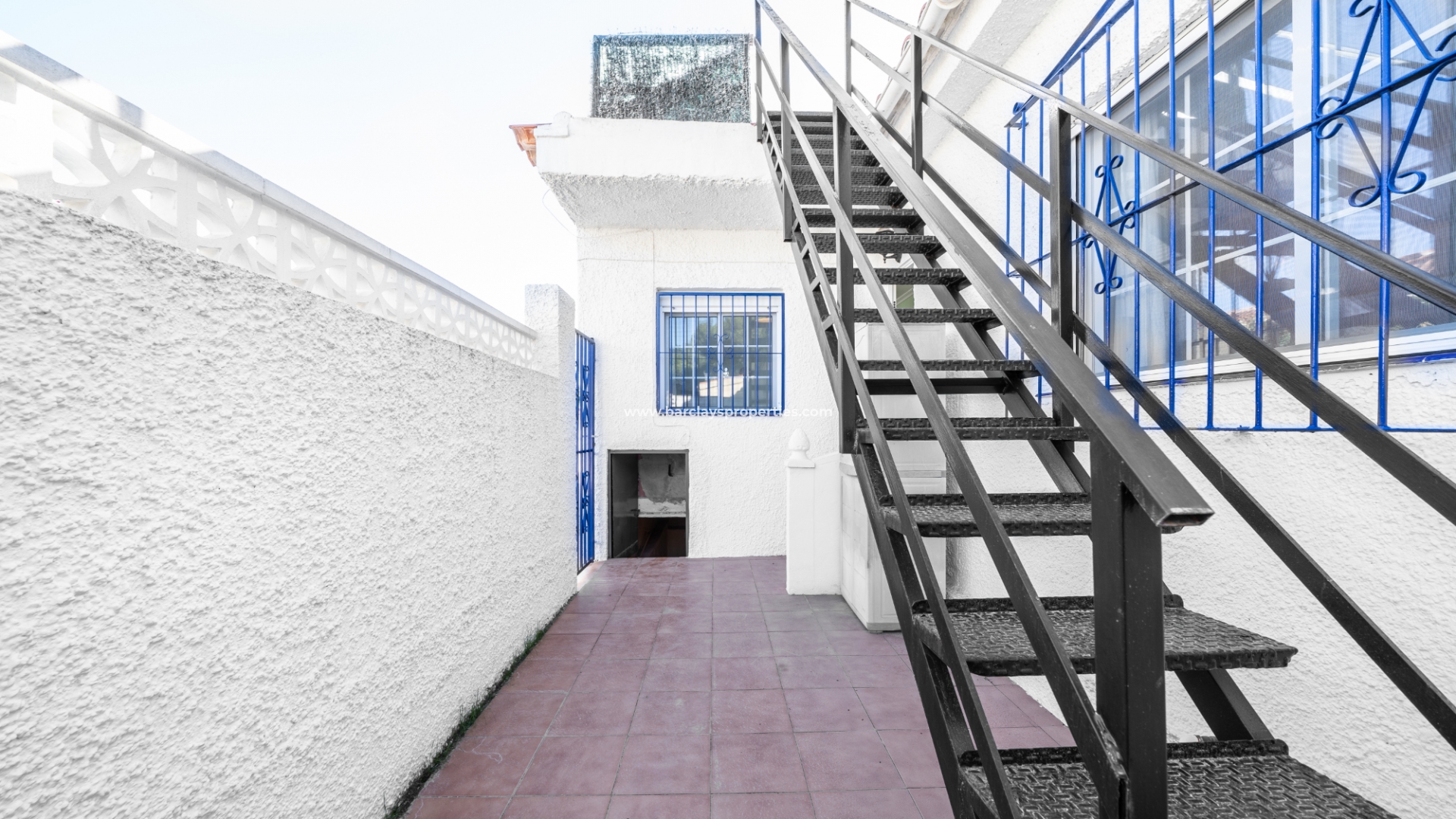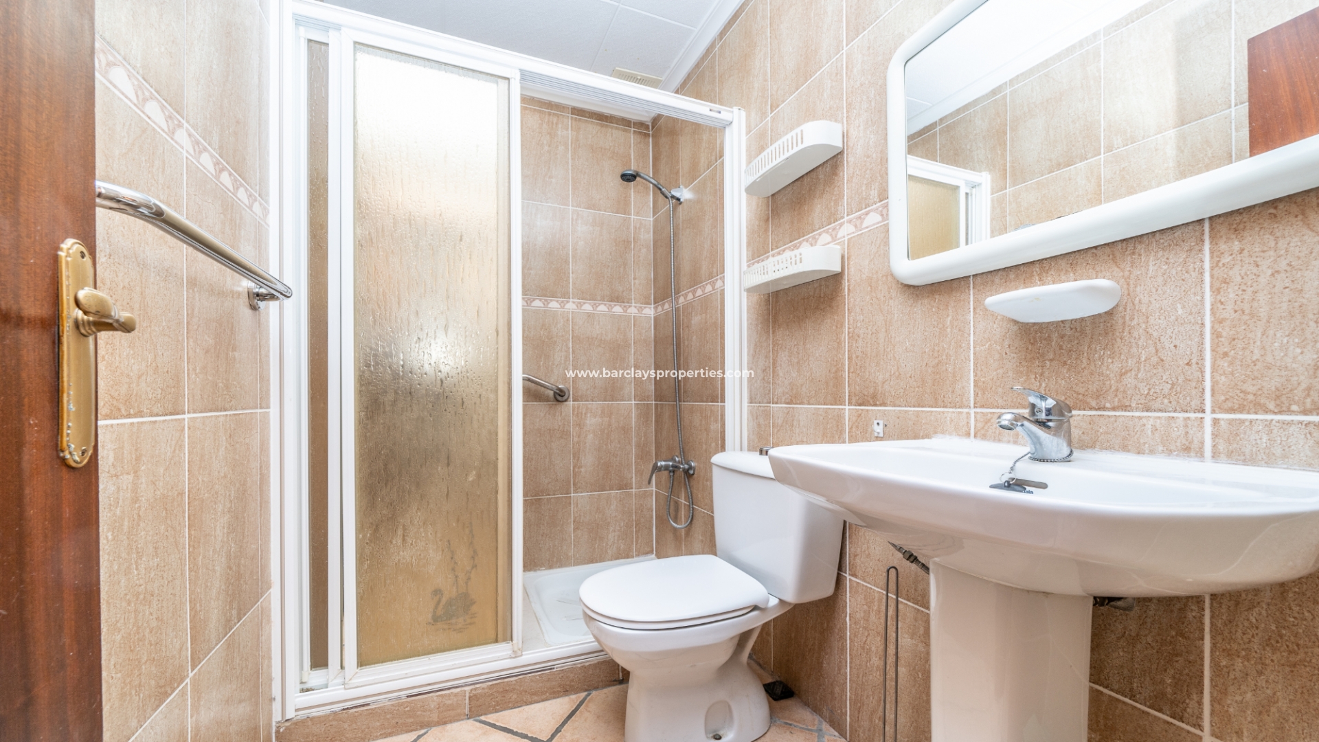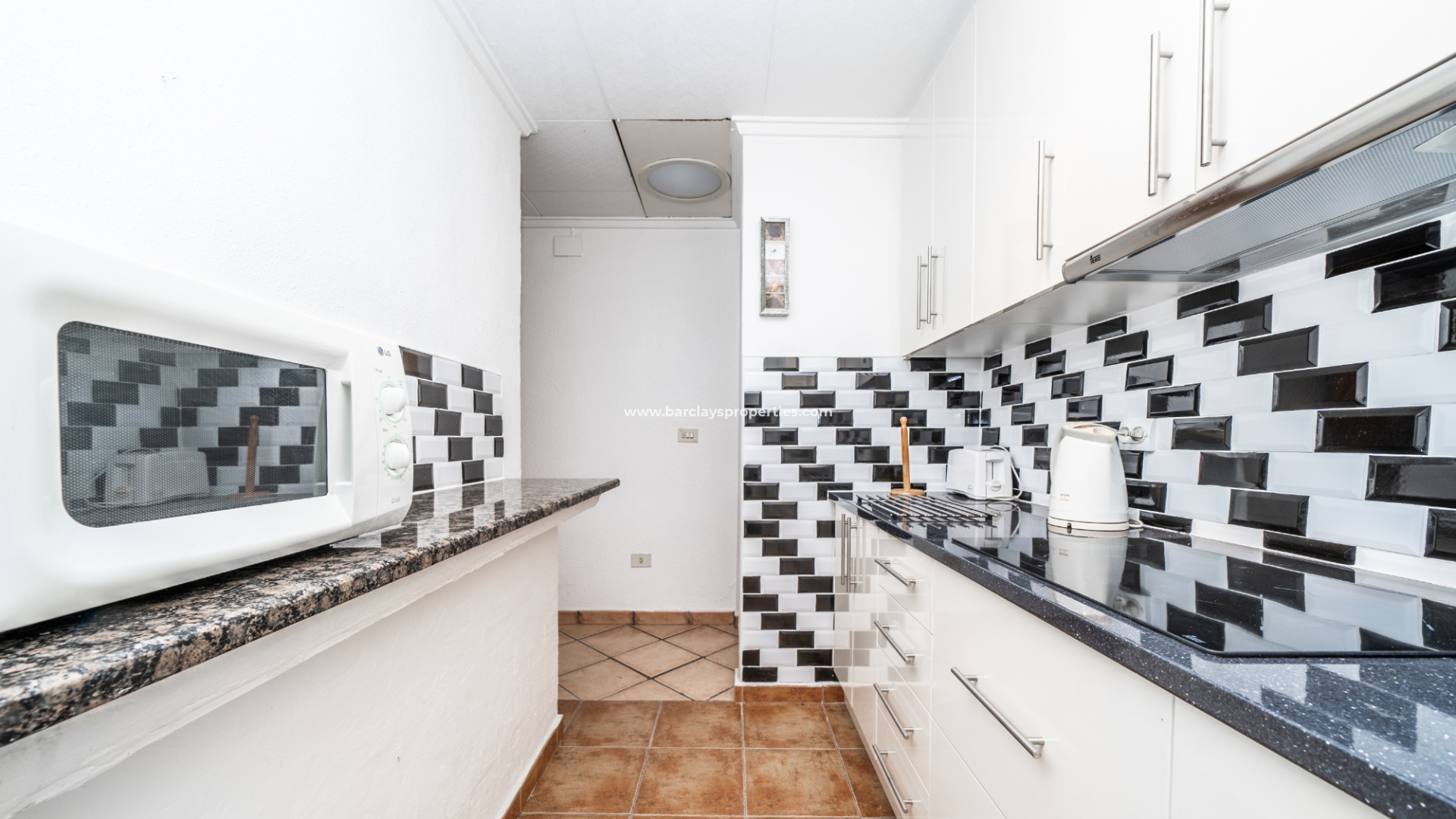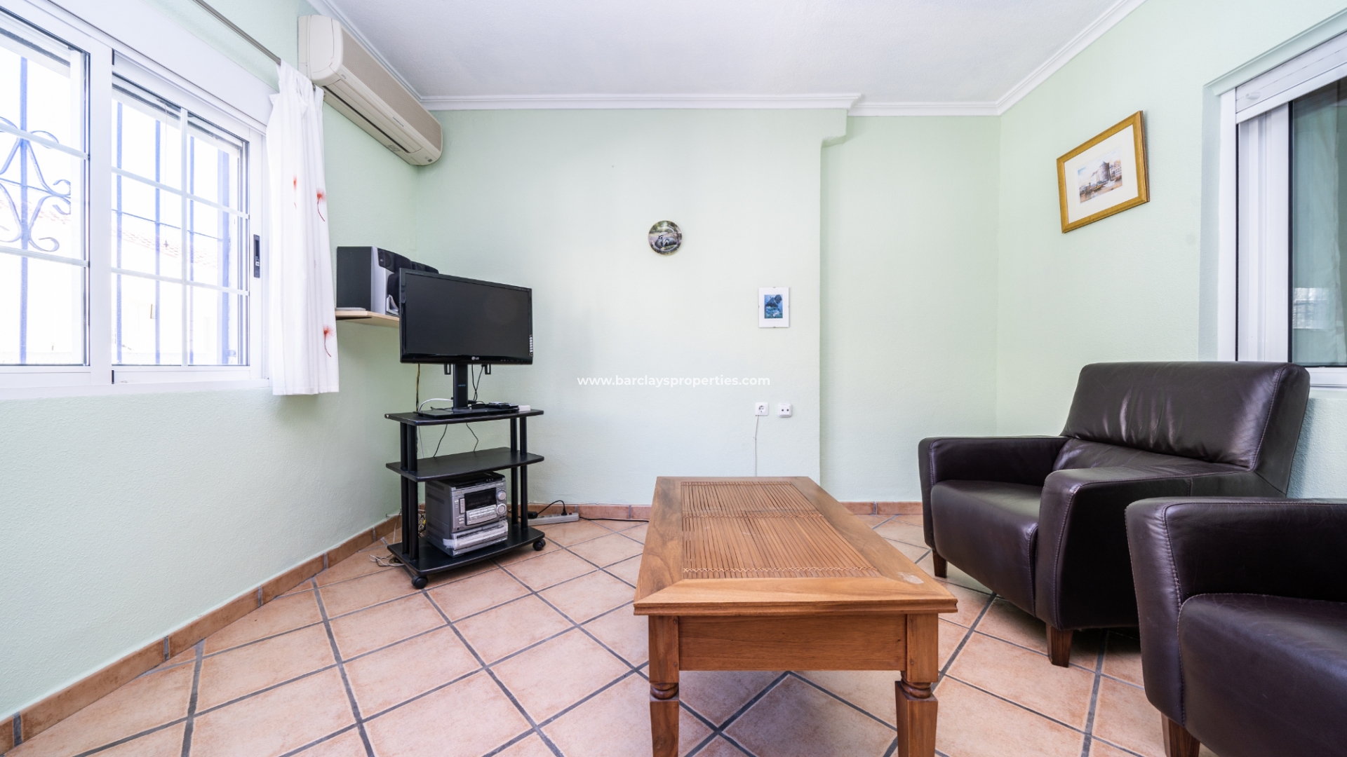 Der Innenraum dieser charmanten Immobilie in Urb La Marina besteht aus einem Wohnzimmer mit Klimaanlage, das einen kühlen und einladenden Raum zum Entspannen und Unterhalten bietet. Durch den Flur gelangen Sie zu einem geräumigen Schlafzimmer mit Doppelbett, das Privatsphäre und Ruhe bietet. Die unabhängige Einbauküche ist modern und funktional. Darüber hinaus verfügt die Immobilie über zwei weitere Schlafzimmer, die jeweils ausreichend Platz und natürliches Licht bieten. Das Badezimmer ist gut ausgestattet mit einer bodenlangen Dusche, WC und Waschbecken, um Bequemlichkeit und Komfort für die Bewohner zu gewährleisten.