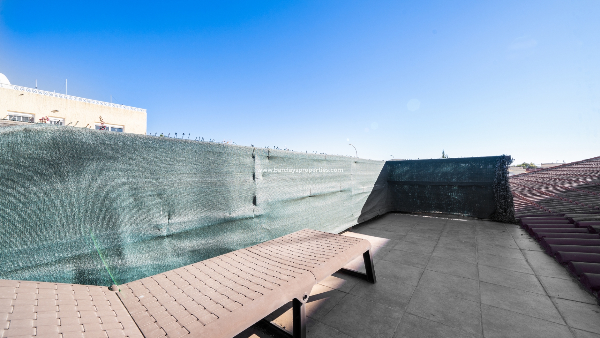 Die Einbeziehung von ✅Haushaltsgeräten, doppelt verglasten Fenstern und Klimaanlage trägt zum Komfort und zur Bequemlichkeit dieses Hauses bei. Zusätzlich bietet der ✅Unter-Terrassen-Abstellraum praktischen Platz zur Aufbewahrung von Gegenständen. Die Immobilie verfügt über Außentreppen, die zum Dach-Solarium mit Blick auf die Urbanisation führen.