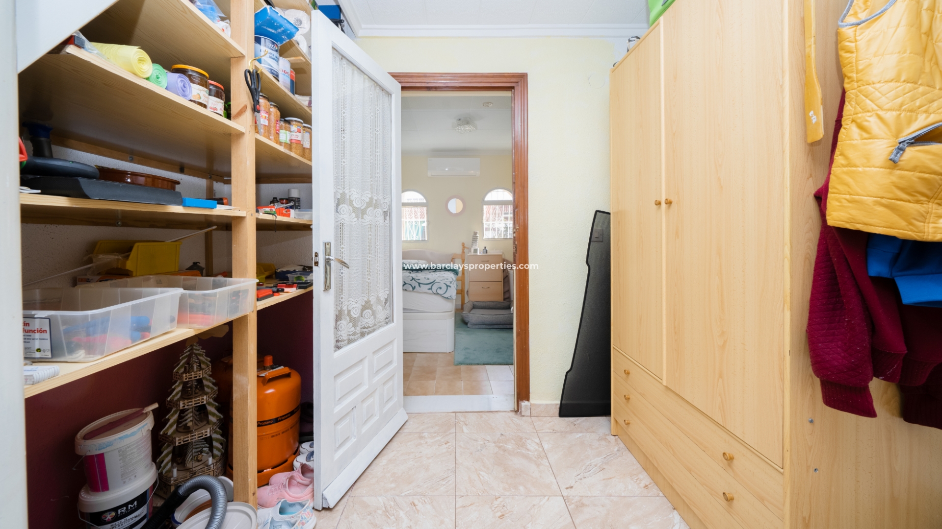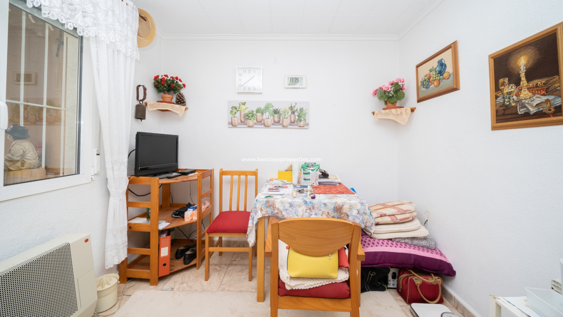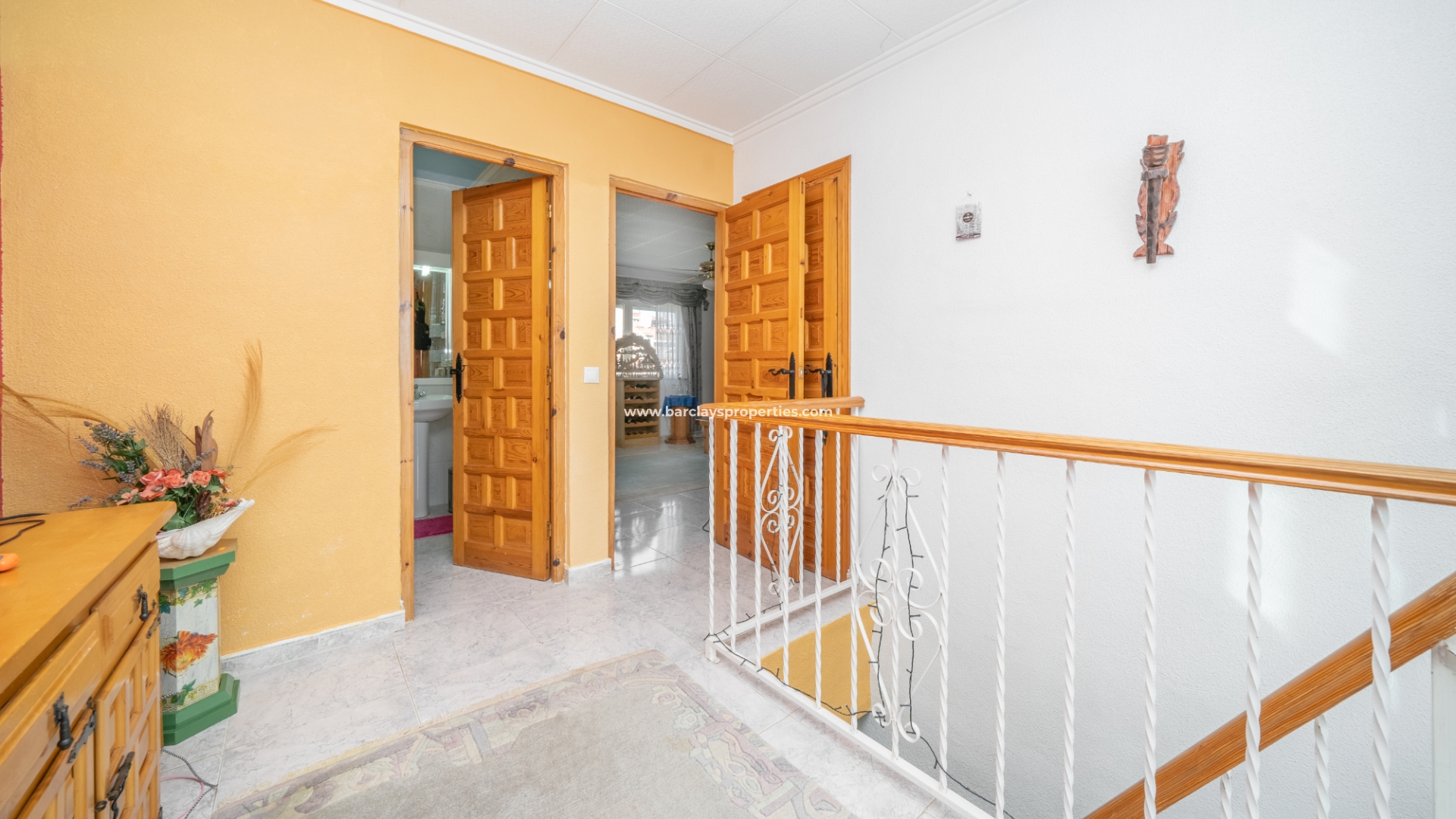 Wir betreten die Immobilie und finden eine gut ausgestattete amerikanische Küche / Esszimmer mit Gasheizung, die zu einem Schlafzimmer mit Deckenventilator führt, ein Badezimmer mit Eckdusche und einen Hauswirtschaftsraum / Vorratsraum, der zu einem zweiten Schlafzimmer führt und Treppen zum ersten Stock hat. Hier finden wir einen nach Süden ausgerichteten Wintergarten, der als Sommerzimmer / Wintergarten genutzt wird, eine Landung mit einem Deckenventilator, ein Badezimmer mit Dusche, einen praktischen Abstellraum und ein geräumiges Wohnzimmer mit einem Gas-Kamin, Klimaanlage und Deckenventilator. Vom Wohnzimmer aus gelangen Sie zu einer Kochnische mit Zugangstür zu einem großen Balkon und einer Wendeltreppe, die zum Solarium mit atemberaubendem Panoramablick führt.