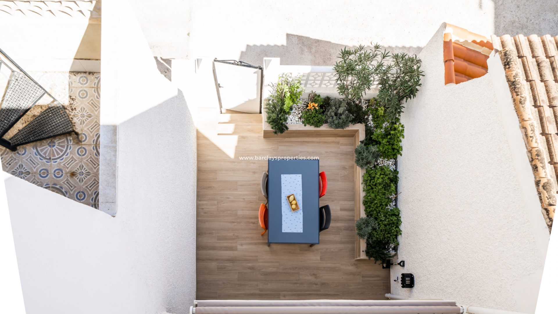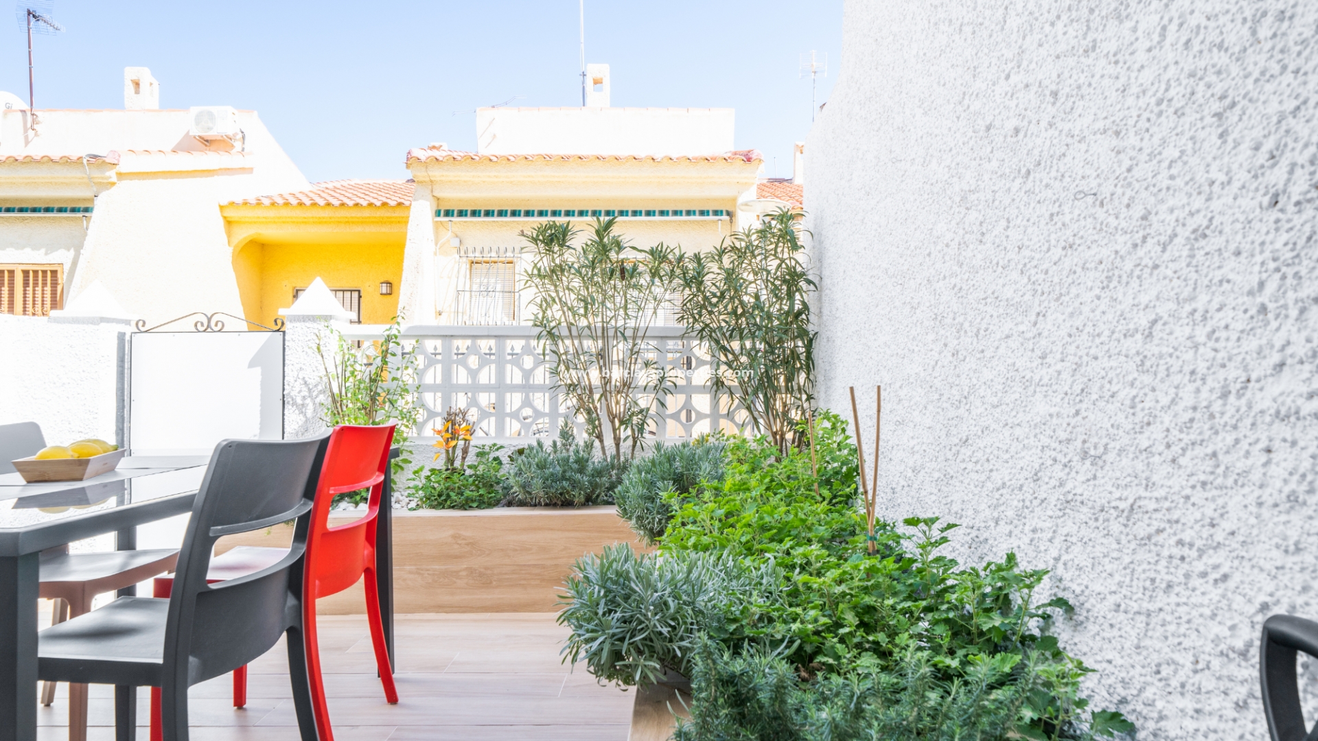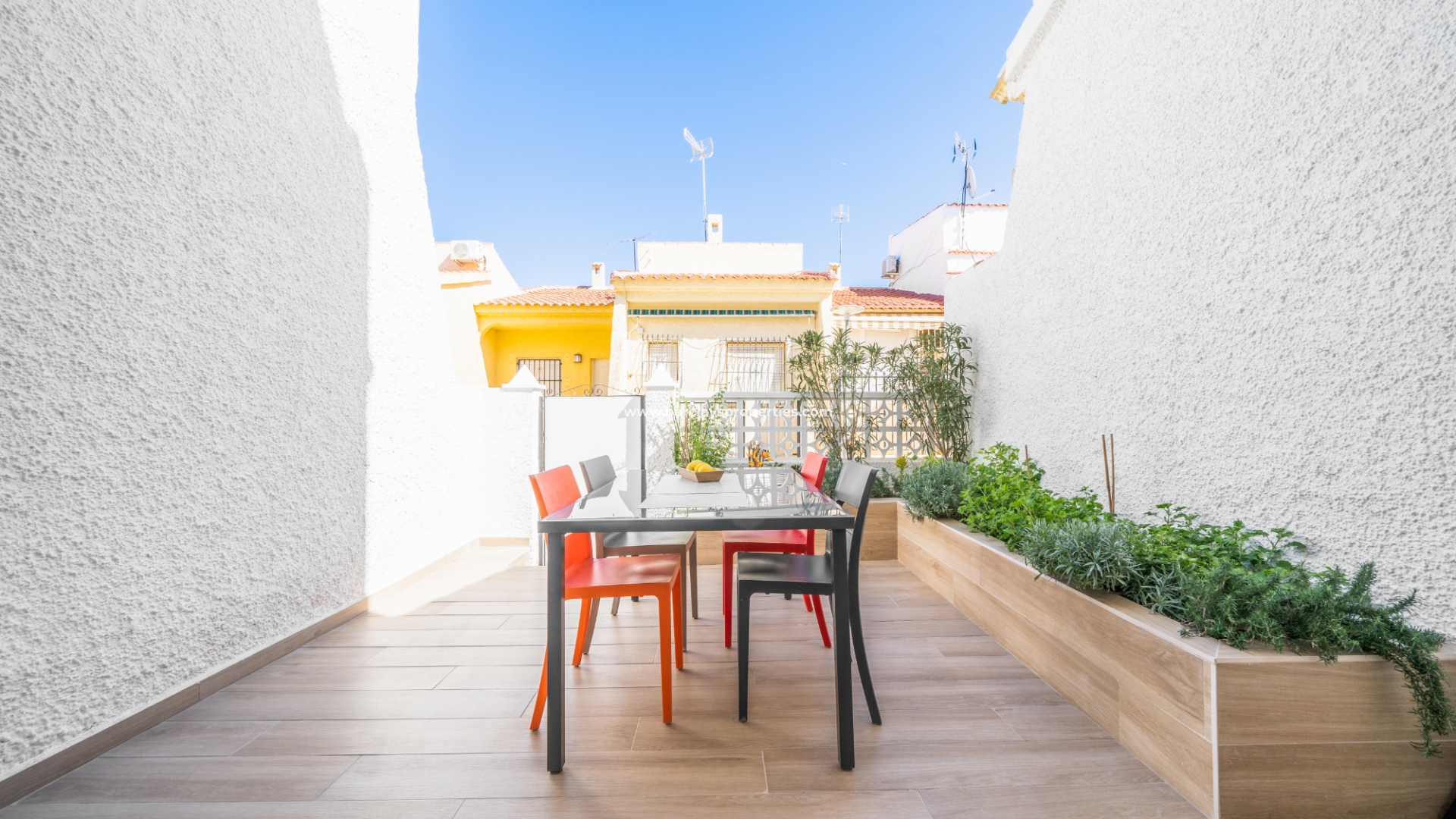 Willkommen in diesem charmanten, frisch renovierten Reihenhaus der "Evita"-Modellreihe, das sich in der ruhigen Umgebung von Urb. La Marina in der wunderschönen Provinz Alicante befindet. ➡️ Annehmlichkeiten sind nur einen 5-minütigen Spaziergang von der Unterkunft entfernt, darunter Geschäfte, Supermärkte mit einer großen Auswahl an internationalen Produkten sowie eine Vielzahl von Bars und Restaurants für jeden Geschmack. In der Nähe befindet sich die wunderschöne Landschaft der "Sierra Molar", ideal für Spaziergänge, Hundespaziergänge und Radtouren mit verschiedenen Routen, die das ganze Jahr über genossen werden können.
