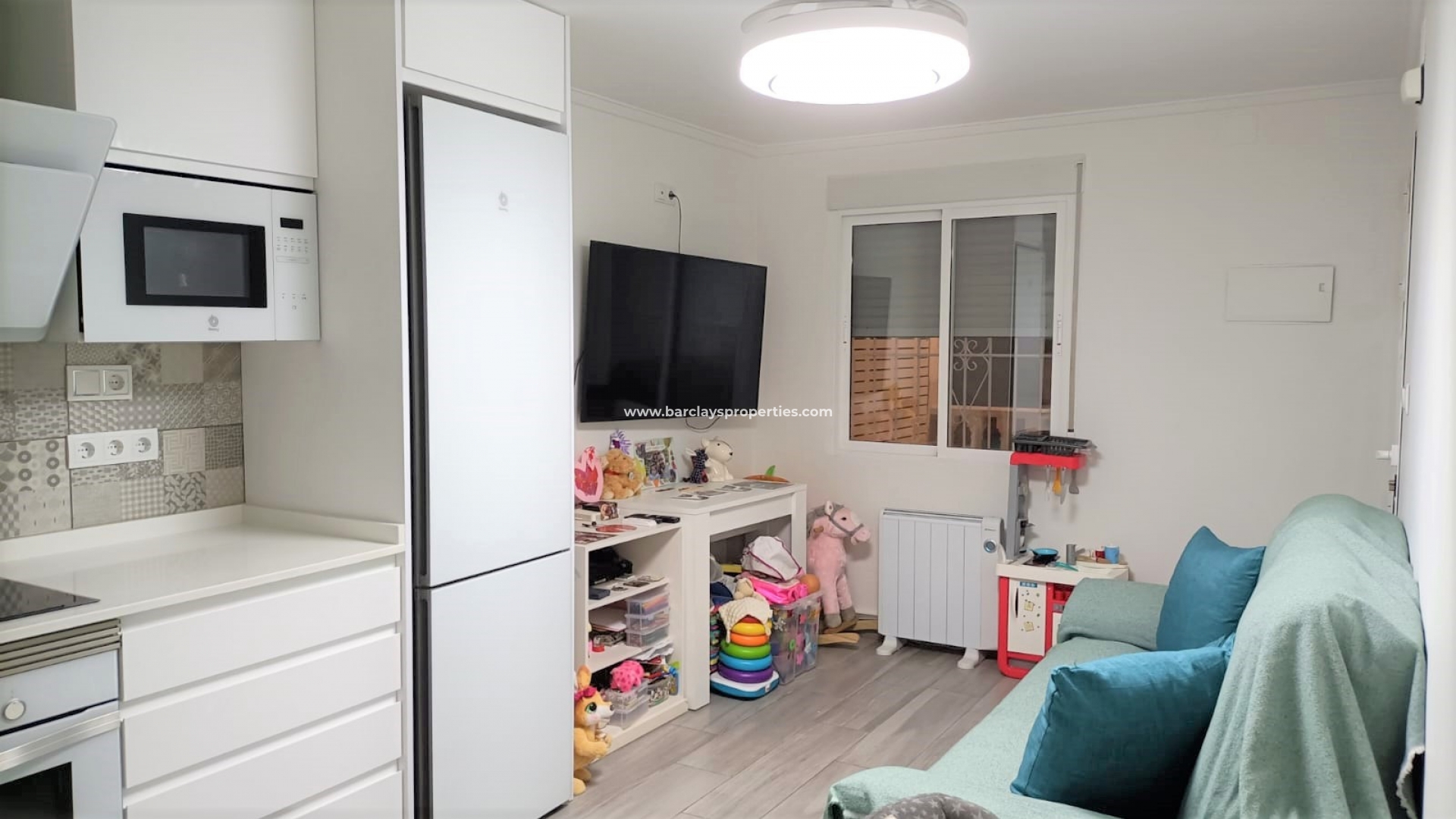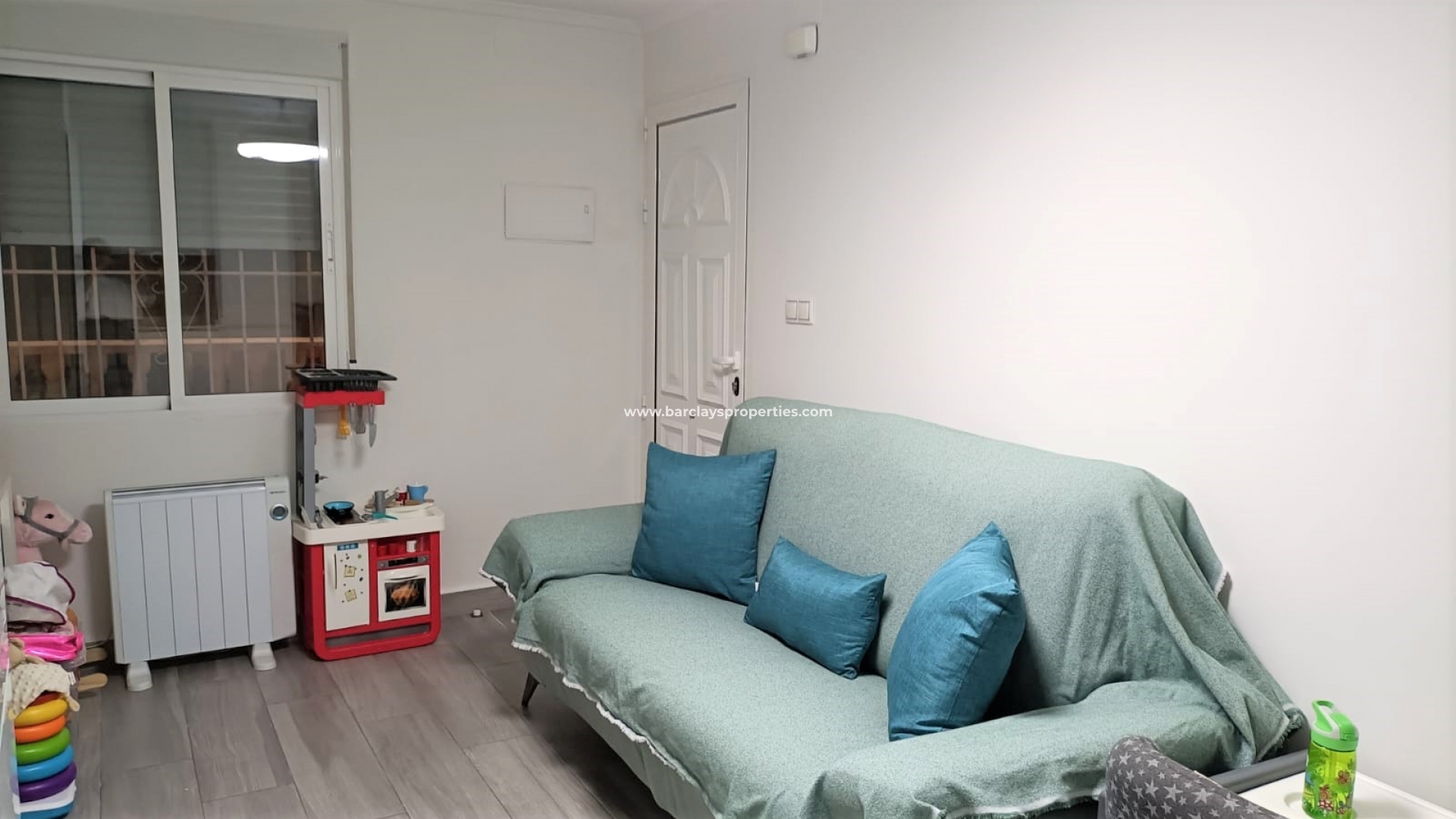 Wir stellen Ihnen "Fina" vor, ein charmantes Reihenhaus im Herzen von Urb. La Marina, das eine unvergleichliche Bequemlichkeit und Freizeitmöglichkeiten direkt vor der Haustür bietet. Perfekt gelegen, sind es nur 2 Gehminuten zu wichtigen Annehmlichkeiten, was das Leben ein wenig einfacher macht. Das nahegelegene öffentliche Freibad und der Sportkomplex bieten endlose Möglichkeiten für Freizeit und Unterhaltung, darunter Minigolf, Freiluft-Bowling, Trampoline für Kinder und ein Unterhaltungsort.