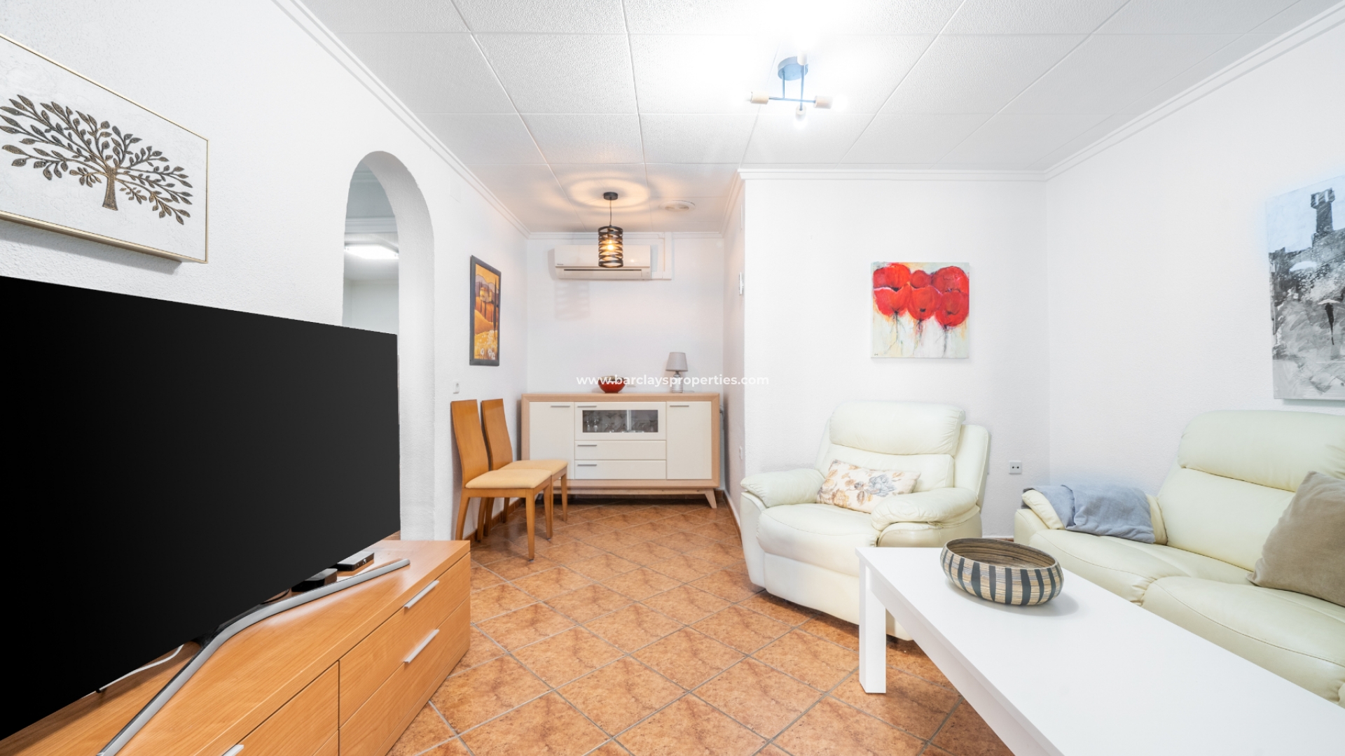 Bei der Ankunft bereitet eine einladende Vorderterrasse den Rahmen für Entspannung und Freiluftvergnügen, perfekt zum Genießen der mediterranen Sonne. Betreten Sie das Innere, um eine gut ausgestattete Küche/Esszimmer zu entdecken, ideal für kulinarische Unternehmungen und zwanglose Mahlzeiten gleichermaßen. Das Wohnzimmer, ➡️ erweitert für zusätzlichen Platz, strahlt Wärme und Komfort aus und verfügt über Klimaanlage für ganzjährigen Komfort.
