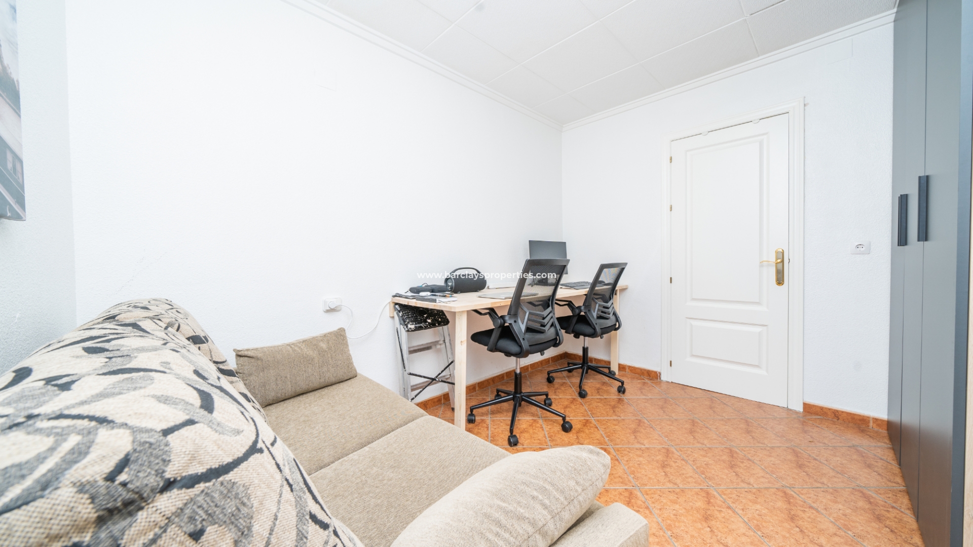 Flexibilität ist der Schlüssel mit einem vielseitigen mittleren Raum, der derzeit als Büro oder Gästebereich genutzt wird, komplett mit einem neuen Kleiderschrank und der Möglichkeit eines Schlafsofas. Dieser anpassungsfähige Bereich deckt verschiedene Lebensstilbedürfnisse ab, ob für Arbeit, Freizeit, ➡️ oder die Unterbringung von Gästen. Eine Doppeltür vom hinteren Schlafzimmer führt zu einer kleinen Sonnenterrasse, die einen privaten Rückzugsort für ruhige Momente oder das Genießen eines Morgenkaffees bietet.