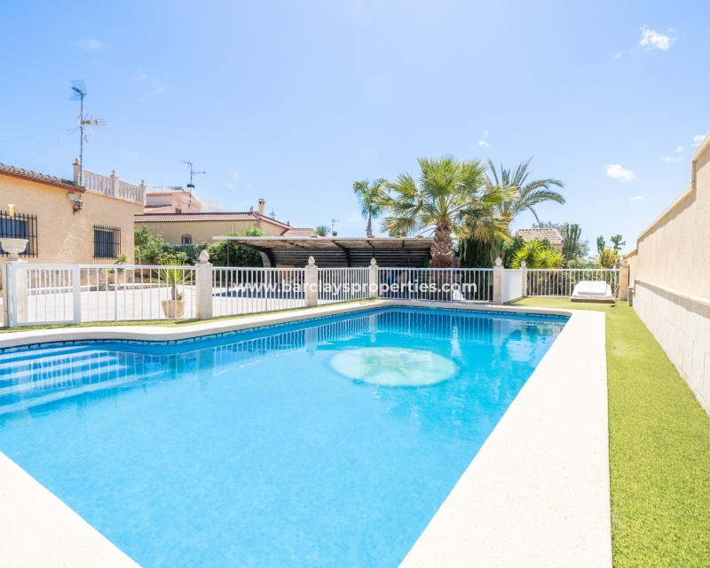 Willkommen in Ihrer mediterranen Oase! Diese atemberaubende Villa verfügt über einen privaten 8x4 Pool✅, in dem Sie die spanische Sonne genießen und sich nach Belieben erfrischen können. Mit 5 Schlafzimmern und 2 Bädern, darunter ein eigenes Bad, bietet das Haus ausreichend Platz für Familie und Gäste, um sich zu entspannen und zu erholen. Das Herzstück des Hauses ist die geräumige Küche, perfekt für kulinarische Abenteuer, während ein praktischer Hauswirtschaftsraum die Praktikabilität gewährleistet. Im Wohnzimmer sorgt ein gemütlicher Holzofen für eine behagliche Atmosphäre, ergänzt durch Klimaanlage für ganzjährigen Komfort. Treten Sie nach draußen und entdecken Sie Ihr eigenes Stück Paradies: Eine Sommerküche mit Grill und Holzofen lädt zu Mahlzeiten im Freien✅ und Unterhaltung unter den Sternen ein. Darüber hinaus sorgt ein Carport für 3 Autos für ausreichend Parkplätze und Bequemlichkeit. Verpassen Sie nicht die Gelegenheit, diese Villa zu Ihrem Refugium zu machen. Vereinbaren Sie noch heute einen Besichtigungstermin und leben Sie den mediterranen Lebensstil!