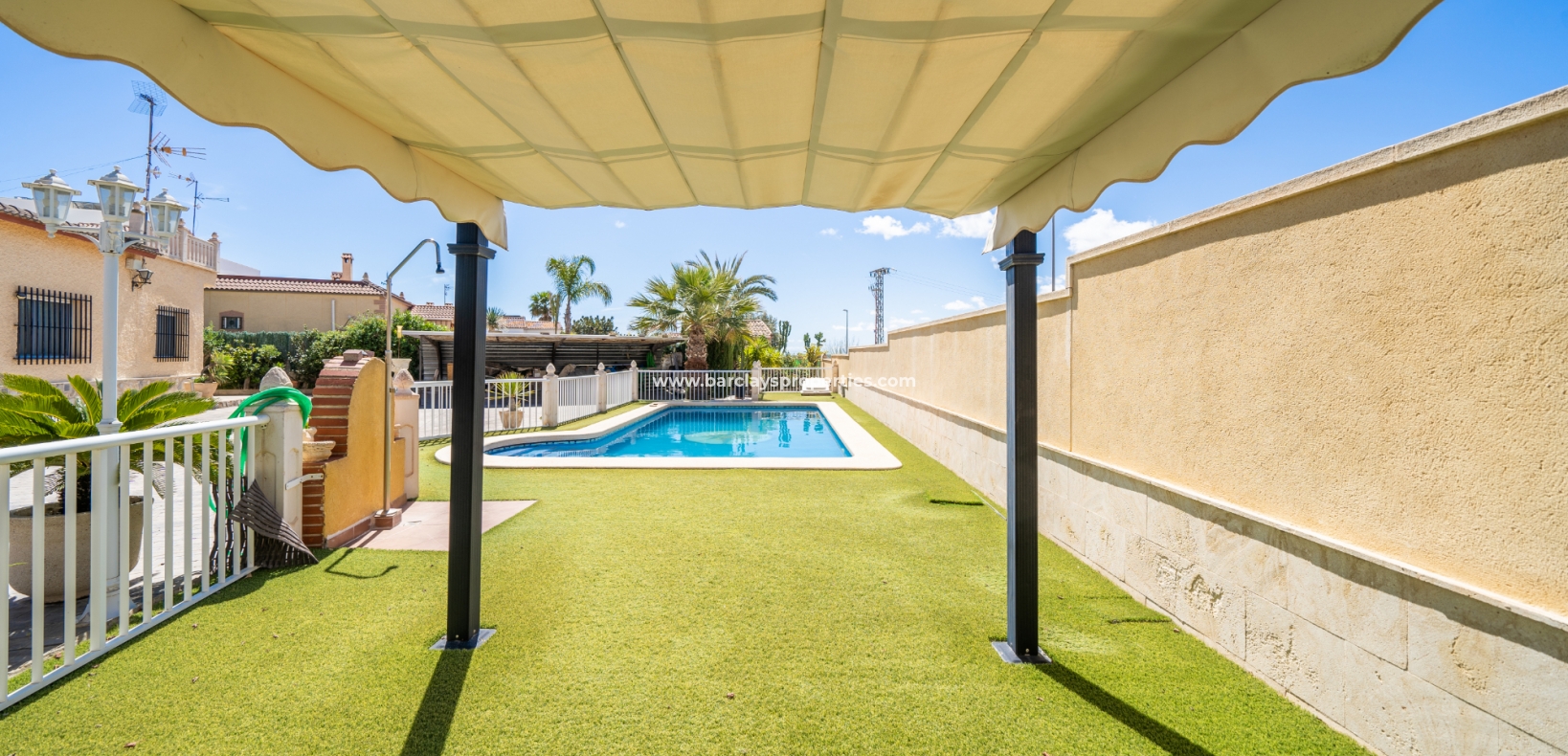 Willkommen im Epizentrum des mediterranen Lebensstils in Urb. La Marina, La Escuera! Diese freistehende Villa bietet eine seltene Gelegenheit, sich in der Ruhe am Meer zu verwöhnen, während man dennoch bequem zu städtischen Annehmlichkeiten gelangt. Mit einem großzügigen Grundstück von 888 Quadratmetern bietet diese Residenz ausreichend Platz für Indoor- und Outdoor-Aktivitäten. Nur 3 Kilometer von den makellosen goldenen Sandstränden von La Marina entfernt gelegen☀, können die Bewohner die Anziehungskraft des Küstenlebens direkt vor ihrer Haustür genießen. Die strategische Lage der Immobilie, nur 1 Kilometer von einem lebhaften Gewerbegebiet entfernt, garantiert einen mühelosen Zugang zu einer Vielzahl von Annehmlichkeiten. Für Golf-Enthusiasten liegt der renommierte Golfplatz La Marquesa nur 10 Kilometer entfernt, während die Nähe zum Flughafen Alicante-Elche, der sich 25 Kilometer von der Villa entfernt befindet, den Reiz dieses außergewöhnlichen Angebots erhöht.