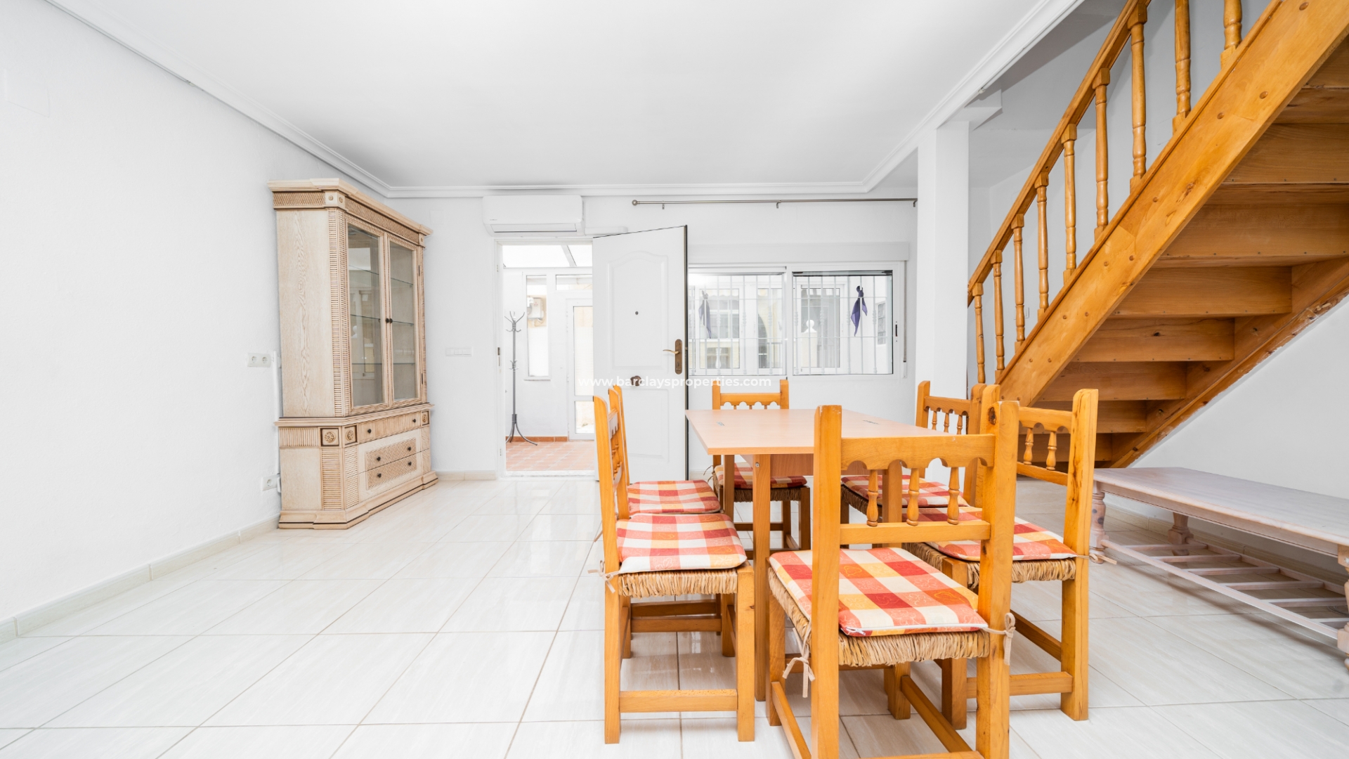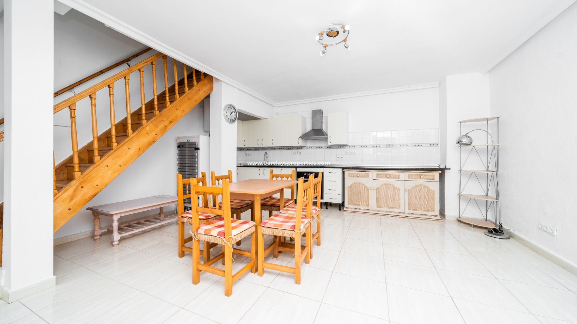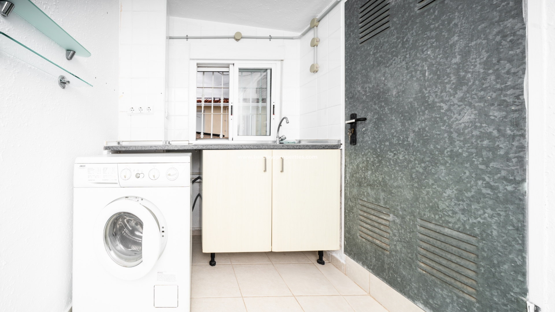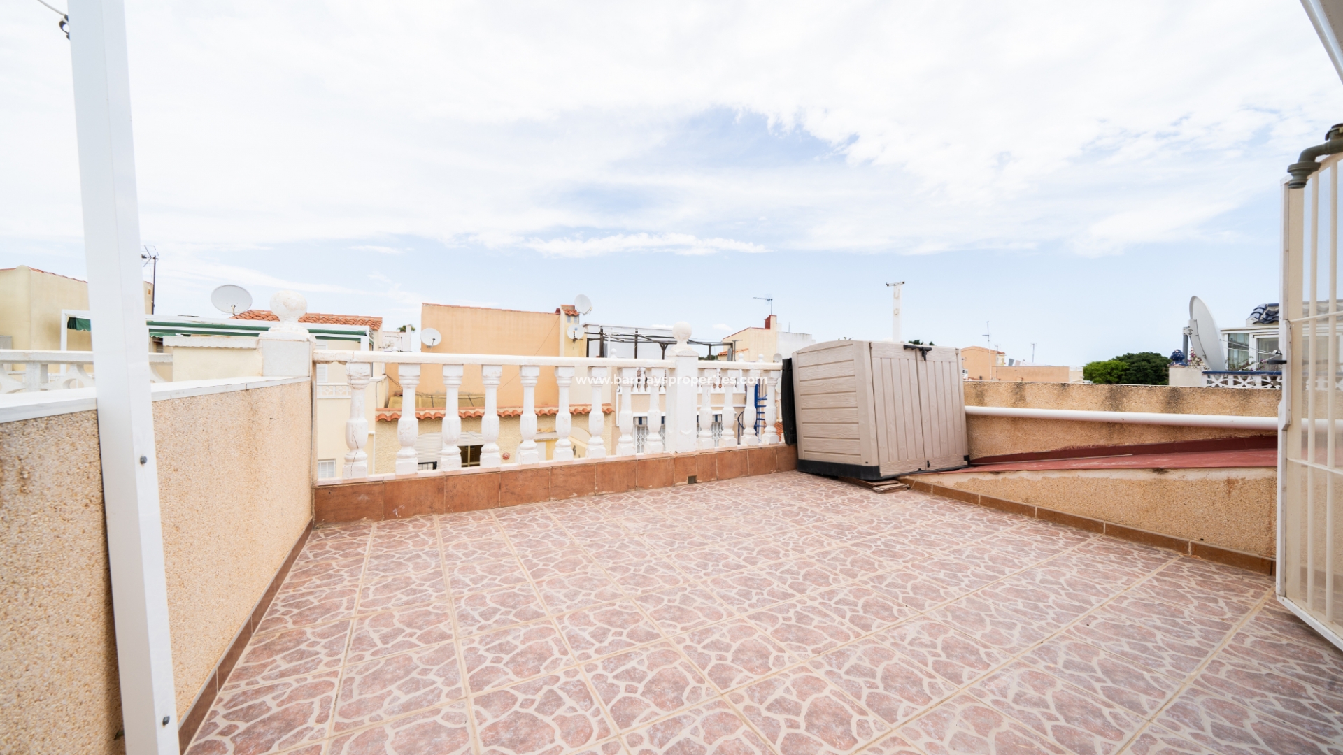 Wir betreten dieses Reihenmittelhaus durch die geräumige und helle verglaste Veranda, die Zugang zu einem großen und offenen Wohn-/Esszimmer mit einer voll ausgestatteten Küche im amerikanischen Stil bietet. Eine Treppe führt uns in das erweiterte Obergeschoss, wo wir ein voll ausgestattetes Badezimmer mit einer Wand-zu-Wand-Dusche und ein extra großes Schlafzimmer mit zwei großen Fenstern und Klimaanlage finden. Von hier aus gelangt man über eine Innentreppe auf die Dachterrasse, wo sich ein Hauswirtschaftsraum mit Waschmaschine und Spülbecken befindet, bevor man nach draußen geht und den ✅Blick auf die Berge und das Meer genießen kann. Es ist der perfekte Ort, um sich in Ruhe zu entspannen, entweder beim Sonnenbaden oder beim Essen im Freien.