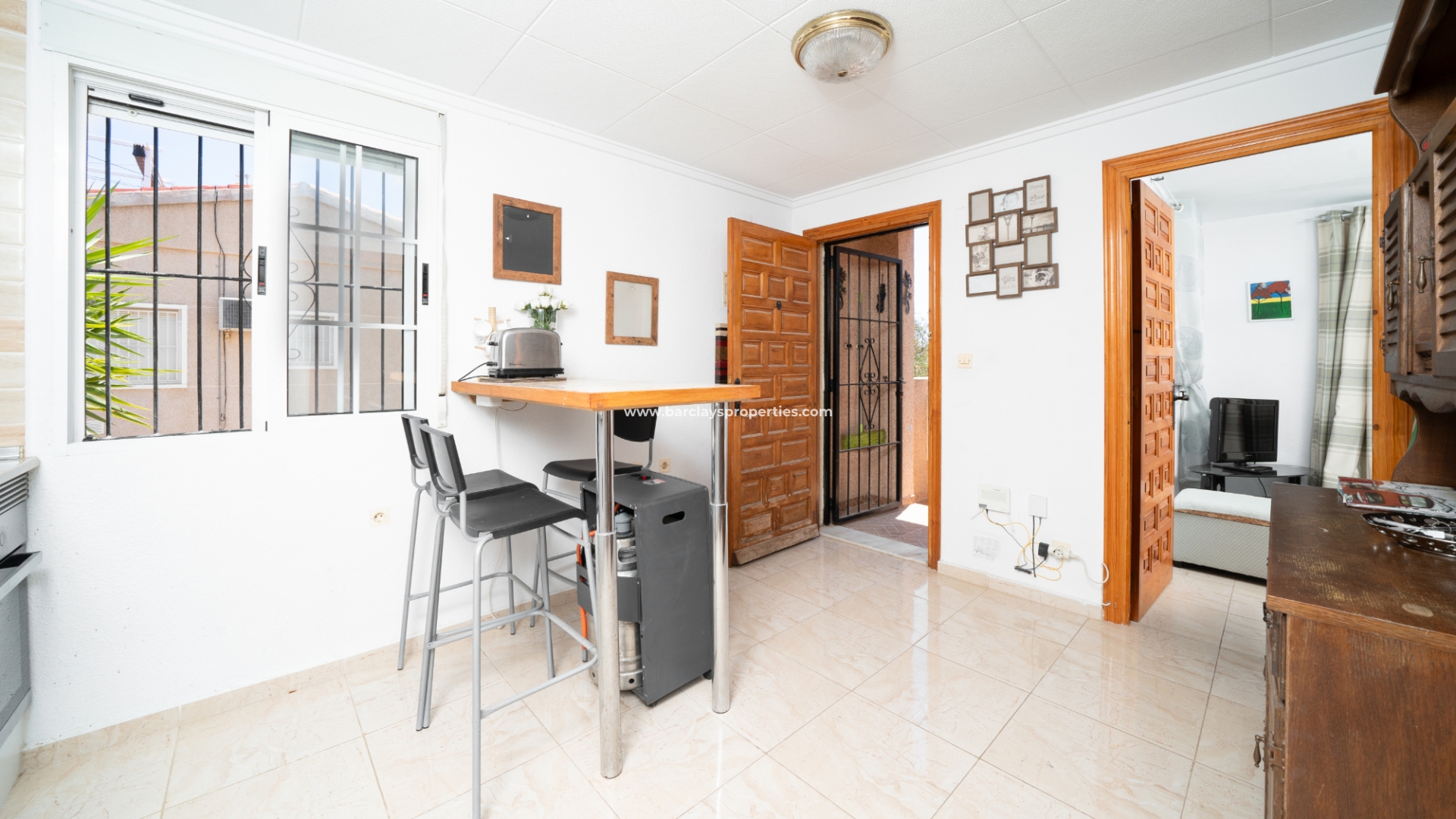 Lassen Sie uns Ihnen diese charmante Endreihenhausimmobilie in der Urbanisation La Marina vorstellen, ein Modell "Josefina", das eine ➡️ großartige Investitionsmöglichkeit darstellt. Zentral gelegen in einer ruhigen Gegend, aber dennoch in der Nähe von Annehmlichkeiten, bietet diese ➡️ Schnäppchenimmobilie einen Grillplatz, der sich perfekt für Unterhaltung eignet, und besticht durch eine hochwertige Außenverarbeitung. Es gibt zusätzlichen Stauraum, der bequem unter der Terrasse gelegen ist.