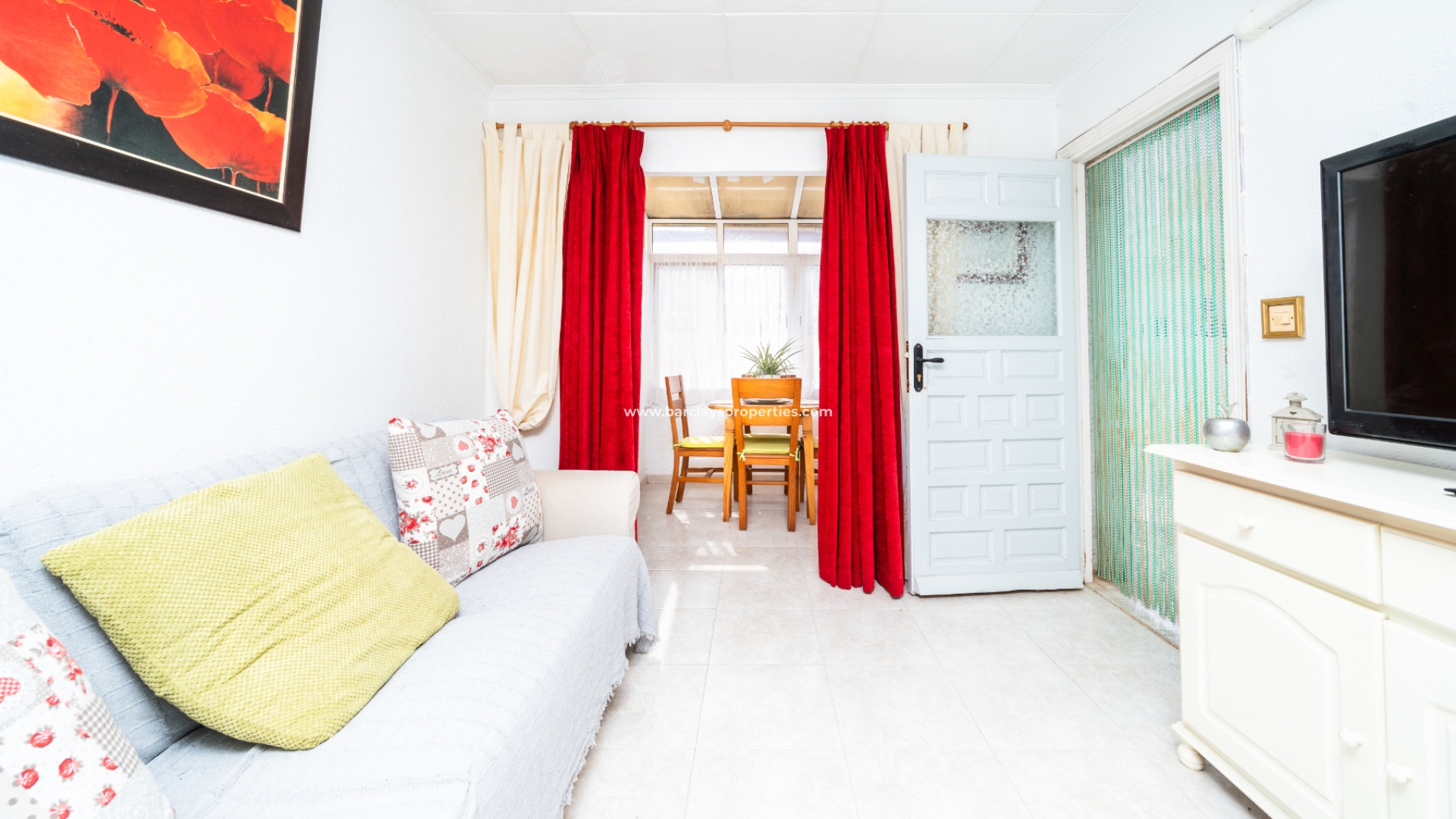 Diese Reihenhaus-Immobilie, ein Modell „Fina“, steht zum Verkauf in Urb. La Marina und befindet sich in einer ruhigen Gegend, nur wenige Autominuten von zwei lebhaften Einkaufsgebieten entfernt, die eine große Auswahl an Bars und Restaurants bieten. Das nach Osten ausgerichtete Haus verfügt über eine kleine Erweiterung an der Vorderseite.