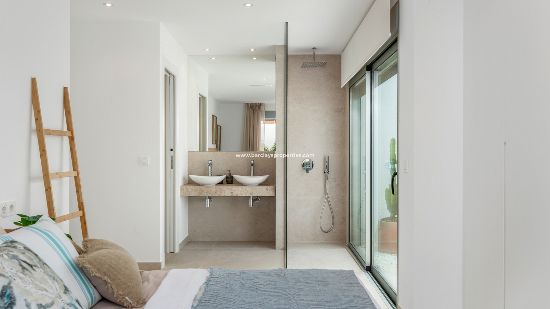 Willkommen in Ihrem neuen Zuhause in der charmanten Stadt Dolores, Alicante! Diese atemberaubende Neubauvilla verkörpert Luxus und modernes Wohnen. Mit einer Fläche von 102m² verfügt die Villa über drei geräumige Schlafzimmer und zwei moderne Badezimmer, die Ihrer Familie ausreichend Platz und Komfort bieten.