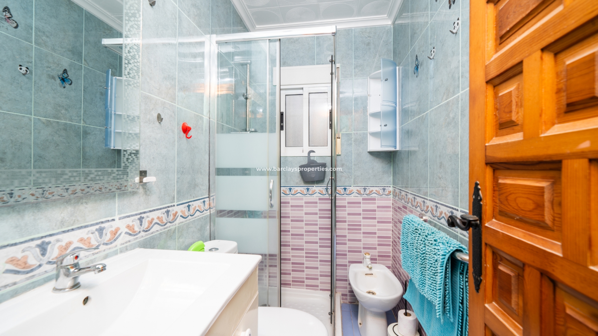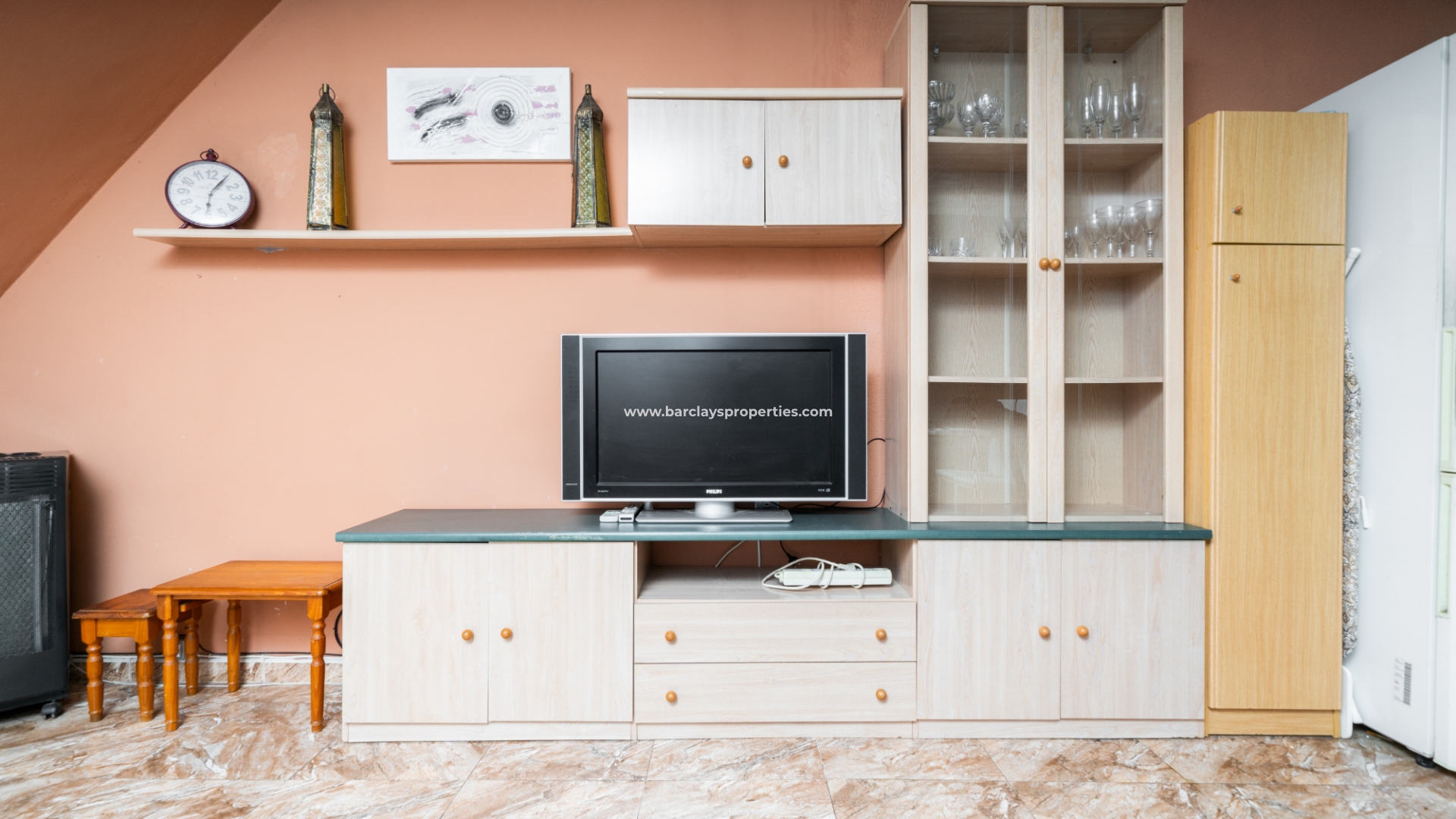 Wir betreten das vordere Tor und finden eine Sonnenterrasse mit Markise, die zum Inneren der Immobilie führt. Das Wohnzimmer wurde erweitert, um einen geräumigen Wohnbereich und eine modern renovierte Küche mit Essbereich zu bieten, die mit Klimaanlage für ganzjährigen Komfort ausgestattet ist. Das offene Design ist perfekt für modernes Wohnen. Das moderne Badezimmer umfasst eine stilvolle Eckdusche, ein Bidet, eine Toilette und eine zeitgemäße Waschtisch-Einheit. Das erste Schlafzimmer, ein Doppelzimmer, befindet sich neben dem Badezimmer und hat Terrassentüren, die zu einer Sonnenterrasse führen, ideal zum Entspannen.