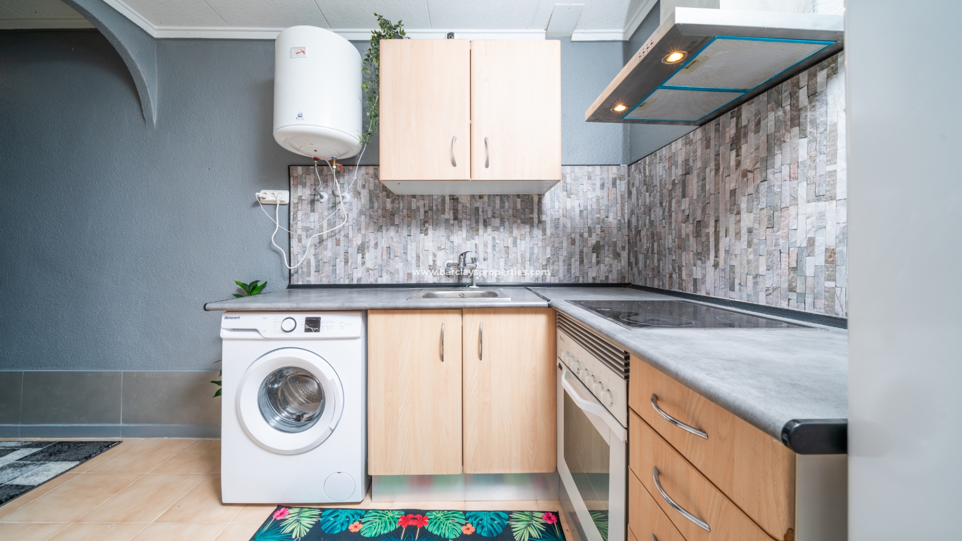 Die Sonnenterrasse begrüßt Sie mit Kunstrasen, der bei der Ankunft einen Farbtupfer verleiht. Wir betreten die Immobilie durch Schiebetüren. Das Anwesen profitiert von ➡️ erweiterten Wohnbereichen, darunter ein größeres Wohnzimmer und größere Schlafzimmer, die eine geräumigere Umgebung schaffen. Die Küche wurde ➡️ mit modernen Geräten aktualisiert, darunter ein neuer Kühlschrank, eine Waschmaschine, ein Herd und eine Dunstabzugshaube, die einen funktionalen Raum für den täglichen Gebrauch bieten. Das erste Schlafzimmer ist ein Einzelzimmer, und das zweite ist ein großzügig dimensioniertes Doppelzimmer, das vielseitige Schlafmöglichkeiten bietet. Das Badezimmer umfasst eine Badewanne, ein WC und eine Waschtisch-Einheit und bietet Funktionalität und Stauraum.