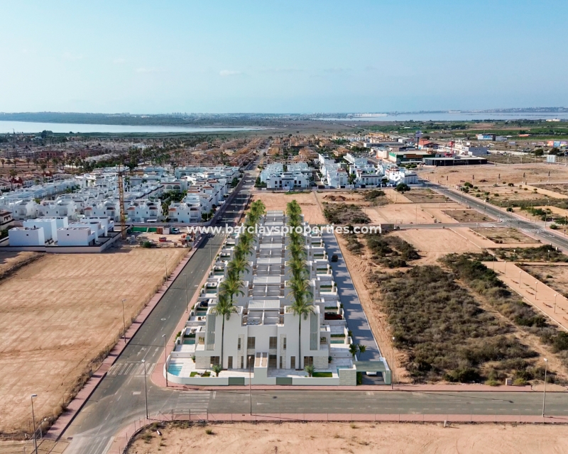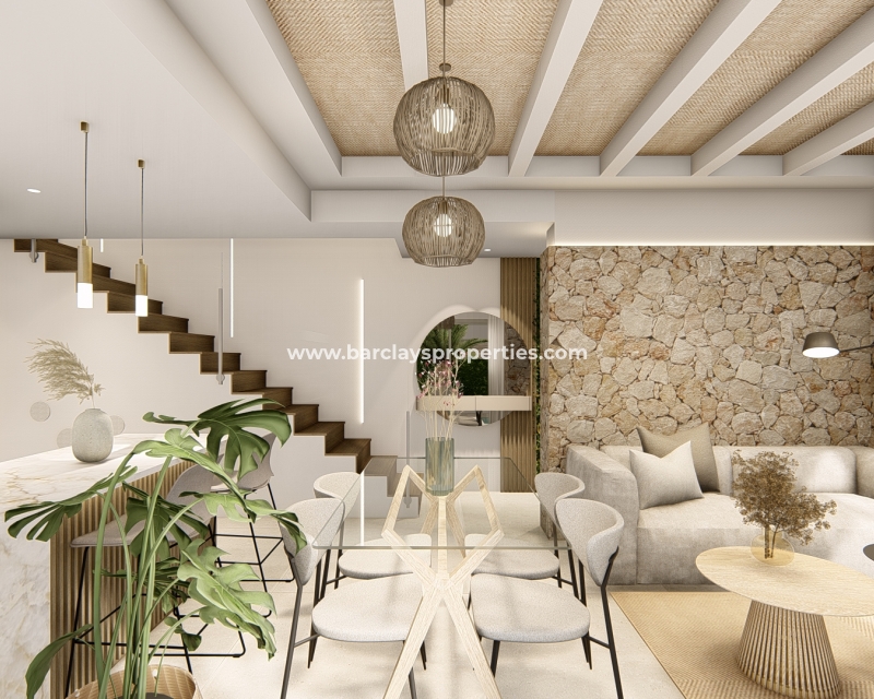 Diese zweistöckigen Neubauvillen in Ciudad Quesada bieten eine perfekte Kombination aus Stil und Komfort. Mit 93 m² Wohnfläche verfügen sie über 3 Schlafzimmer, 2 Badezimmer und eine offene Küche. Der private Garten umfasst einen Pool, eine Außendusche und einen Parkplatz. Nur 500 Meter von Annehmlichkeiten und 8 km vom Strand entfernt, bieten diese Häuser hochwertige Merkmale: verstärkte Sicherheitstüren, elektrische Rollläden, doppelt verglaste Fenster, Klimaanlage und eine 10-jährige Garantie. Das aerothermische Wassersystem sorgt für Energieeffizienz, während die ruhige und dennoch gut erreichbare Lage eine hervorragende Investition in Mietobjekte darstellt.