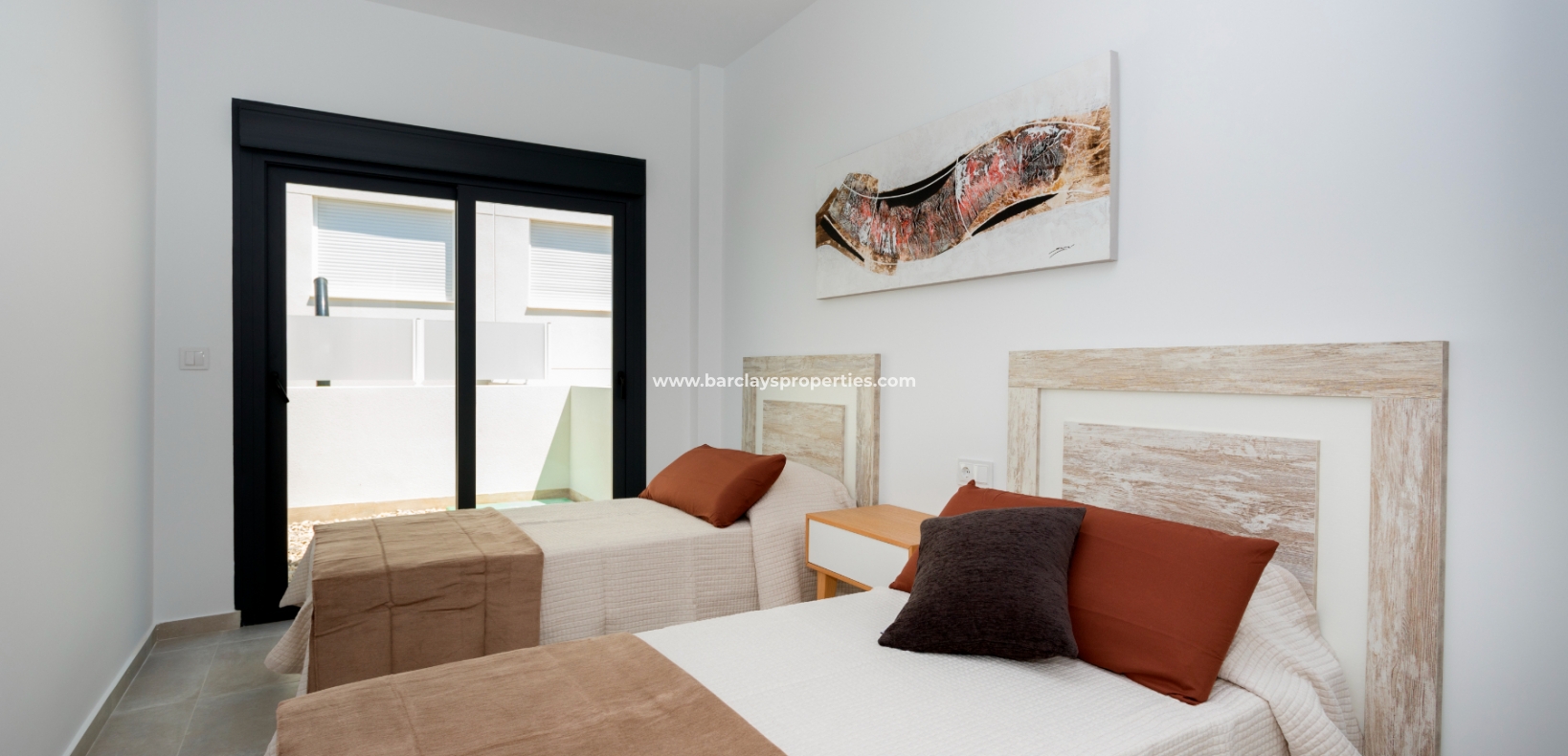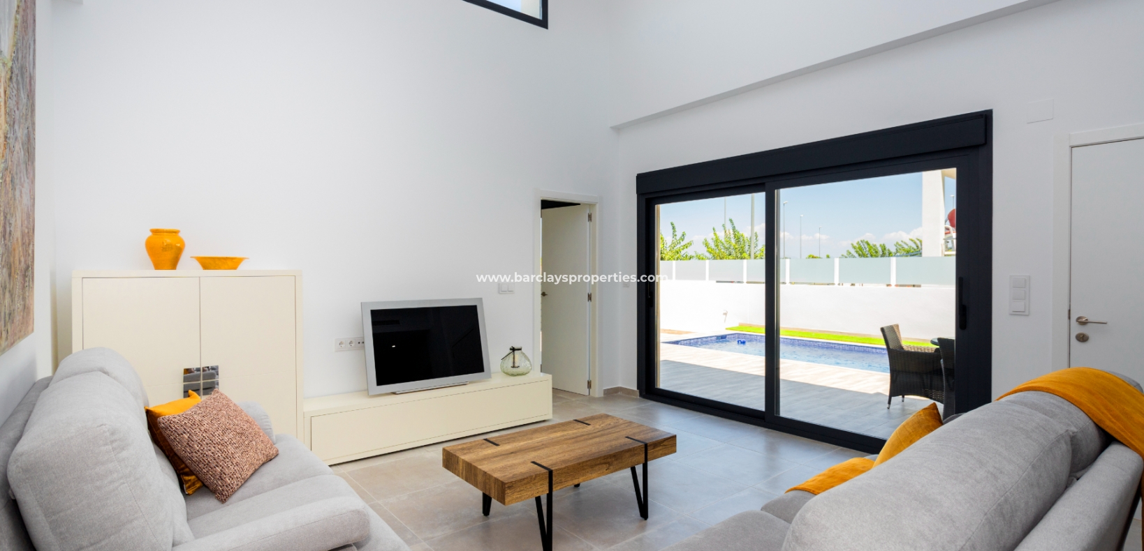 Diese beeindruckende Neubau-Villa in Daya Nueva verfügt über 3 Schlafzimmer und 2 Badezimmer ➡️ – alles auf einer Ebene. Mit 104 m² moderner Bauweise auf einem 242 m² großen Grundstück bietet diese Immobilie eine offene Küche, einen großzügigen Wohnbereich und einen privaten Parkplatz für ein Fahrzeug. Genießen Sie draußen Ihren ➡️ privaten Pool – ideal zur Entspannung in einer ruhigen Gegend, während Sie nur 200 Meter von den Annehmlichkeiten entfernt sind. Doppelverglaste Fenster, vorinstallierte Klimaanlage und eine 10-Jahres-Garantie sorgen für Komfort und Sicherheit. Die Lage – 13 km vom Strand, 46 km vom Flughafen und 8 km von Golfplätzen entfernt – ➡️ macht diese Villa zu einer großartigen Mietmöglichkeit in bester Lage.