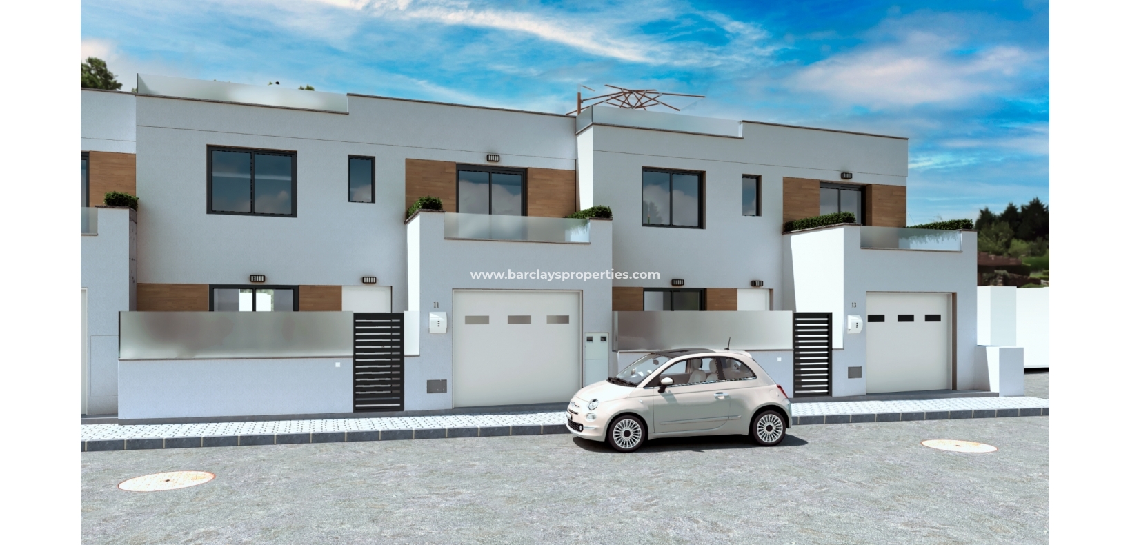 Diese wunderschönen 3-Schlafzimmer, 3-Badezimmer Doppelhaushälften wurden mit modernen Wohnbedürfnissen im Sinn entworfen und bieten 119 m² Wohnfläche auf 181 m² Grundstücken mit zusätzlich 57 m² Garten. Jede Immobilie verfügt über ➡️ einen privaten Pool, eine private Garage und ein Dachsolarium mit Sommerküche. Innen genießen Sie offene Küchen, doppelt verglaste Fenster und vorinstallierte Klimaanlage sowie weiße Waren, ein aerothermisches Wasserheizungssystem und eine Vorinstallation für einen Auto-Ladepunkt. Die Häuser befinden sich in einer ruhigen Gegend, nur 400 Meter von Annehmlichkeiten entfernt, 4 km vom Strand, 5 km vom Golfplatz und 47 km vom Flughafen. Diese Häuser bieten eine perfekte Kombination aus friedlichem Wohnen und bequemem Zugang zu lokalen Sehenswürdigkeiten. ➡️ Mit großem Vermietungspotenzial sind sie eine ausgezeichnete Investitionsmöglichkeit.