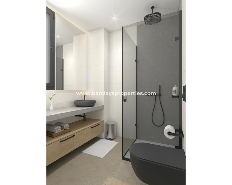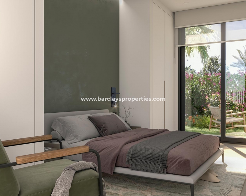 Erhältlich sind auch Bungalows im ersten Stock mit 111 m² Wohnfläche, 71 m² Grundstück und einem 37 m² großen Solarium ab €360.000. Diese bieten ebenfalls den gleichen hohen Standard an Bauweise und Annehmlichkeiten, wodurch ein luxuriöses und komfortables Wohnen gewährleistet wird.