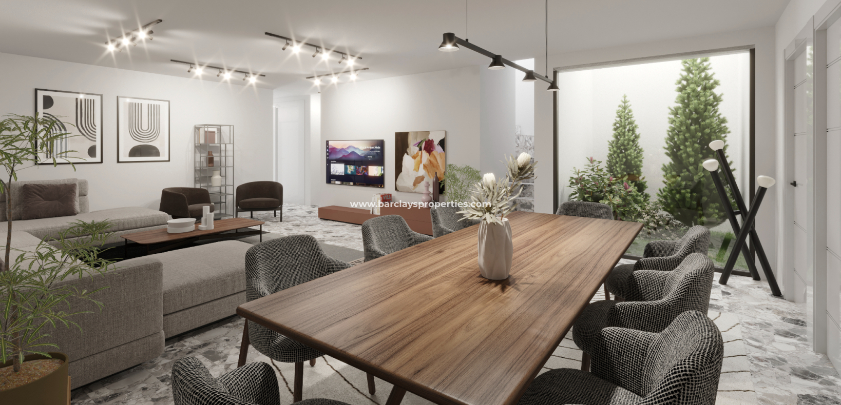 - Garten: Fertiggestalteter mediterraner Garten mit Palmen, Pflanzen, Kunstrasen, Beleuchtung und automatischer Bewässerung