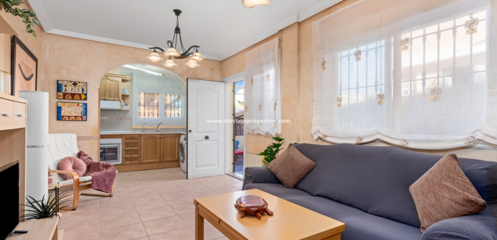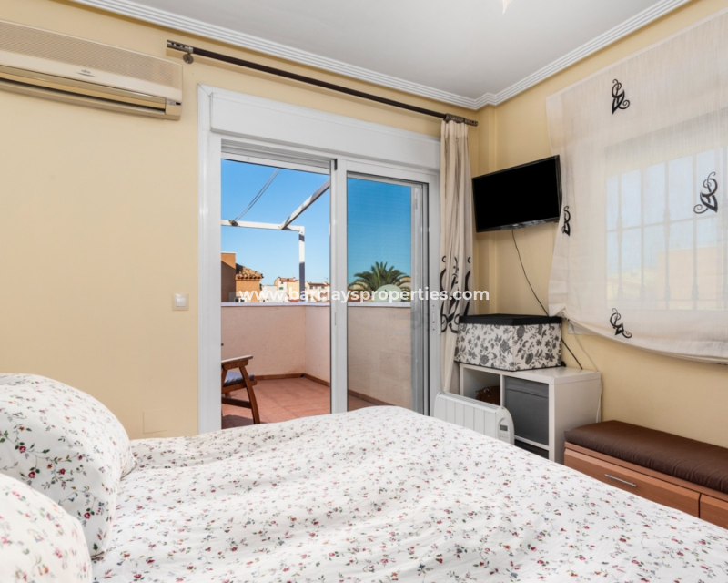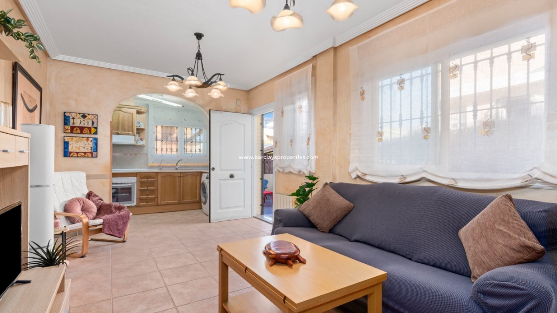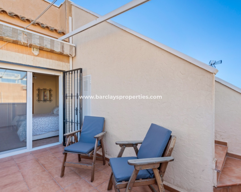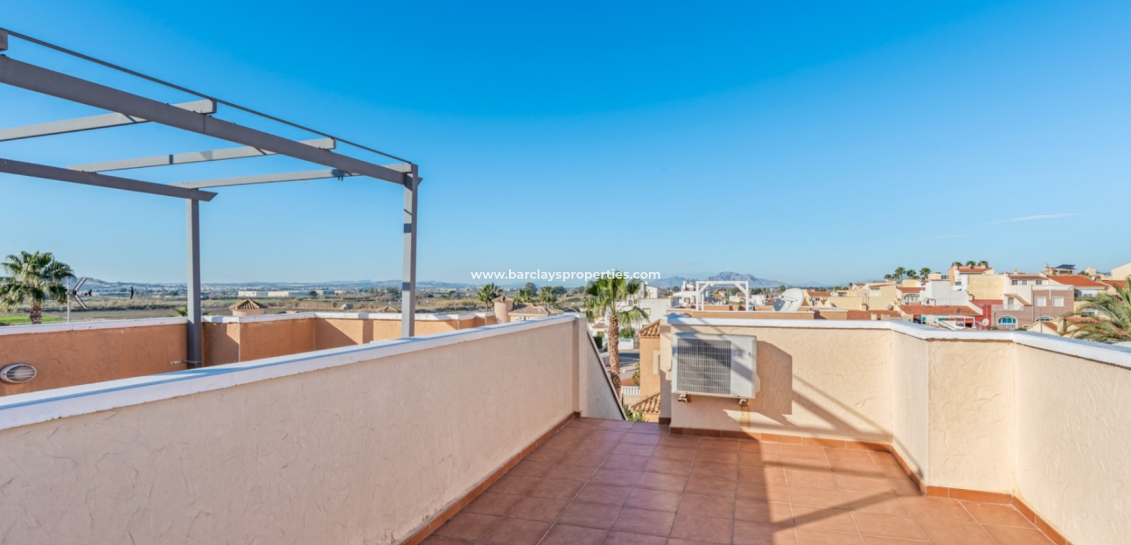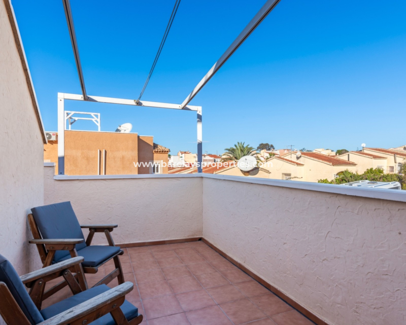 Diese charmante Doppelhaushälfte in der Urbanisation La Marina bietet 75 m² Wohnfläche auf einem Grundstück von 160 m², verteilt auf zwei Etagen und mit einem ✅privaten Solarium, das einen atemberaubenden Panoramablick bietet.