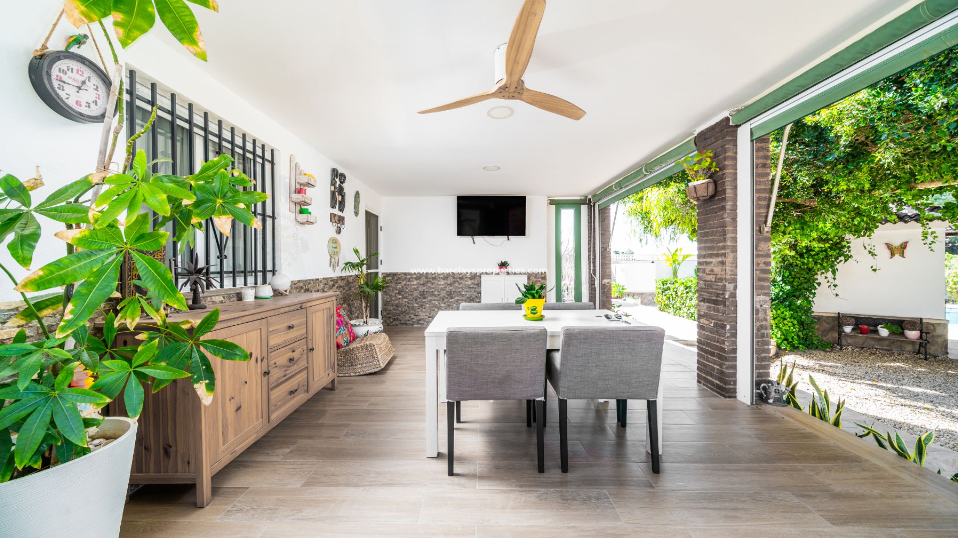 Wir werden von einer großzügigen Terrasse mit Sonnenmarkisen und einem Deckenventilator empfangen, die den Wohnraum erweitert und den perfekten Ort bietet, um die Umgebung zu genießen. Im Inneren sind die offene Küche und das Wohnzimmer mit Klimaanlage, einem Deckenventilator und einem Kamin ausgestattet, um das ganze Jahr über Komfort zu gewährleisten. ➡️ Der Hauswirtschaftsraum bietet viel Stauraum und Arbeitsfläche und dient gleichzeitig als großer Ankleideraum.