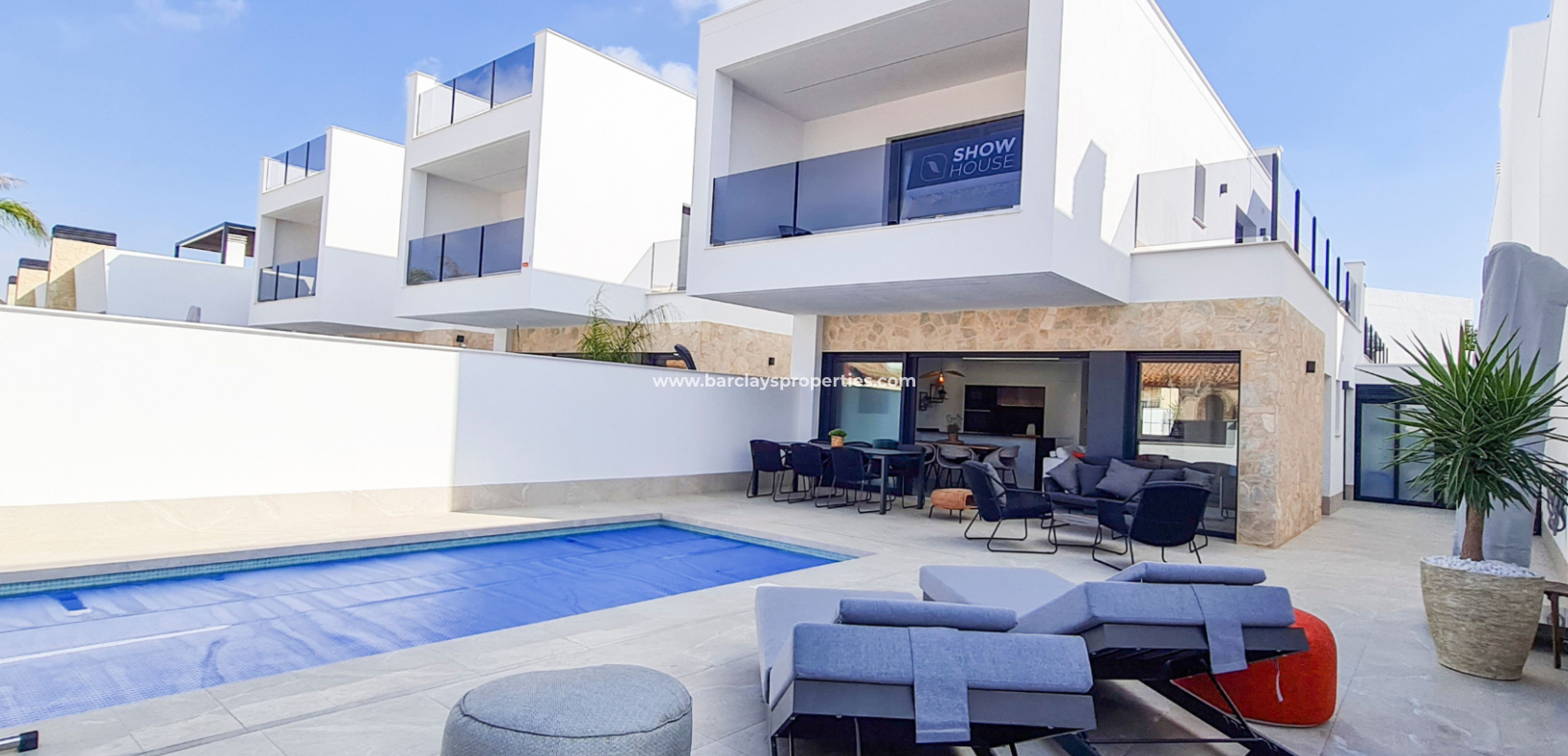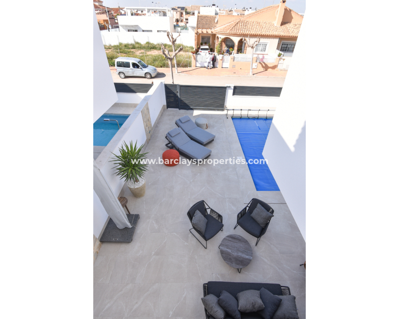 Diese atemberaubenden neuen Villen in San Pedro del Pinatar bieten die perfekte Balance zwischen modernem Design und Funktionalität. ➡️ Mit 3 Schlafzimmern, 3 Badezimmern und einer großzügigen Wohnfläche von 112,50 m² auf einem 162 m² großen Grundstück verfügen diese zweistöckigen Häuser über eine offene Küche, einen privaten Pool und einen Parkplatz. Genießen Sie das ganze Jahr über Komfort mit vorinstallierter Klimaanlage, elektrischen Rollläden, doppelt verglasten Fenstern und einem aerothermischen Warmwassersystem. Zusätzliche Merkmale sind eine Video-Gegensprechanlage, eine Außendusche und die Option für ein Solarium. ➡️ Nur 4 km vom Strand, 1 km von allen Annehmlichkeiten und 15 km von Golfplätzen entfernt, bieten diese Villen eine ruhige Umgebung und großes Mietpotenzial. Solarpaneele, Elektrogeräte und eine 10-jährige Garantie vervollständigen dieses außergewöhnliche Angebot.