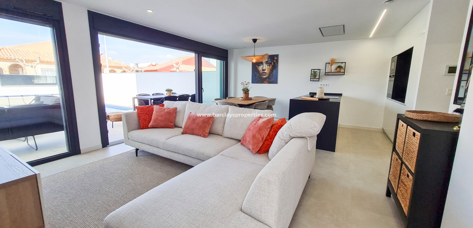 San Pedro del Pinatar ist eine begehrte Küstenstadt an der Costa Cálida, bekannt für ihre wunderschönen Sandstrände, kristallklares Wasser und den lebhaften Yachthafen. Die Stadt ist berühmt für die therapeutischen Schlammbäder des Mar Menor, eine einzigartige natürliche Attraktion. Mit lebhaften Promenaden, erstklassigen Fischrestaurants und einer Vielzahl von Wassersportmöglichkeiten ist es ein Paradies für Sonnenanbeter und Outdoor-Enthusiasten. Naturliebhaber werden den nahegelegenen Naturpark Salinas y Arenales de San Pedro del Pinatar zu schätzen wissen, der wunderschöne Wander- und Radwege bietet. Die Stadt verfügt über ausgezeichnete Einkaufszentren, leicht erreichbare Golfplätze und eine schnelle Anbindung an die Flughäfen Murcia und Alicante – ein idealer Ort sowohl für Urlauber als auch für ganzjährige Bewohner.