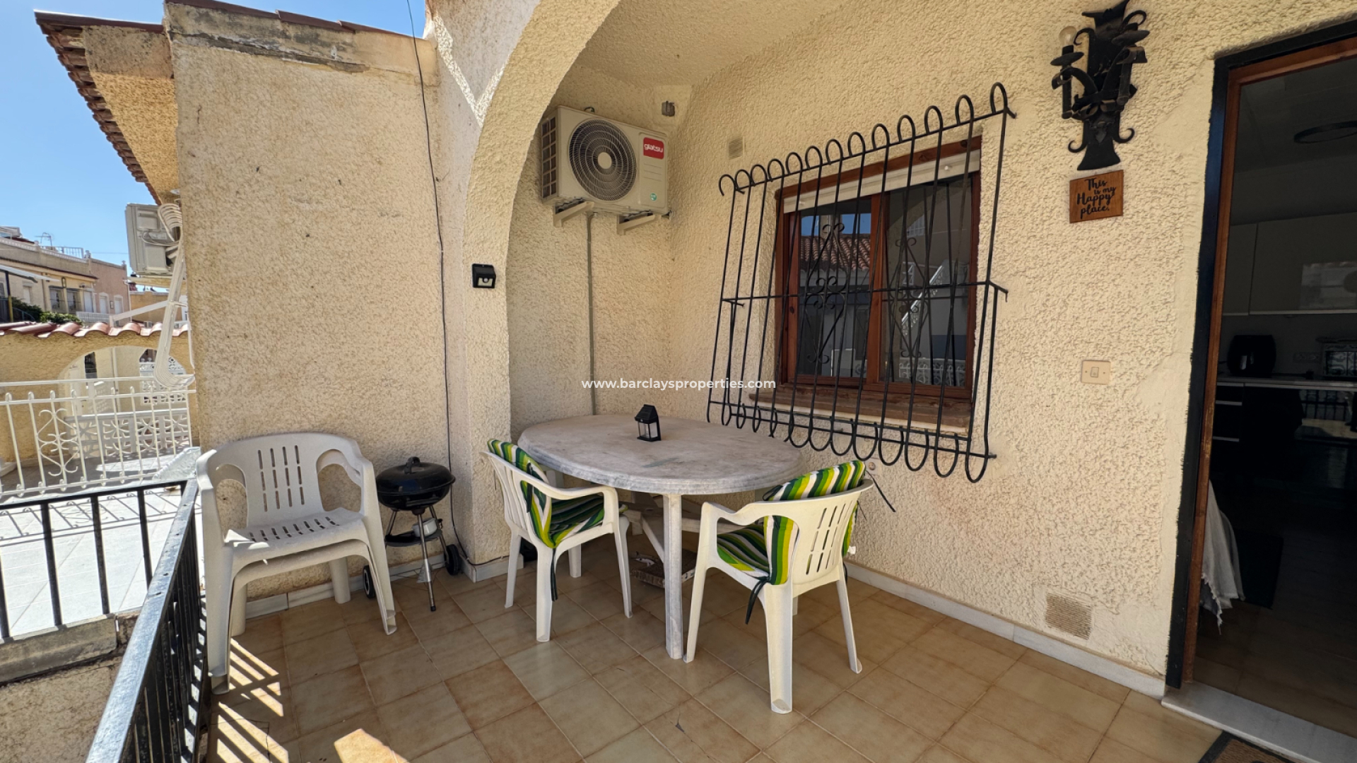 Dieses südlich ausgerichtete Bungalow in La Marina profitiert von Sonnenschein den ganzen Tag über. Es verfügt über eine erhöhte Terrasse an der Vorderseite mit Zugang zum Haus. Im Inneren erwartet Sie ein geräumiges Wohnzimmer mit einer modern renovierten Küche, zwei Schlafzimmern, einem vollständig renovierten Badezimmer und einem Abstellraum.