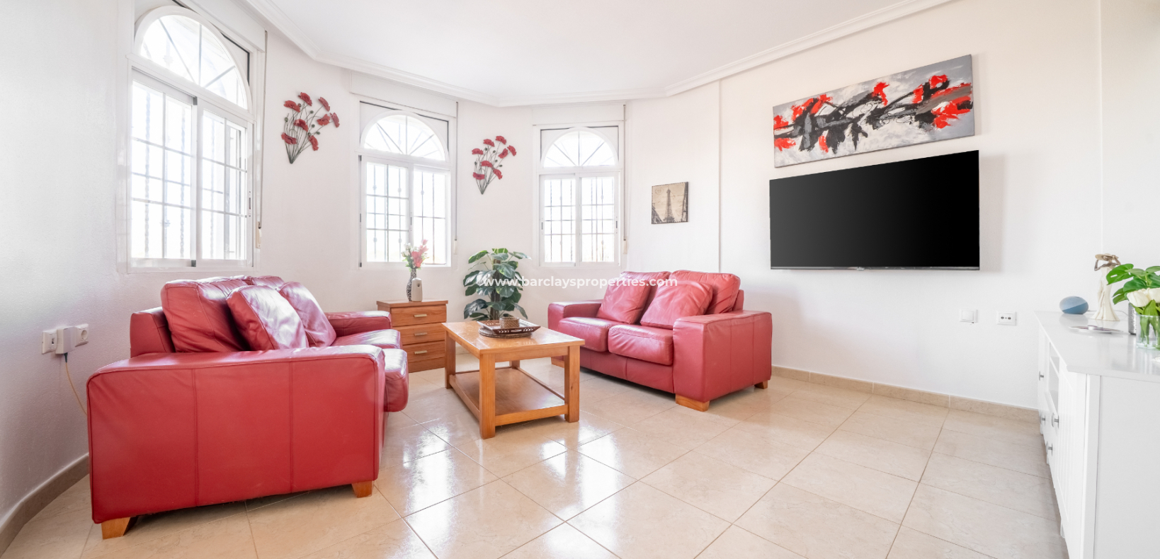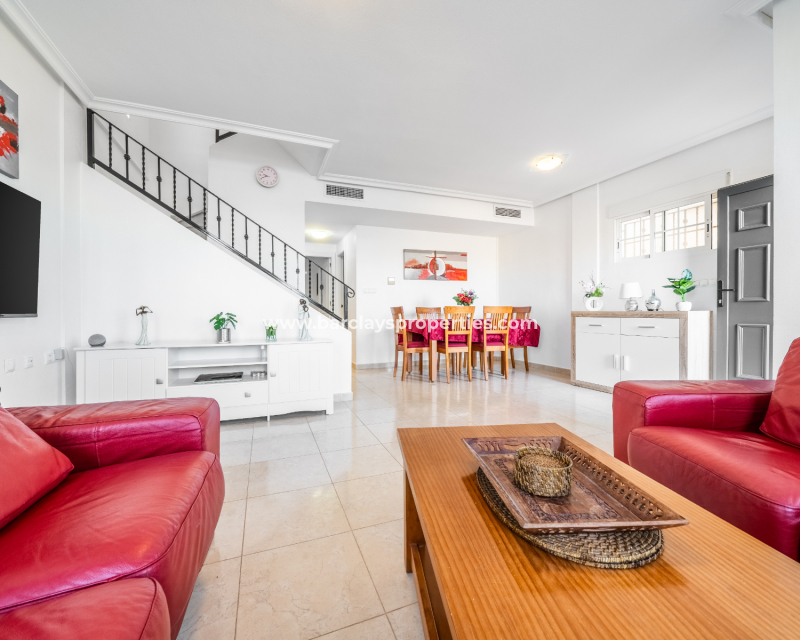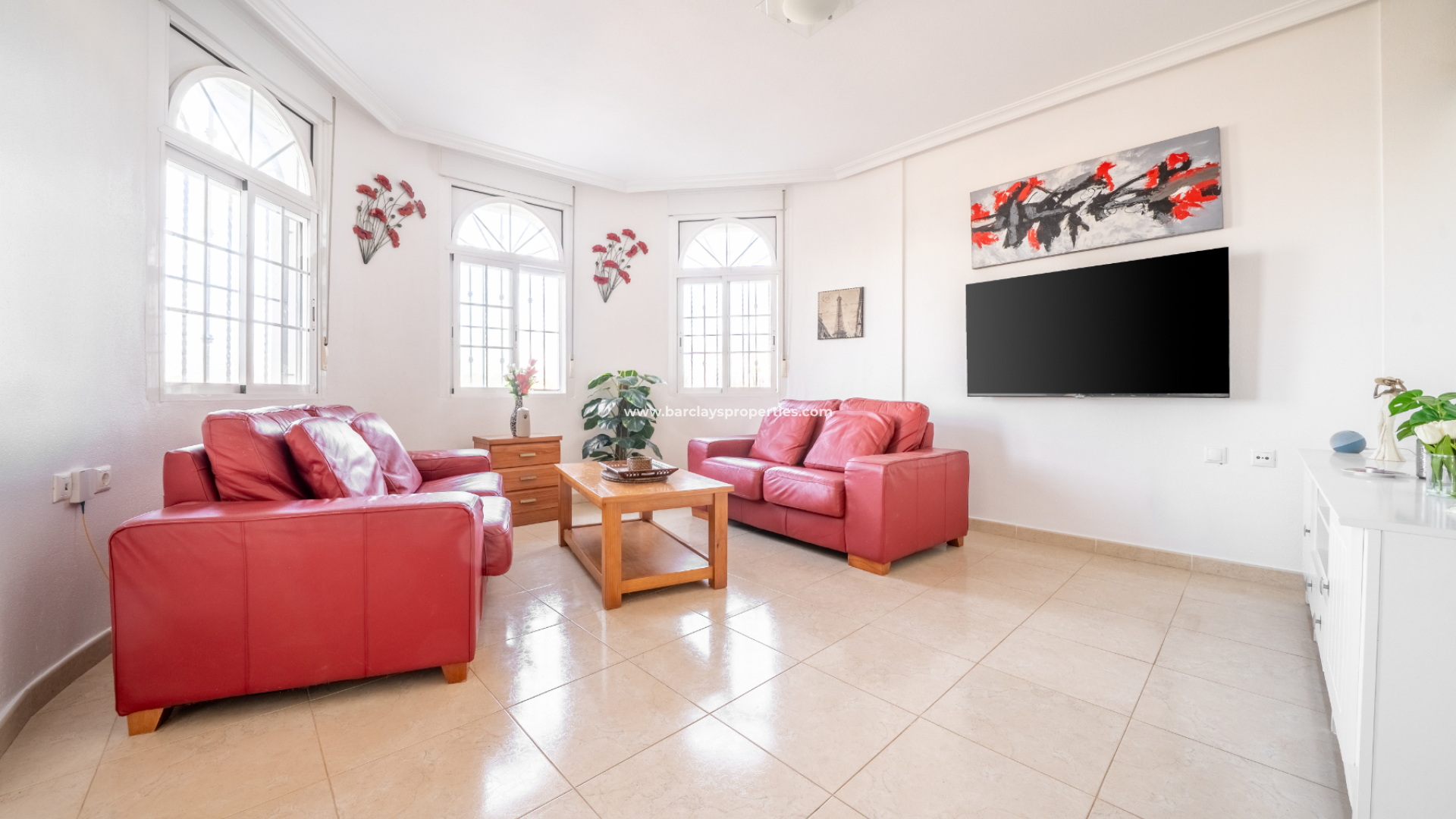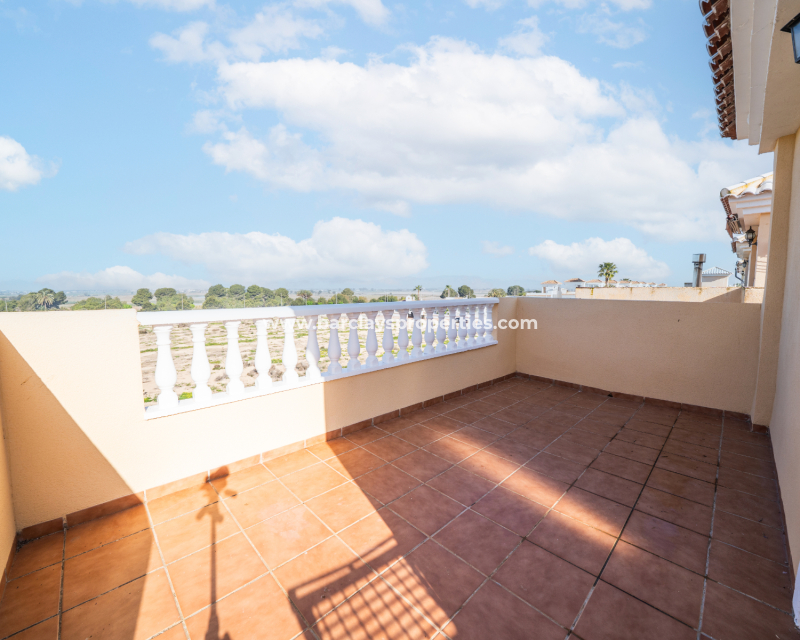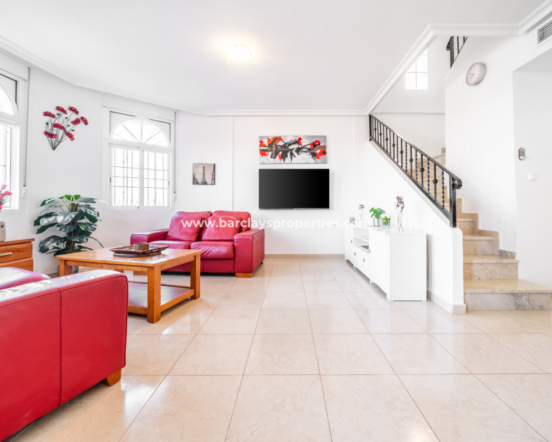 Präsentiert wird diese großzügige und gut gelegene freistehende Immobilie in der begehrten Urbanisation El Oasis, San Fulgencio – direkt neben der beliebten Urb. La Marina. Dieses Haus bietet ➡️ bequemen Zugang zum Gemeinschaftspool. Darüber hinaus befinden sich mehrere Einkaufszonen, Geschäfte, Restaurants und wichtige Einrichtungen in unmittelbarer Nähe. Der Strand ist nur fünf Autominuten entfernt, und der Flughafen Alicante ist in etwa fünfundzwanzig Minuten erreichbar.