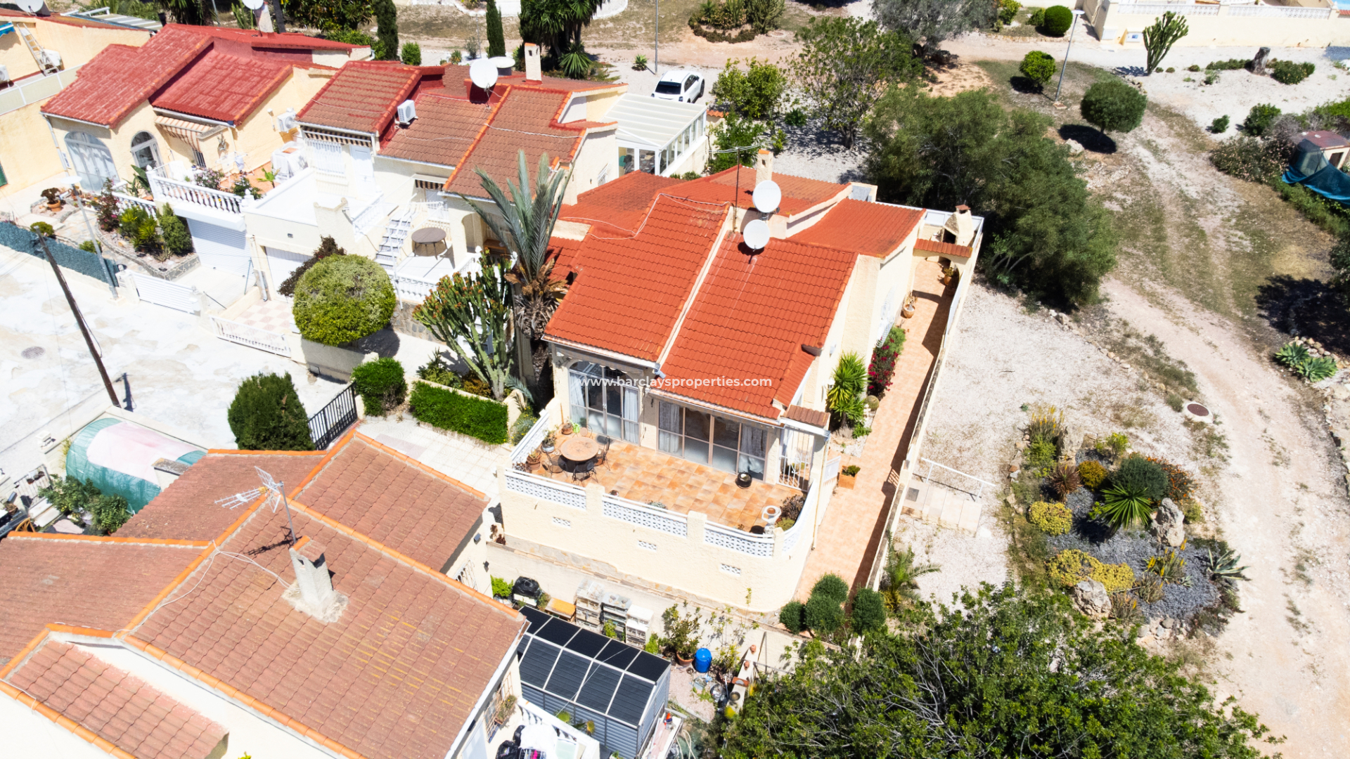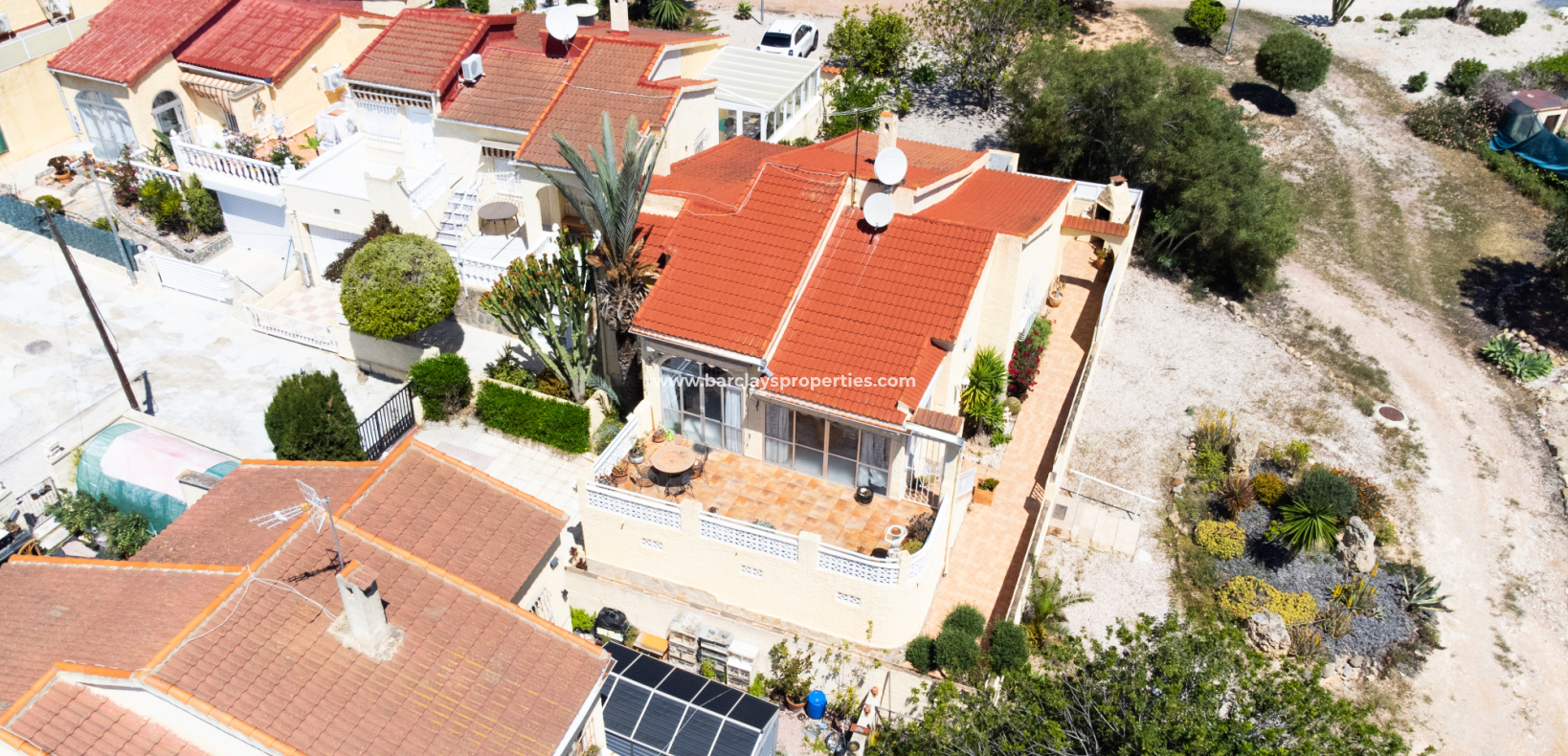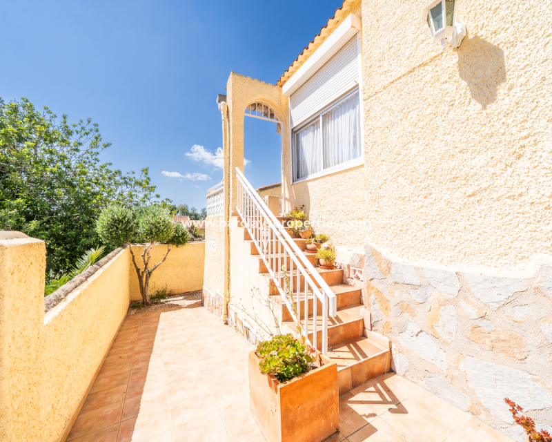 Wir präsentieren Ihnen diese wunderschöne, freistehende Villa in der begehrten Urbanisation La Marina, gelegen in einer ruhigen Sackgasse auf einem ✅großzügigen, südlich ausgerichteten Eckgrundstück. Umgeben von Grünflächen an der Seite und auf der Rückseite, genießt das Haus ganztägig Sonne und eine ruhige Umgebung.