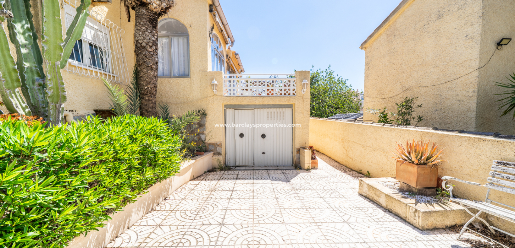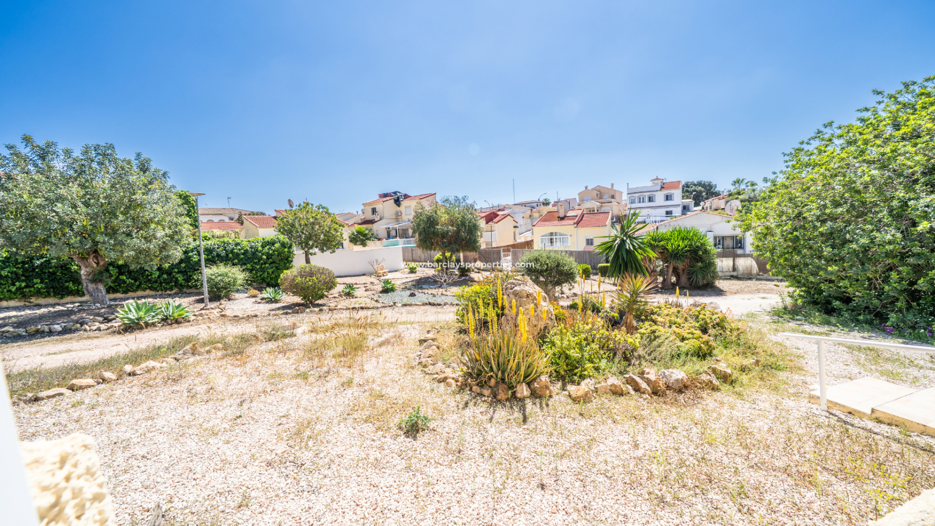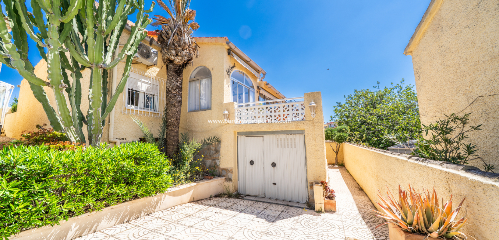 Wir präsentieren Ihnen diese wunderschöne, freistehende Villa in der begehrten Urbanisation La Marina, gelegen in einer ruhigen Sackgasse auf einem ✅großzügigen, südlich ausgerichteten Eckgrundstück. Umgeben von Grünflächen an der Seite und auf der Rückseite, genießt das Haus ganztägig Sonne und eine ruhige Umgebung.