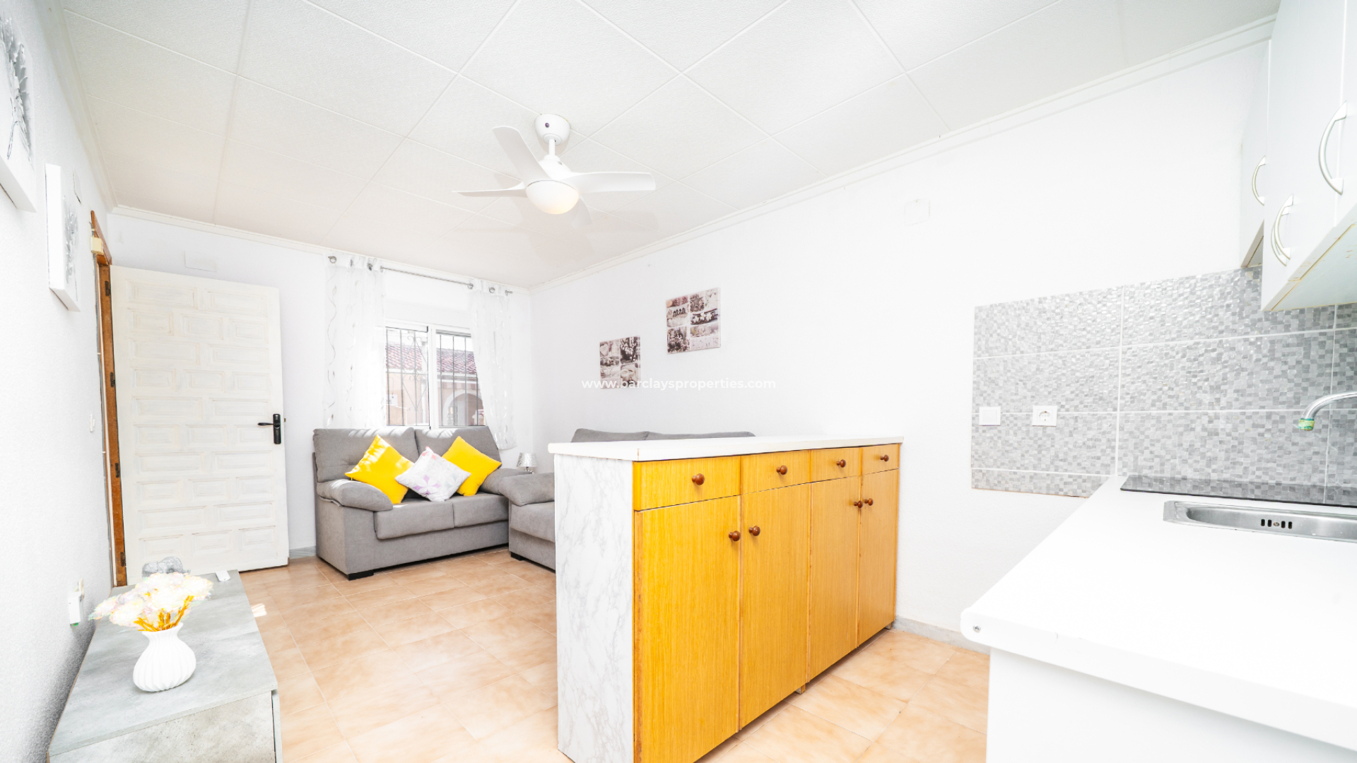 Diese charmante Reihenhausimmobilie in Ostlage, ein Modell „Fina“, befindet sich in der beliebten Urbanisation La Marina. ➡️ Kürzlich renoviert und teilmöbliert angeboten, bietet das Haus ca. 40 m² Wohnfläche auf einer Ebene.