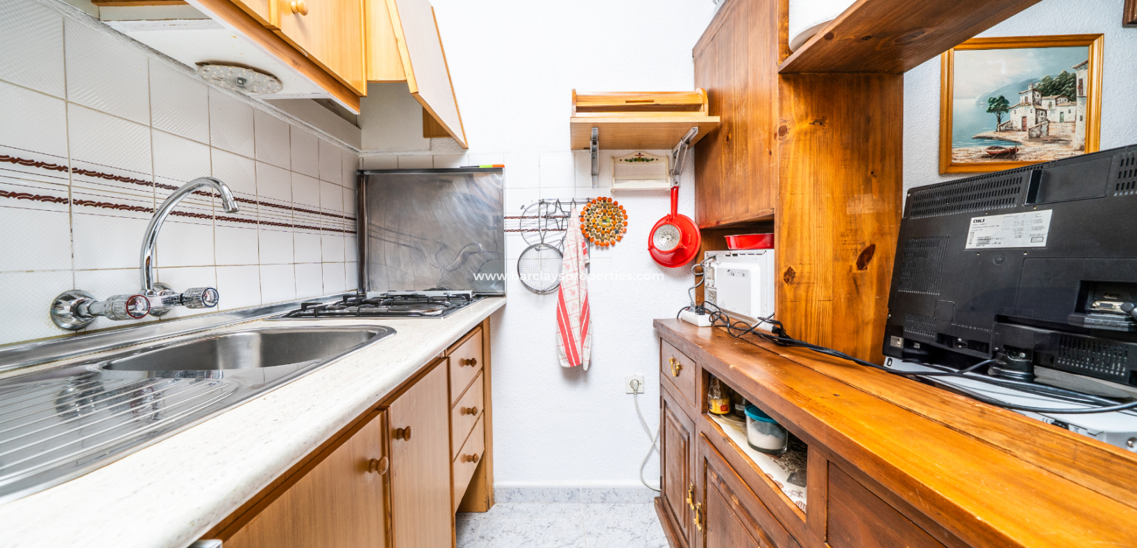 Im Erdgeschoss befindet sich ein helles Wohnzimmer mit Klimaanlage, eine gut ausgestattete Küche mit Gasherd und ein großzügig erweiterter Doppelschlafzimmer. Das Badezimmer verfügt über eine Badewanne mit Dusche, WC und einen modernen Waschtisch.