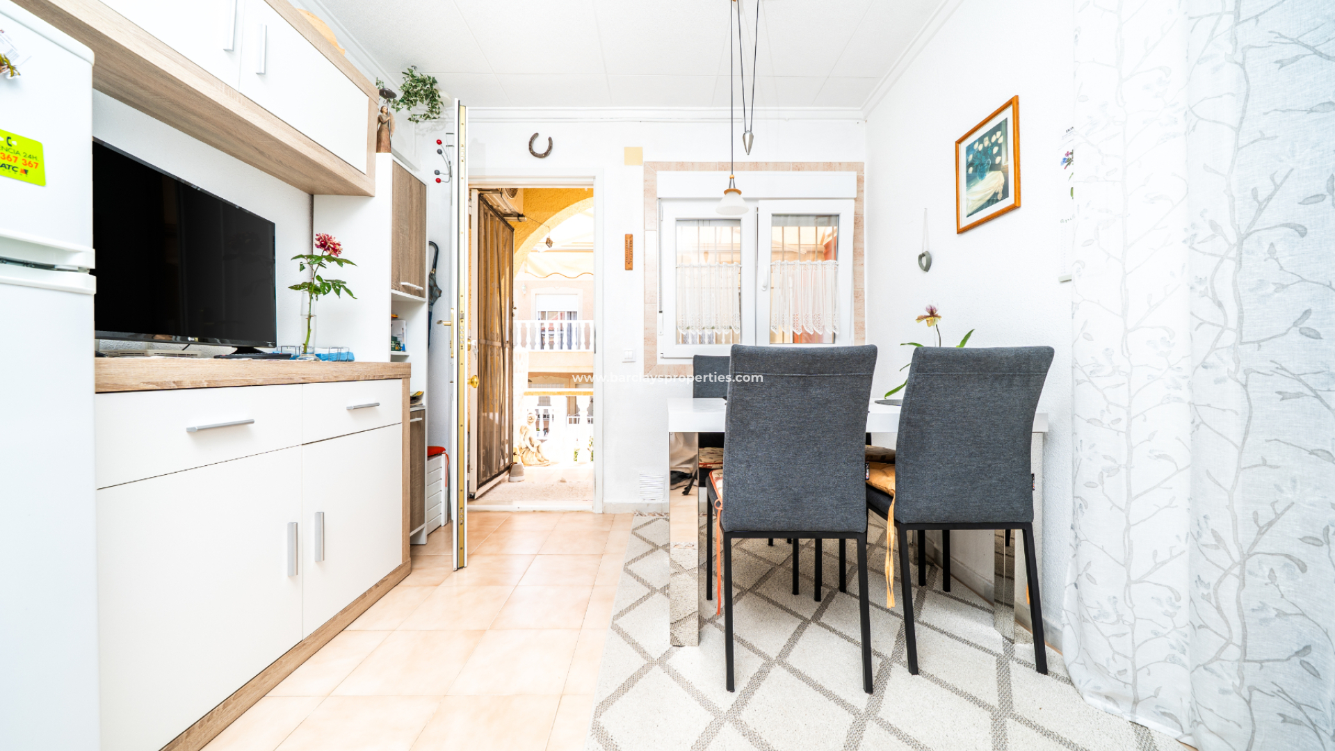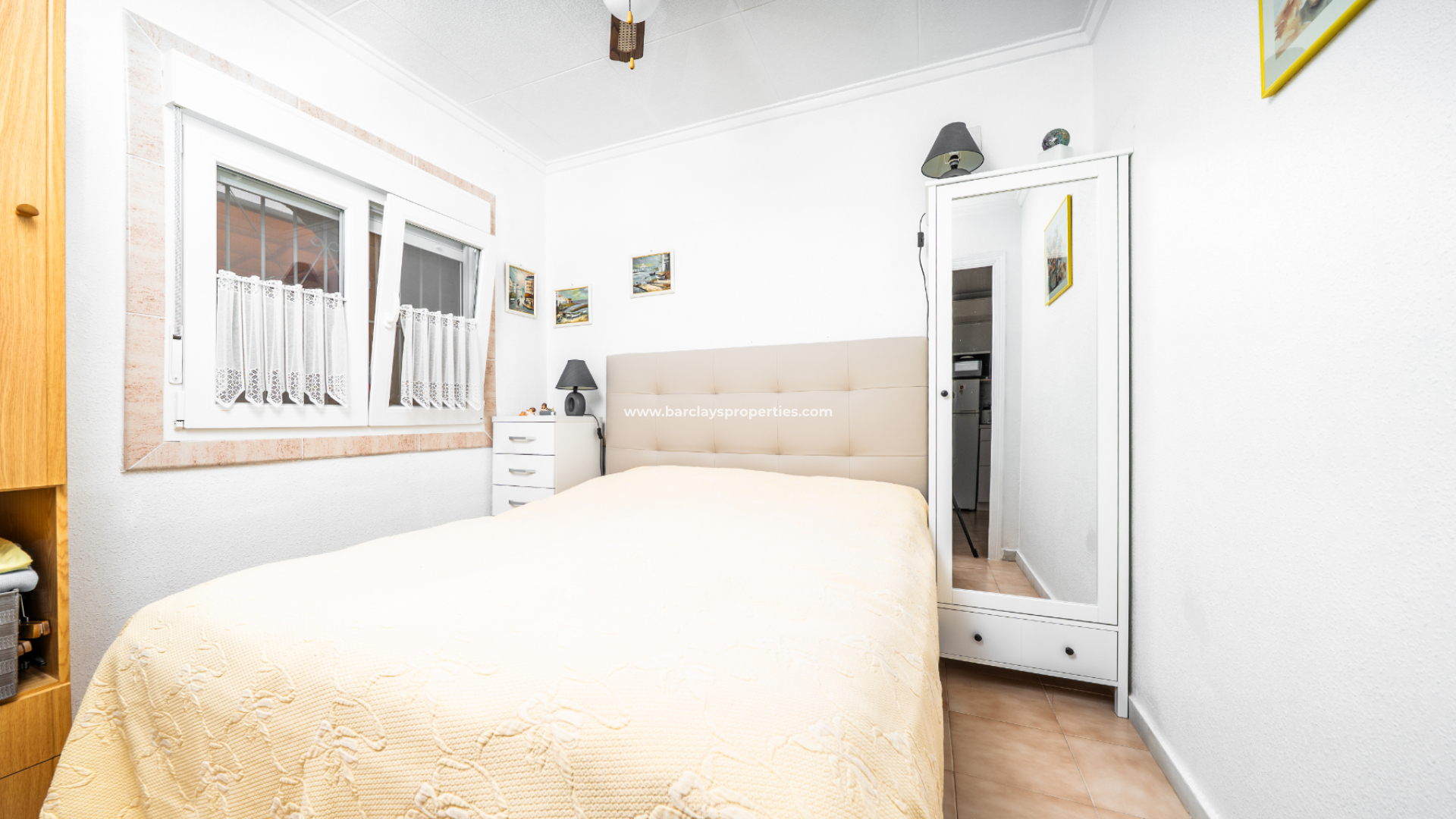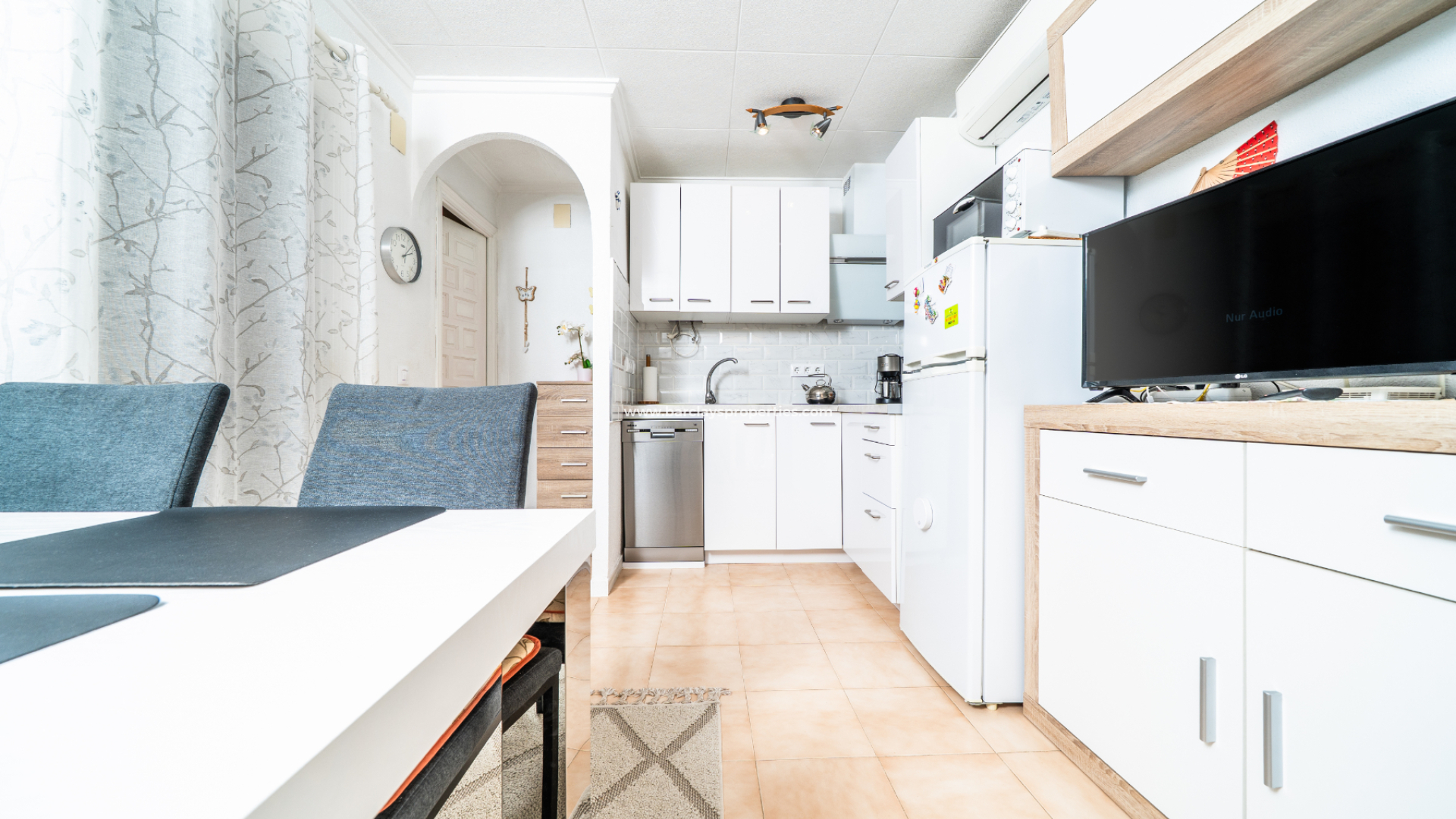 Dieses charmante Haus mit 1 Schlafzimmer und 2 Badezimmern bietet 57 m² gut aufgeteilte Wohnfläche, alles auf einer Ebene, und verfügt über eine offene Küche, doppelt verglaste Fenster und Klimaanlage. Die Immobilie wurde erweitert und verfügt über ein Untergeschoss, das zusätzlichen Raum und Funktionalität bietet. In ruhiger und dennoch zentraler Lage gelegen, nur 700 Meter von Annehmlichkeiten, 3 km vom Strand und 25 km vom Flughafen entfernt, ist sie ideal sowohl zur Eigennutzung als auch als Mietinvestition. Teilmöbliert angeboten, mit enthaltenen Elektrogeräten und hervorragendem Vermietungspotenzial, ist dies eine großartige Gelegenheit, ein gemütliches, pflegeleichtes Zuhause im Herzen der Costa Blanca zu erwerben.
