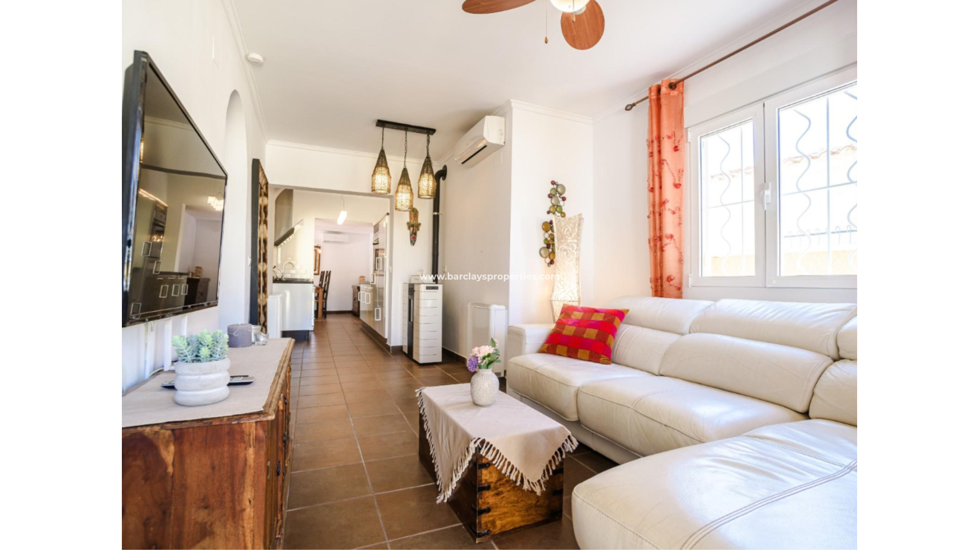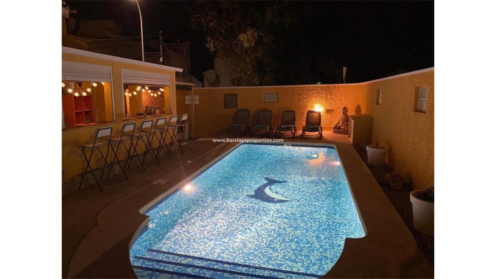 Charmant und vollständig renoviert präsentiert sich diese freistehende Villa mit 3 Schlafzimmern, 2 Badezimmern und einem zusätzlichen WC auf einem 268 m² großen Grundstück in der ruhigen und zugleich gut angebundenen Urbanisation La Marina, San Fulgencio. Die Immobilie ist ebenerdig gebaut, mit einer bebauten Fläche von 105 m², und bietet eine geräumige, separate Küche, ein helles Wohnzimmer mit Pelletofen, Klimaanlage im gesamten Haus sowie einen Hauswirtschaftsraum. Im Außenbereich verfügt die Immobilie über ➡️ einen privaten beheizten Pool, eine Außendusche, eine Gartenbar und großzügige Terrassenflächen – ideal zum Entspannen und Genießen der Sonne. Ebenfalls vorhanden sind ein privater Stellplatz, Abstellraum, doppelt verglaste Fenster, Solarpaneele, und sie wird komplett möbliert mit weißen Elektrogeräten verkauft. Nur 5 km vom Strand, 800 m zu den örtlichen Annehmlichkeiten, 10 km zum Golfplatz und 25 km zum Flughafen Alicante entfernt, ist die Lage ideal für Dauerwohnsitz oder Ferienvermietung. ➡️ Diese Villa bietet nicht nur Komfort und Stil, sondern auch hervorragendes Vermietungspotenzial und Energieeffizienz.