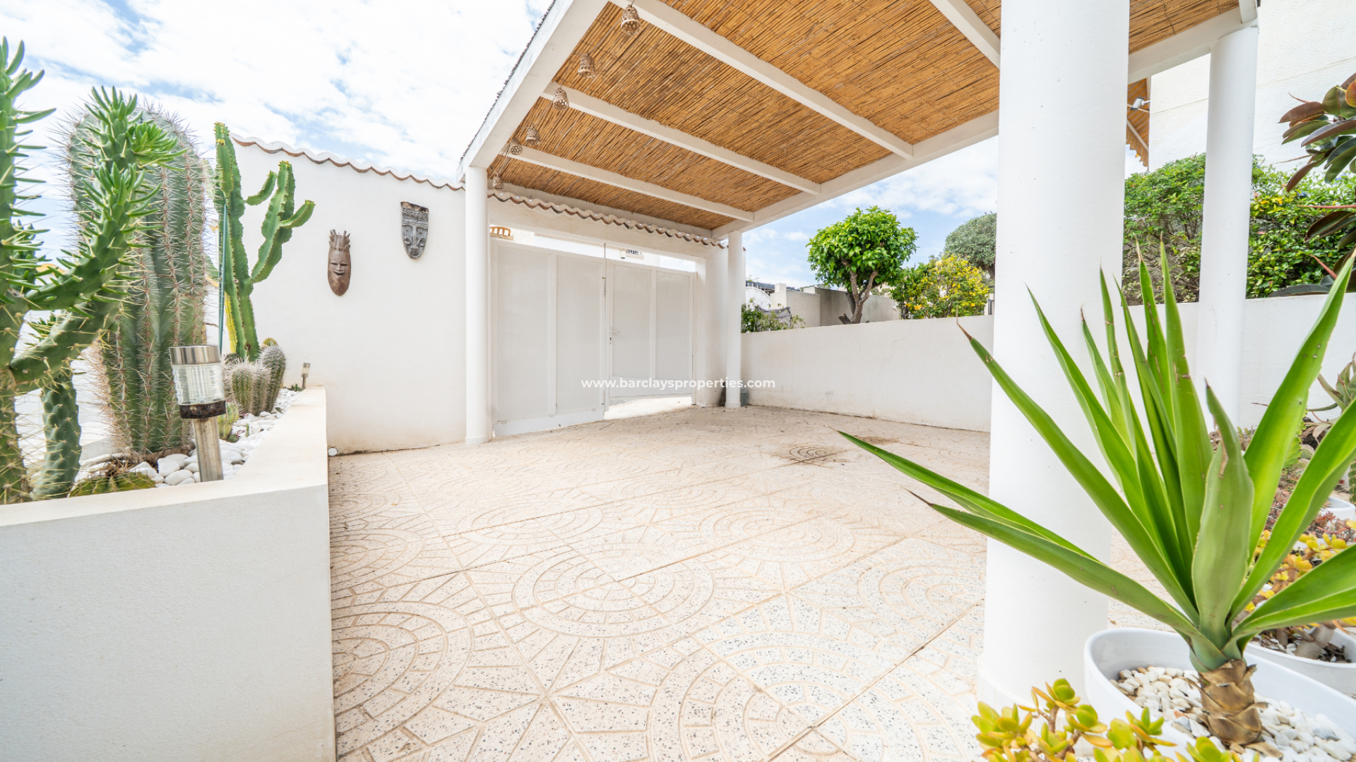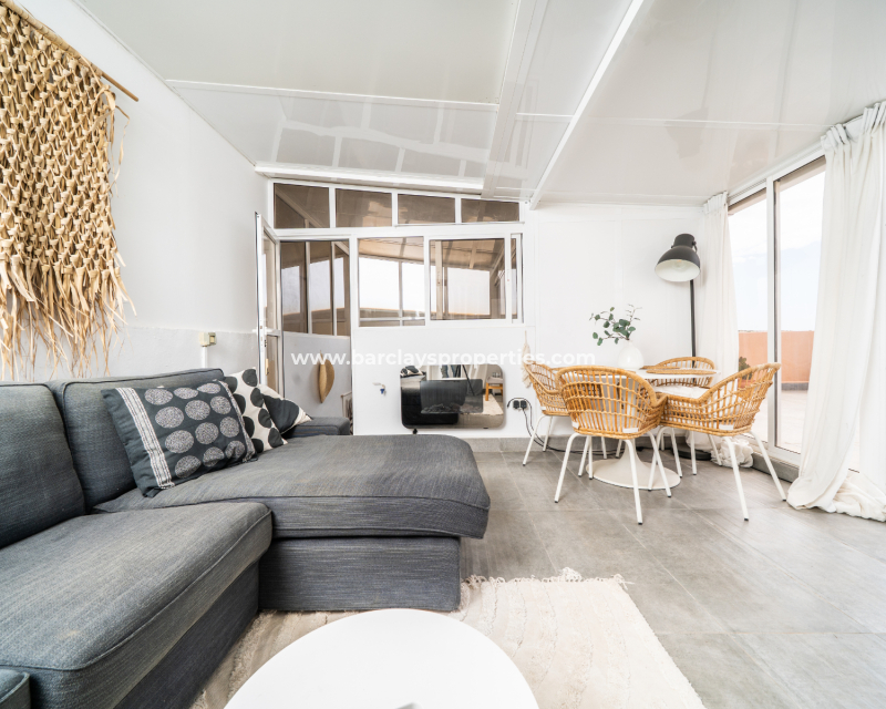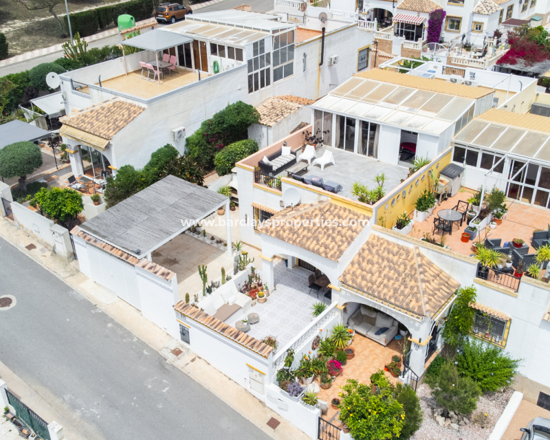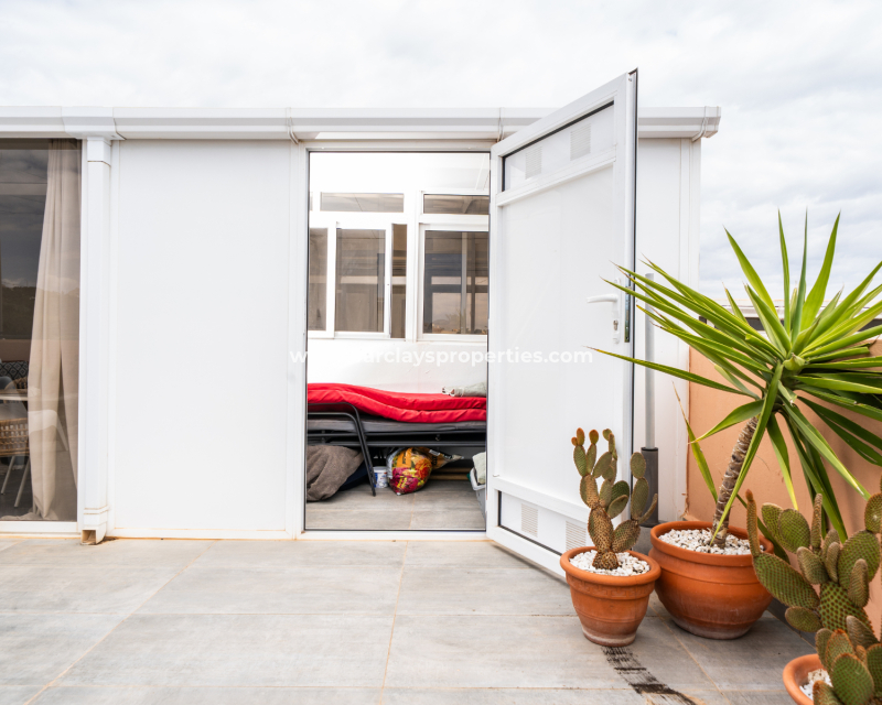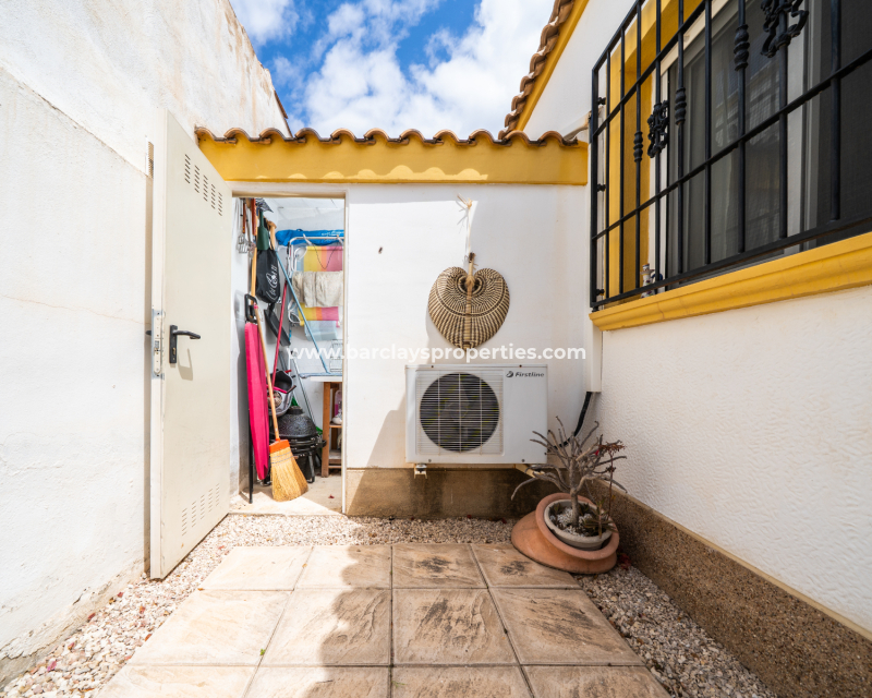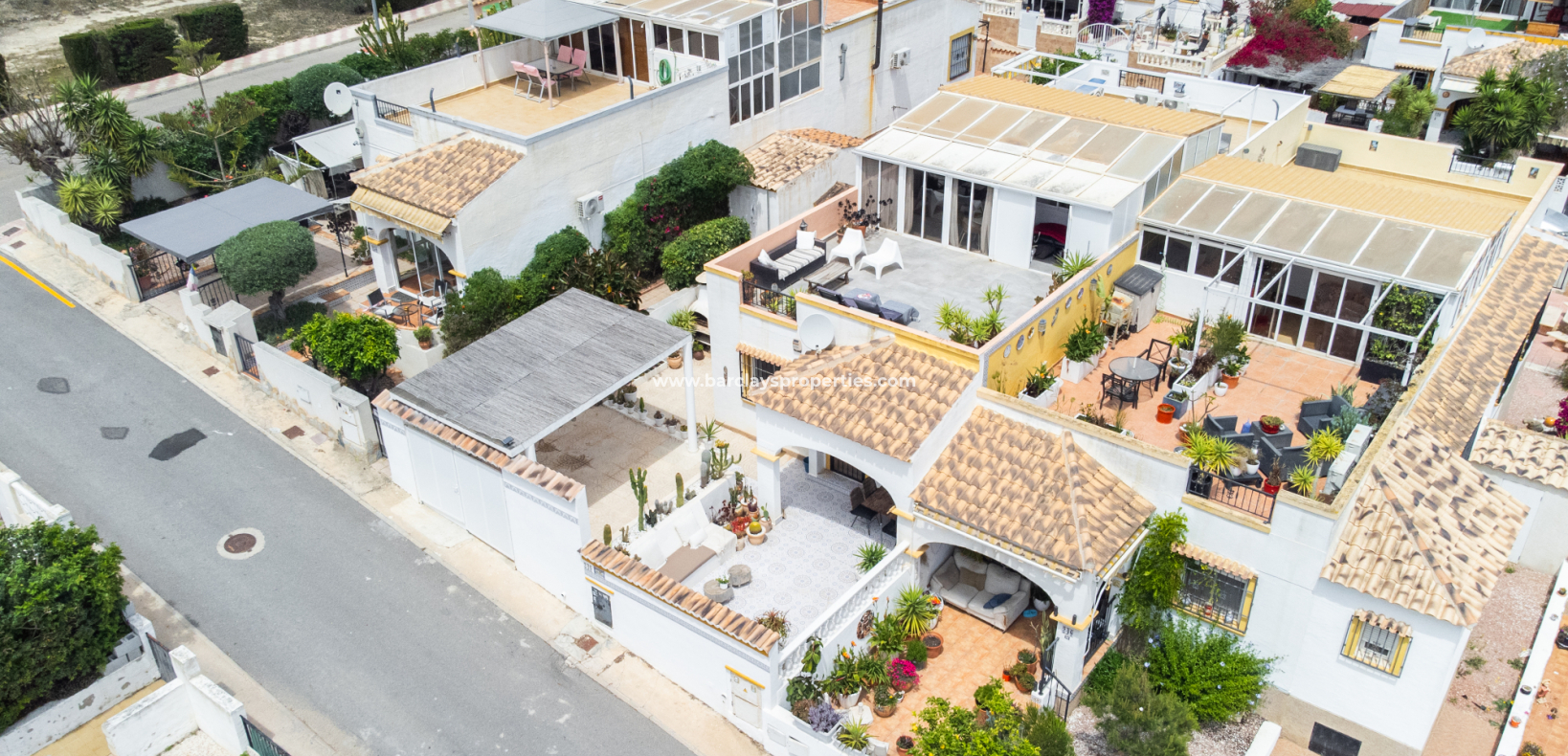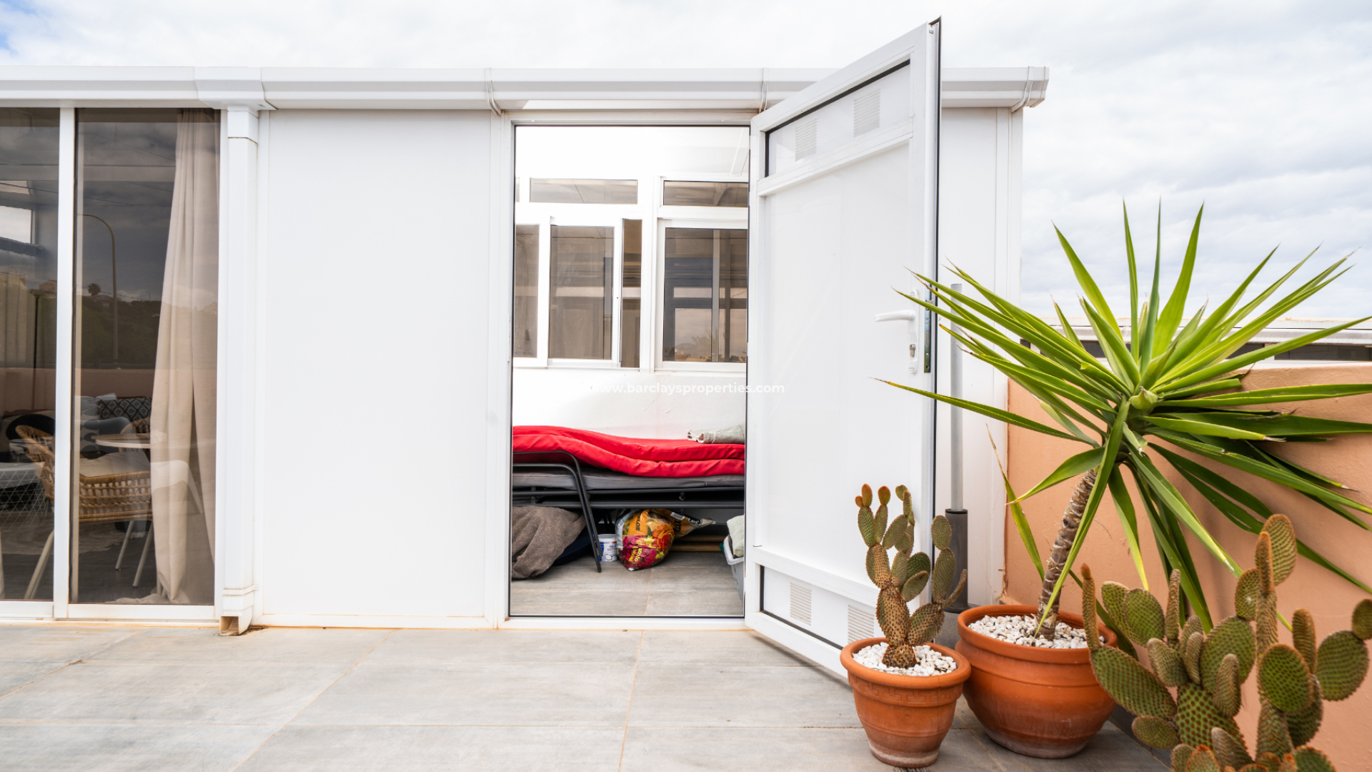 Ein Highlight dieses Hauses ist der großzügige, verglaste Wintergarten, der erweitert wurde und viel Licht sowie zusätzlichen Wohnraum bietet – ideal zum Essen, Entspannen oder für Gäste. Das Solarium wurde neu gefliest und verfügt über zusätzlichen Stauraum. Von hier aus genießt man freie Sicht auf die Nachbarstadt Guardamar del Segura.