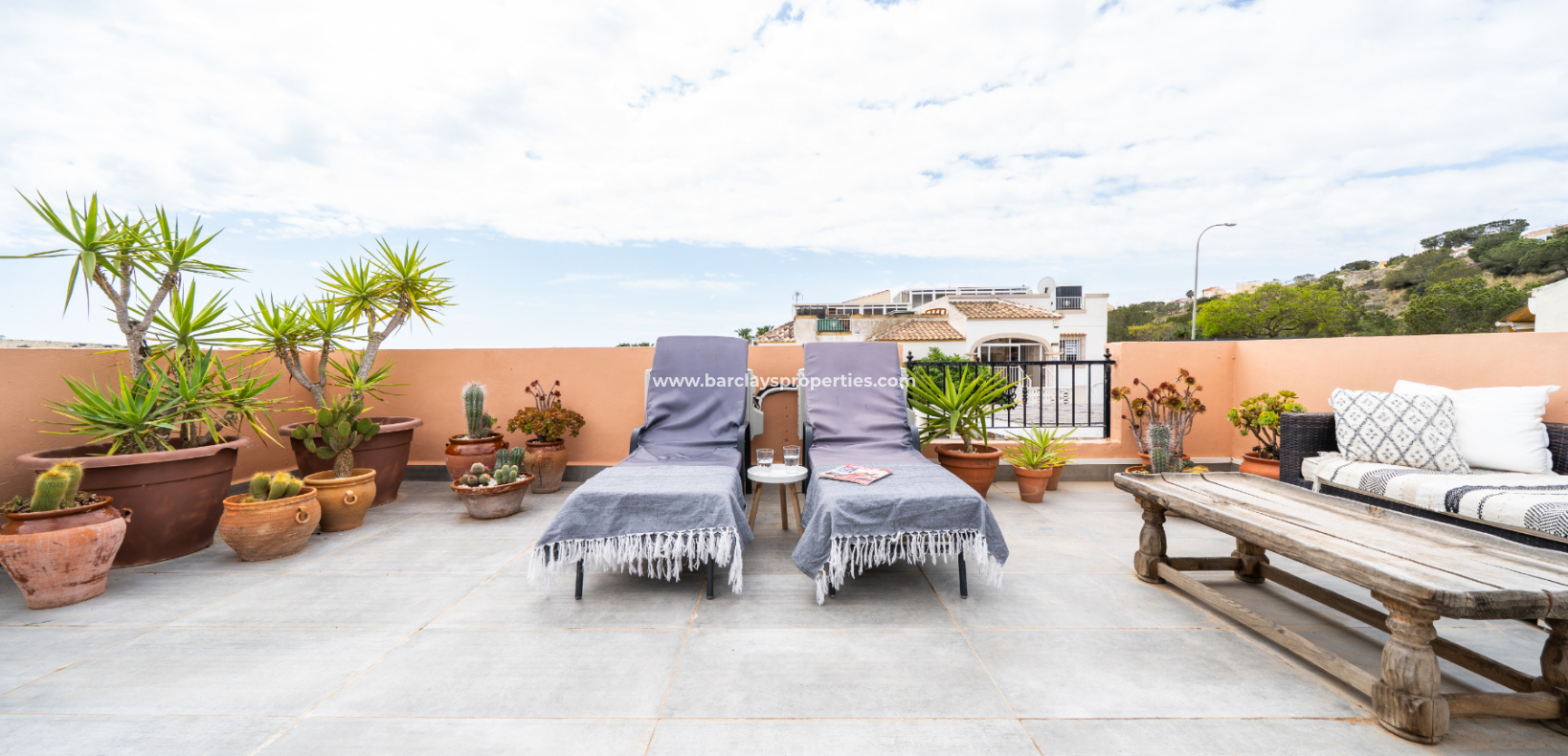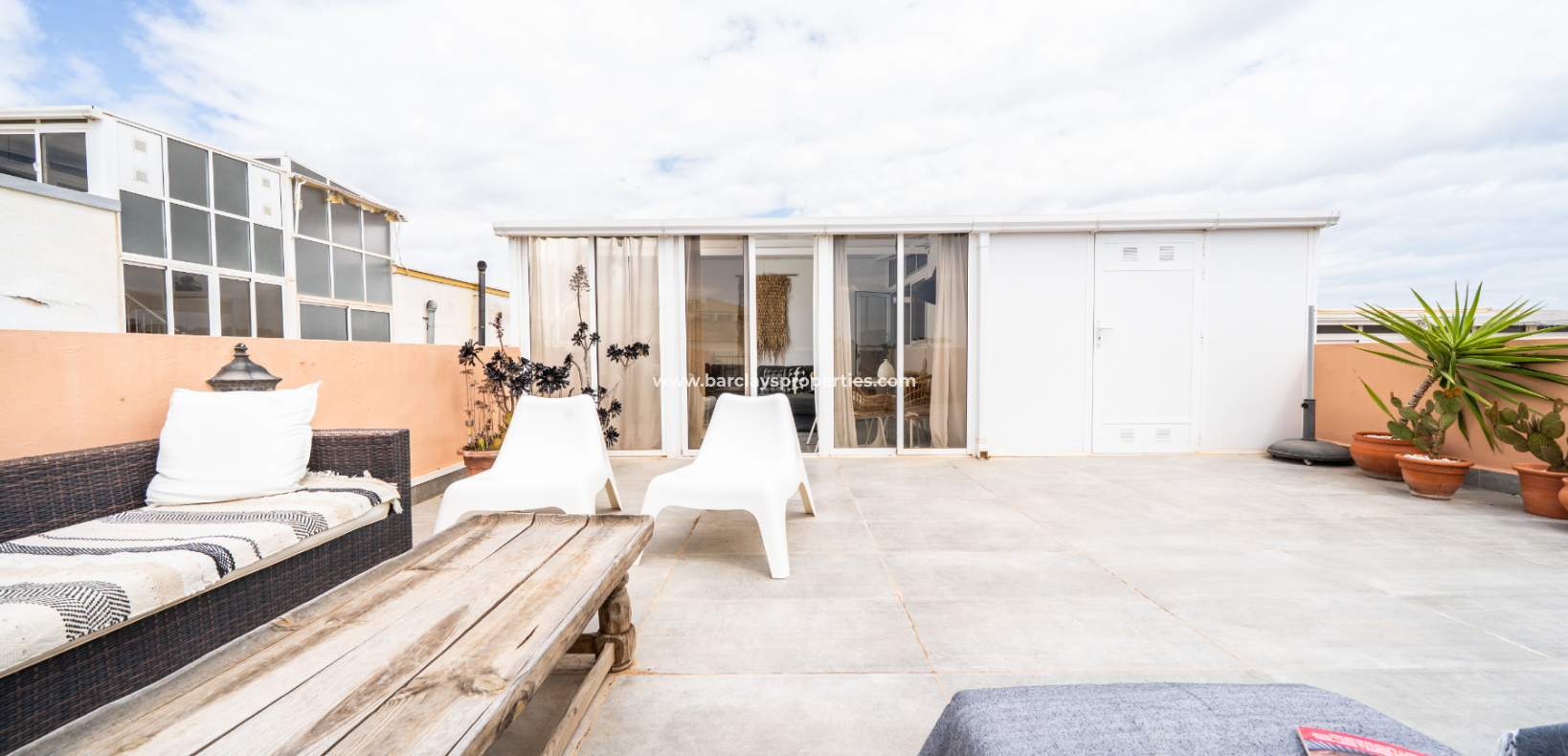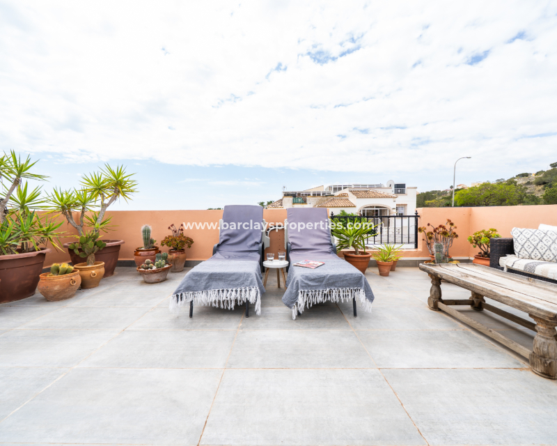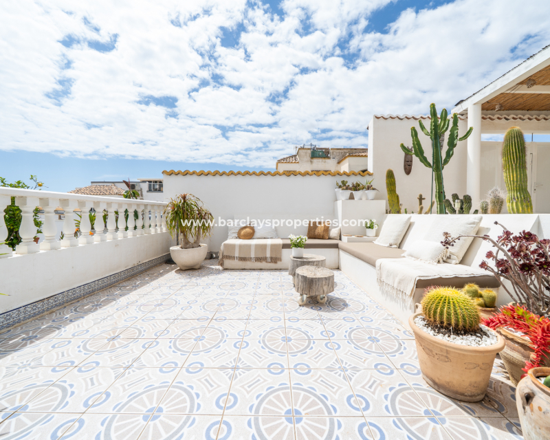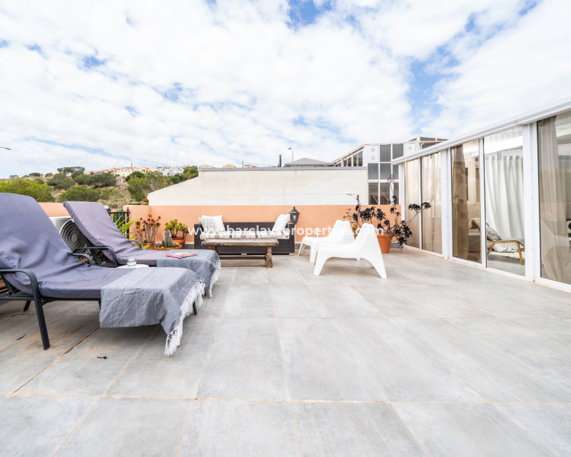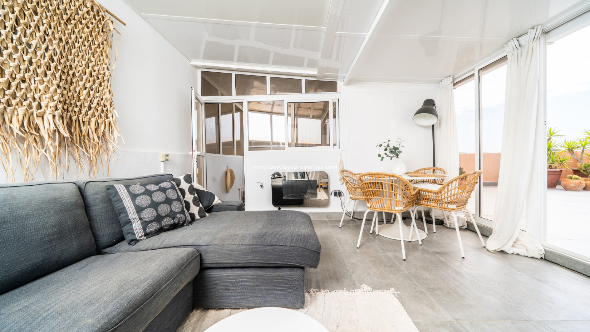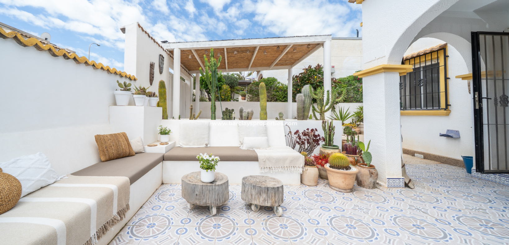 Ein Highlight dieses Hauses ist der großzügige, verglaste Wintergarten, der erweitert wurde und viel Licht sowie zusätzlichen Wohnraum bietet – ideal zum Essen, Entspannen oder für Gäste. Das Solarium wurde neu gefliest und verfügt über zusätzlichen Stauraum. Von hier aus genießt man freie Sicht auf die Nachbarstadt Guardamar del Segura.