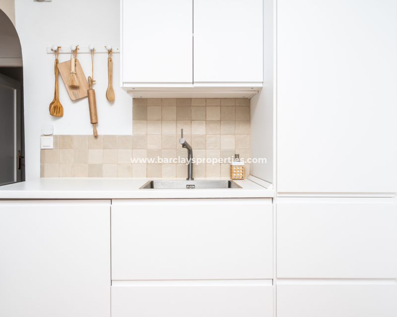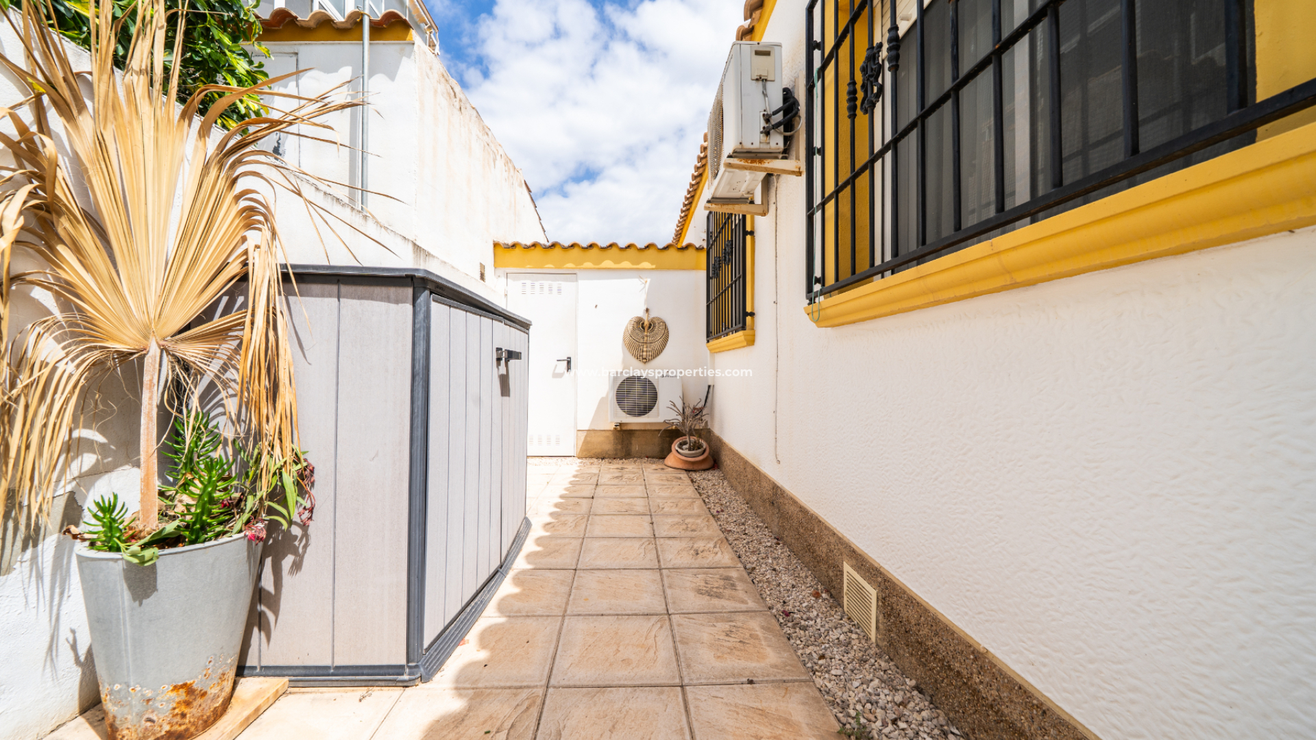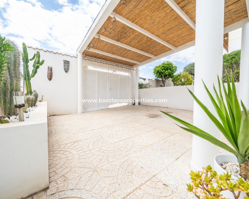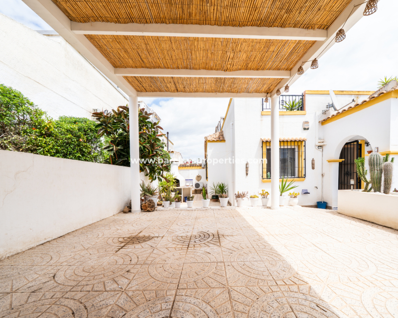 Die Immobilie liegt in einer freundlichen Wohnanlage, die ✅Zugang zu zwei großen Gemeinschaftspools und gepflegten Gärten bietet – perfekt, um das Leben im Freien zu genießen und Teil einer angenehmen Nachbarschaft zu sein. Der gefließte Vorgarten ist von hohen Mauern und Toren umgeben, die für Privatsphäre sorgen, und bietet einen überdachten Stellplatz, einen Grillbereich und einen Abstellraum. Der gesamte Garten ist ebenerdig, pflegeleicht und bietet sowohl sonnige als auch schattige Bereiche für den täglichen Aufenthalt im Freien.
