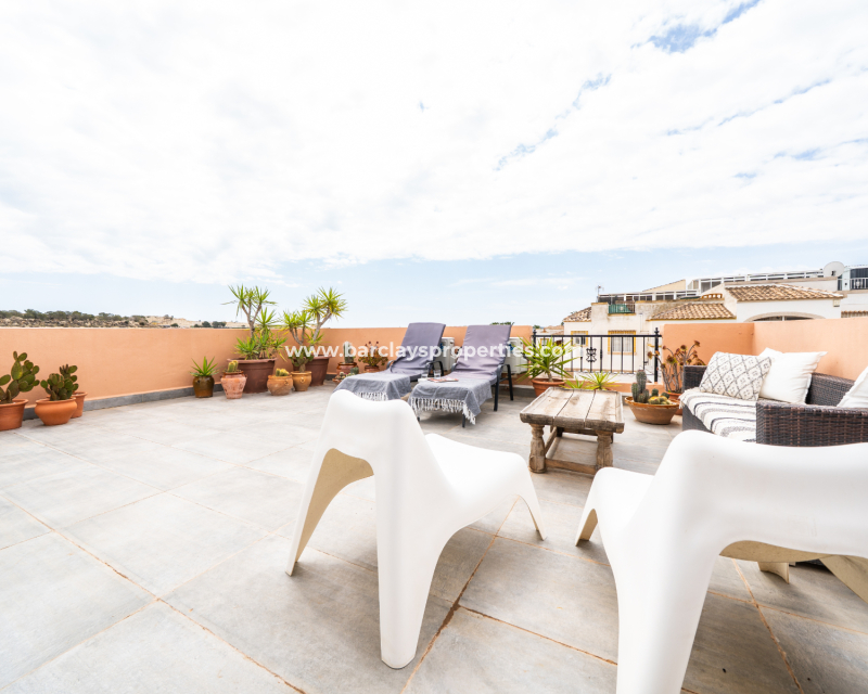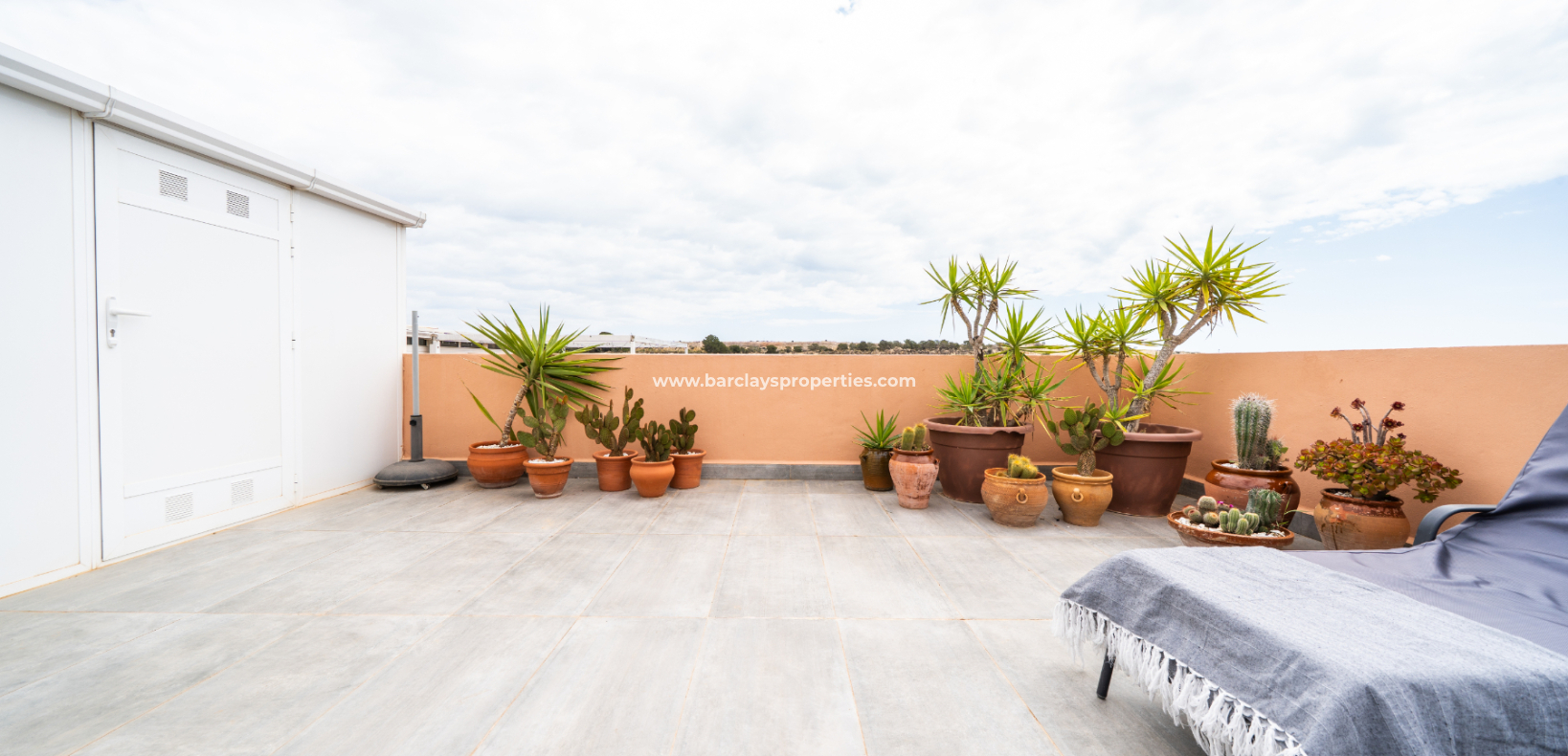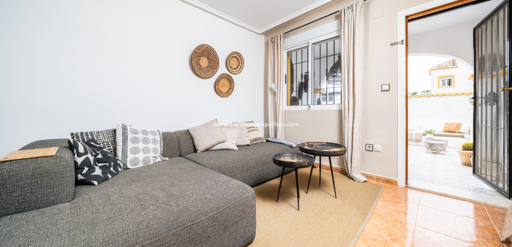 Diese gepflegte Immobilie im Quad-Stil, Modell „Julia“, befindet sich in der beliebten Urbanisation La Marina und bietet einen idealen Lebensstil in einer lebendigen, aber dennoch ruhigen Umgebung. Die Lage ist hervorragend – alle wichtigen Einrichtungen sowie das belebte Einkaufszentrum „Consum Square“ sind bequem zu Fuß erreichbar. Der herrliche Strand von La Marina Village ist nur fünf Autominuten entfernt, und Golfbegeisterte finden einen renommierten Golfplatz in nur 15 Minuten Entfernung. Der Flughafen Alicante ist in etwa 25 Minuten erreichbar.