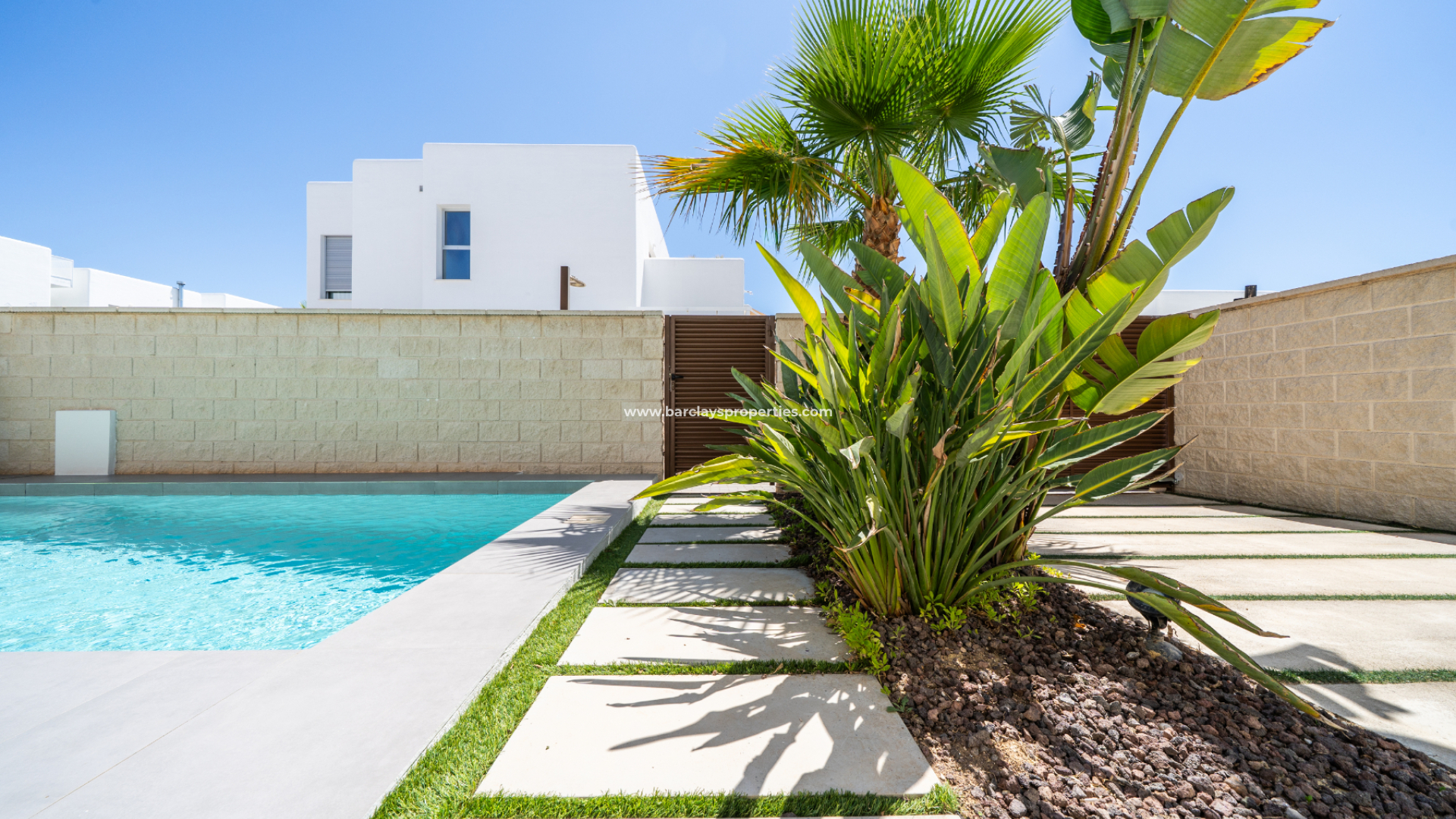 Diese beeindruckende, moderne, freistehende Villa mit zwei Etagen befindet sich auf einem pflegeleichten, ebenen Grundstück (gepflastert und mit Kunstrasen versehen) und bietet privaten Stellplatz auf dem Grundstück sowie einen ✅funkelnden privaten Swimmingpool mit Außendusche.