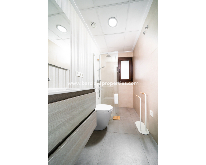 Im Obergeschoss befinden sich zwei weitere Doppelschlafzimmer, jeweils mit Zugang zum sonnigen Solarium, sowie ein gemeinsames en-suite Badezimmer mit begehbarer Dusche. Das Haus ist mit einem ✅Solarsystem mit 10 Panels (4–5 kW) ausgestattet, was zur Energieeffizienz und zur Senkung der Nebenkosten beiträgt.