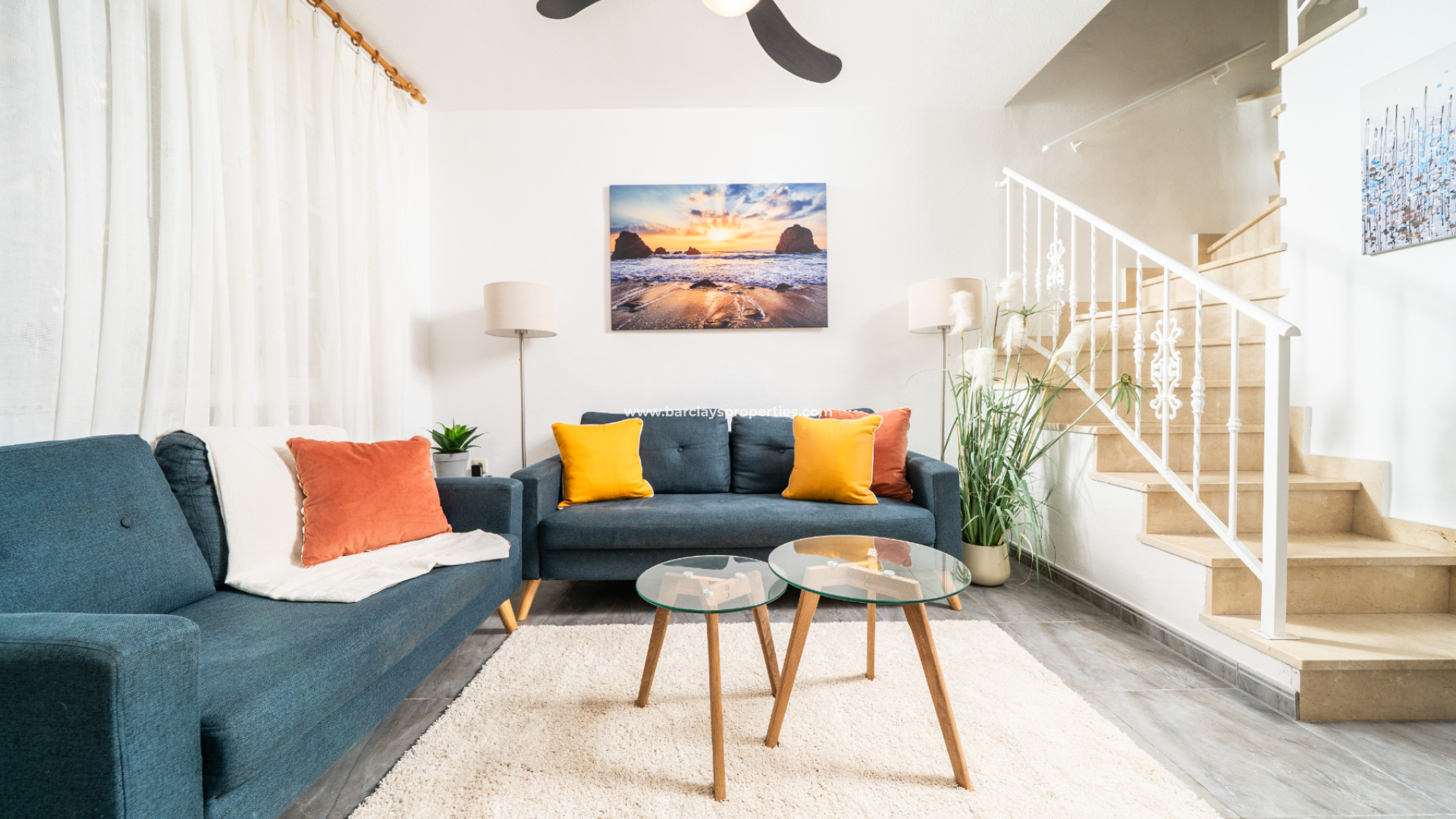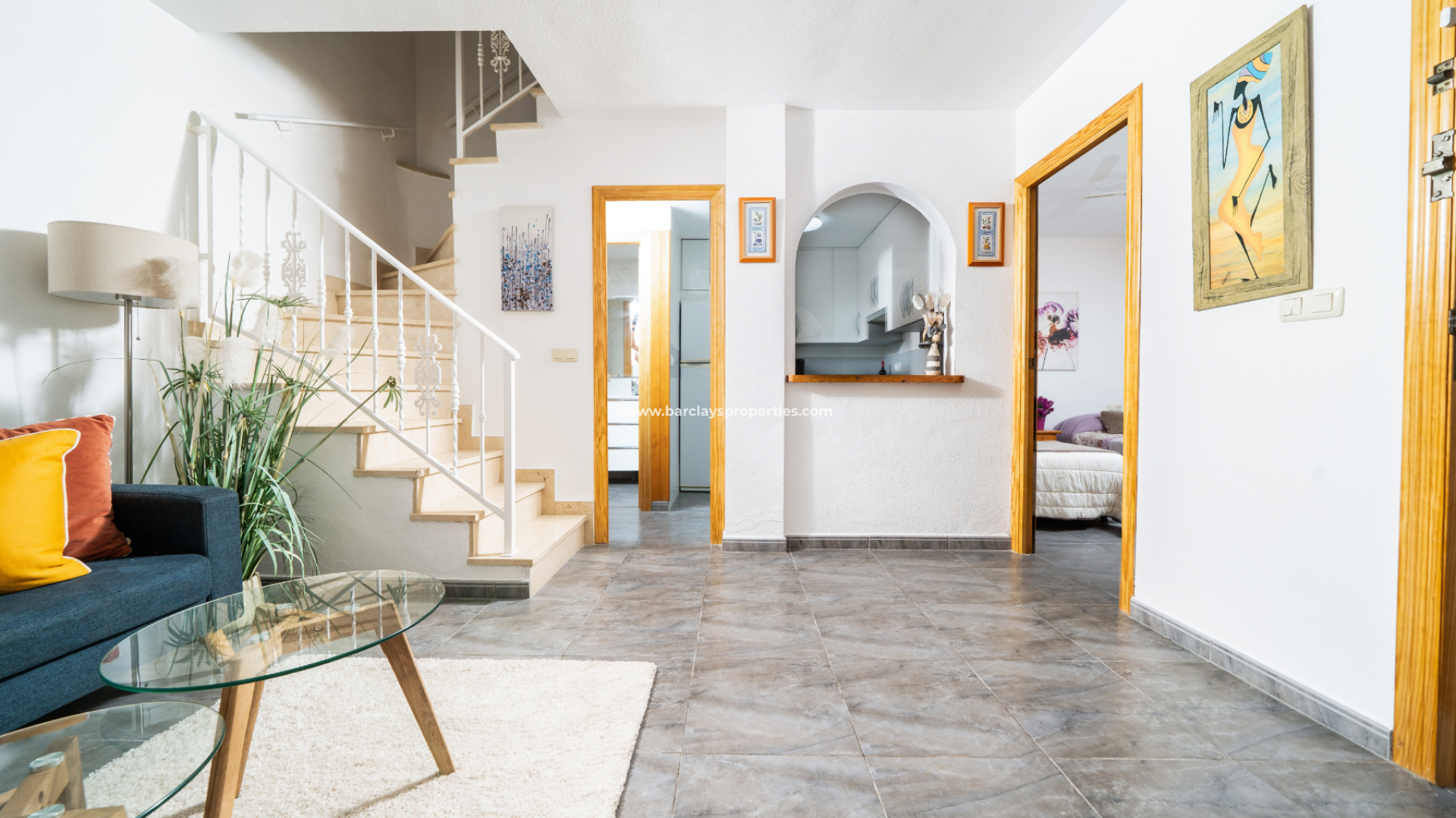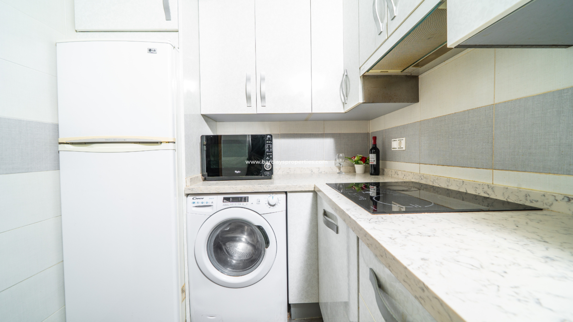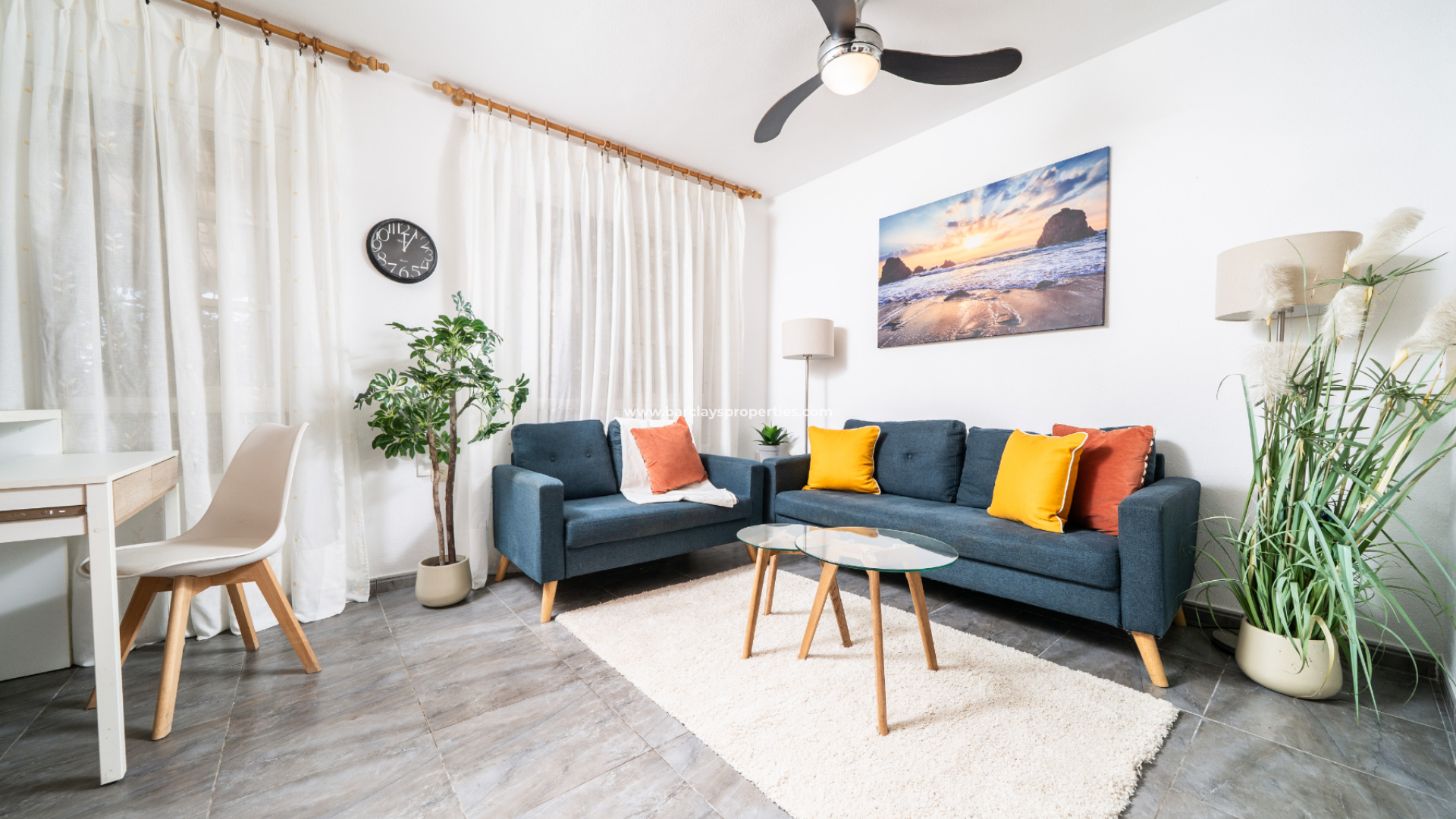 Die Immobilie im Erdgeschoss verfügt über ein helles, farbenfrohes, geräumiges Wohnzimmer mit Deckenventilator, eine voll ausgestattete, frisch aussehende Küche, ein Schlafzimmer mit zwei Einzelbetten, Einbauschränken und einem Deckenventilator sowie ein Badezimmer mit Eckdusche, WC und Waschtisch.