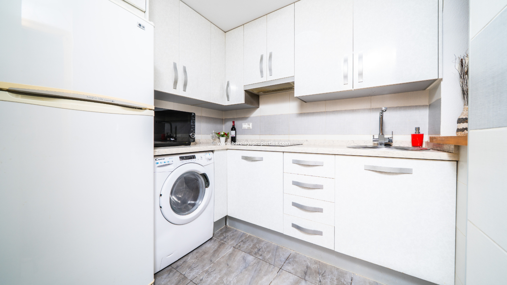 Sie können alle Annehmlichkeiten zu Fuß erreichen, von lokalen spanischen Restaurants bis zur internationalen Küche, von lokalen Märkten, die frisches Obst und Gemüse verkaufen, bis zu internationalen Supermärkten. La Marina bietet Selbstversorgung, es gibt viele Geschäfte, Apotheken, Tierärzte, Ärzte, Polizeistationen, Banken und alle anderen Arten von Annehmlichkeiten, die Sie zu Fuß erreichen können. Ein Auto ist nicht notwendig! La Marina ist gut miteinander verbunden, zum Strand und auch zu anderen Gebieten über die Buslinie, außerdem stehen immer Taxis zur Verfügung.