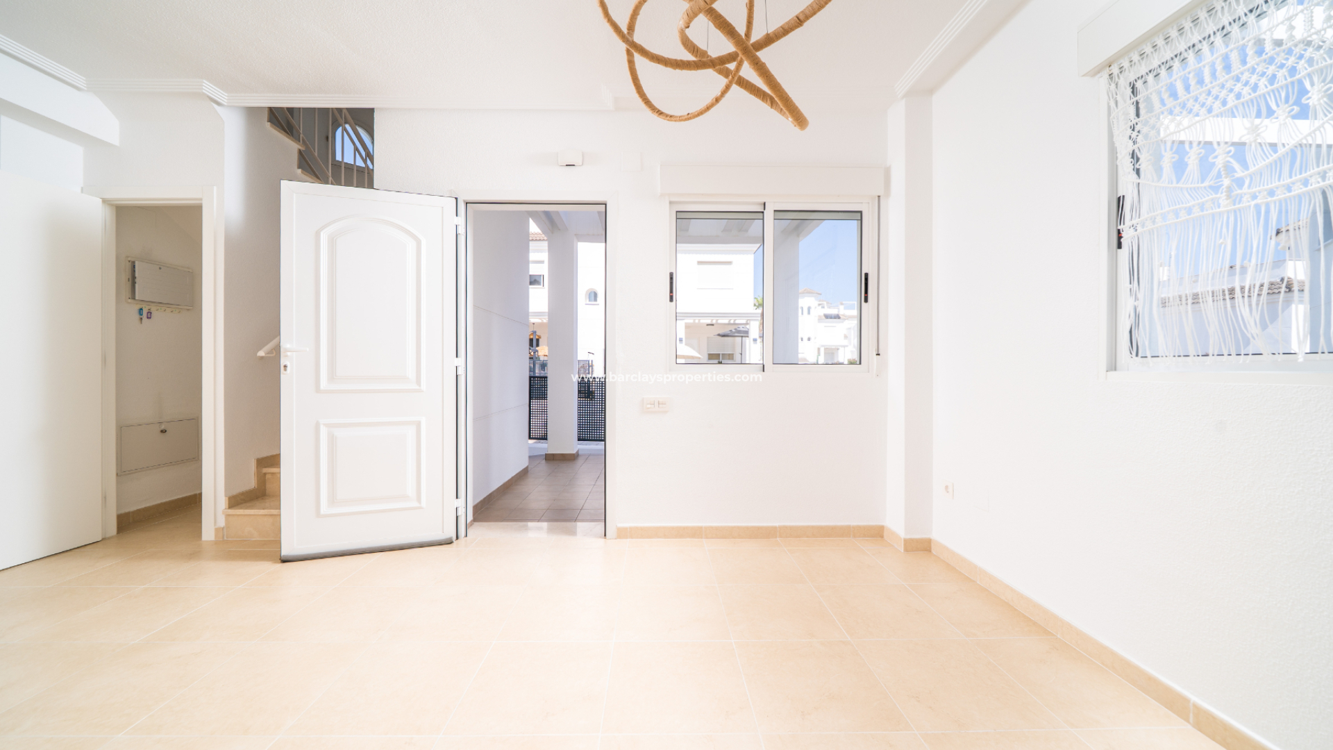 Die Immobilie verfügt über 2 Schlafzimmer und 3 Badezimmer (eins davon en-suite zum Hauptschlafzimmer), großzügige Wohn- und Essbereiche, eine gut ausgestattete Küche, Abstellräume (darunter ein großer Stauraum unter der Treppe), Terrassen vorne und hinten, eine private Terrasse am Hauptschlafzimmer sowie ein Solarium auf dem Dach mit herrlichem Blick auf die Umgebung.
