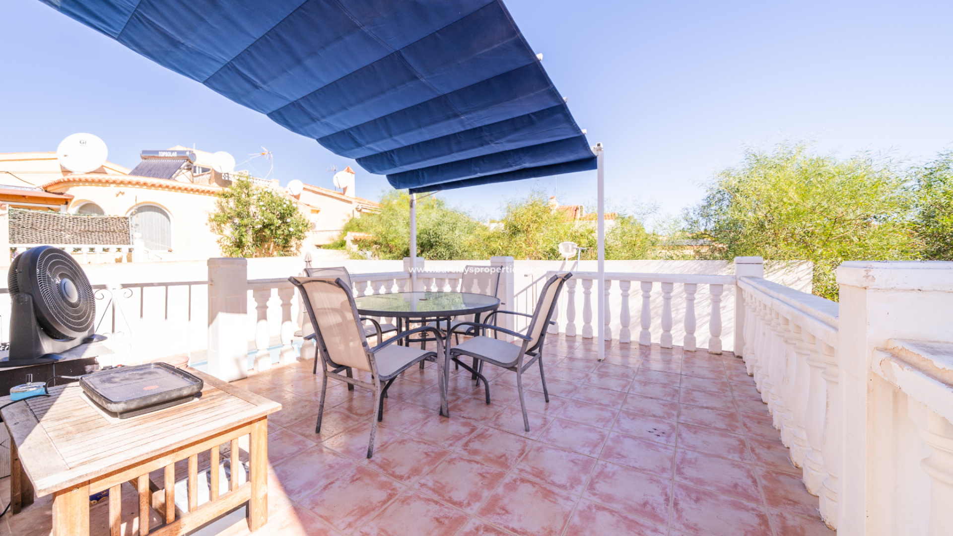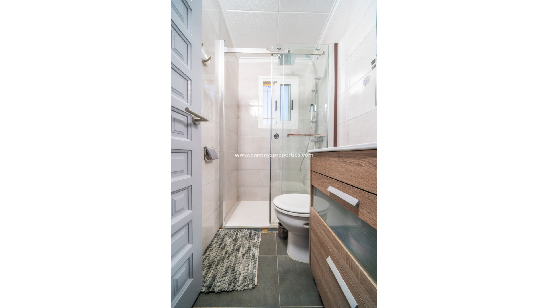 Wohnen Sie stilvoll und nachhaltig in dieser renovierten freistehenden Villa, die sich in einer ruhigen Sackgasse in der beliebten Urbanisation La Marina, San Fulgencio, befindet. Die Villa ist nur wenige Gehminuten von Annehmlichkeiten und dem wöchentlichen Donnerstagsmarkt entfernt, wo Sie frische Produkte und lokale Köstlichkeiten genießen oder sich in einem der Cafés bei einer Erfrischung entspannen können, während Sie die Welt an sich vorbeiziehen lassen. Dieses Haus, ein erweitertes Modell Rosa, wurde sorgfältig modernisiert und verfügt über 2 Schlafzimmer und 1 Badezimmer.