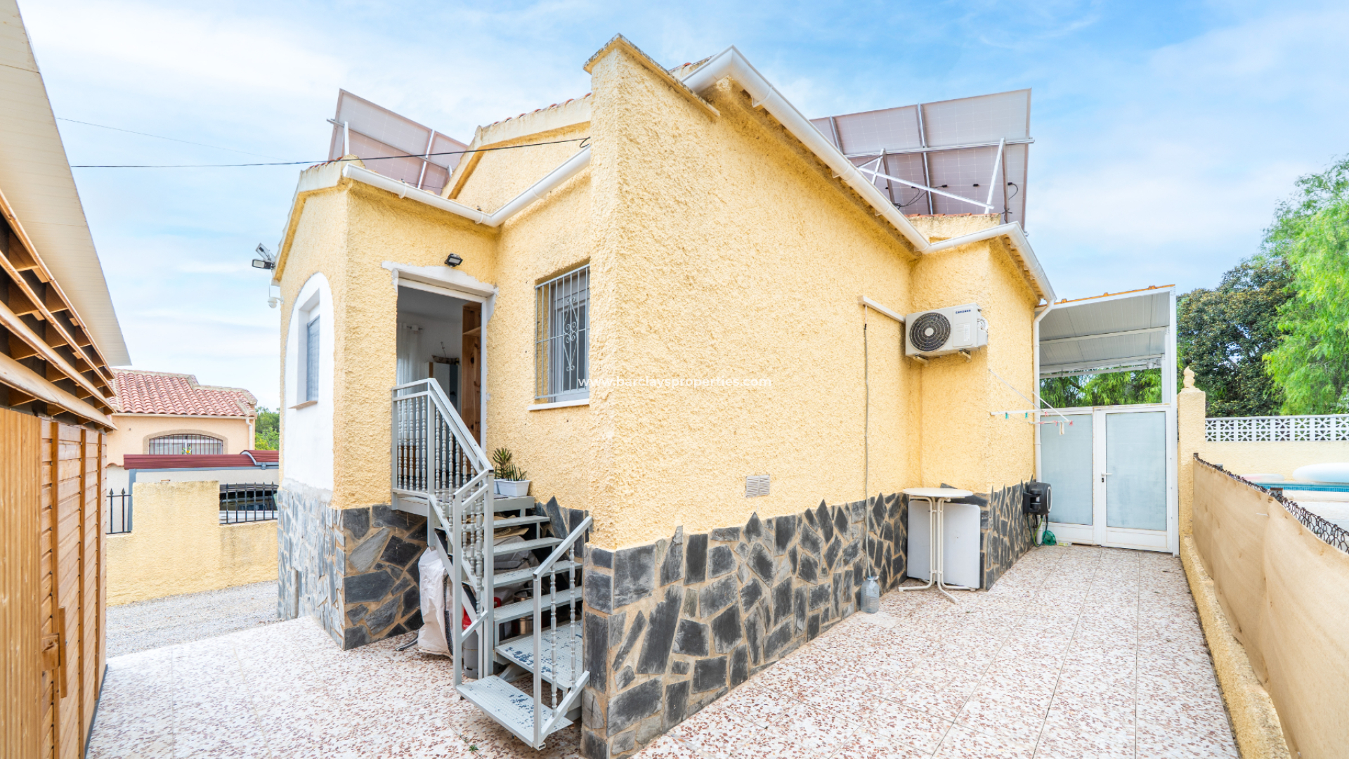 Eine brandneue, moderne Außenküche mit Gasherd wird durch einen großen Holzschuppen ergänzt, der sich ideal für zusätzlichen Stauraum eignet. ➡️ Energieeffizienz wird durch Solarpaneele und ein Batteriesystem gewährleistet, wodurch die Betriebskosten niedrig bleiben.