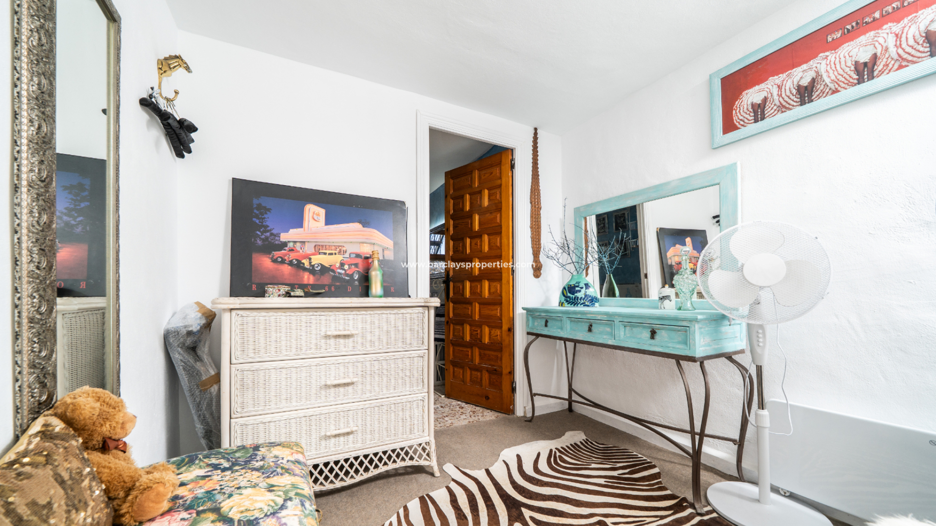 Das Haupthaus bietet ein helles, geräumiges Wohn- und Esszimmer mit Terrassentüren, die auf einen nach Osten ausgerichteten Balkon führen – perfekt, um die Morgensonne zu genießen. Die Küche ist vollständig elektrisch ausgestattet und von guter Größe, ergänzt durch einen Hauswirtschafts- und Waschbereich. Ein Doppelschlafzimmer sowie ein modernes Badezimmer mit ebenerdiger Dusche, WC und Waschtisch vervollständigen das Innere. Ein privates Sonnensolarium bietet zusätzlichen Außenwohnbereich mit freiem Blick. Hinter dem Haus befindet sich eine Grünfläche, die bei Spaziergängern beliebt ist und zudem die Gemeinschaftsgärten beherbergt, in denen Nachbarn ihr eigenes Obst und Gemüse anbauen.