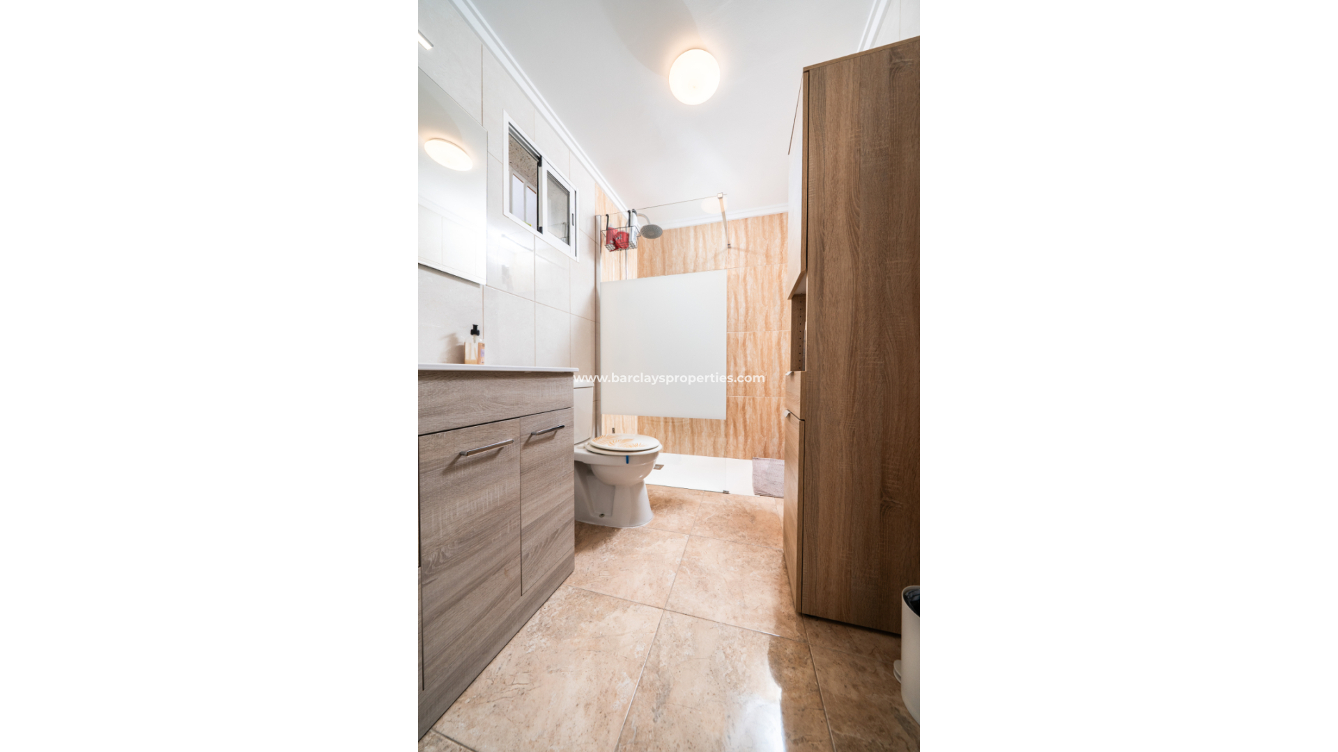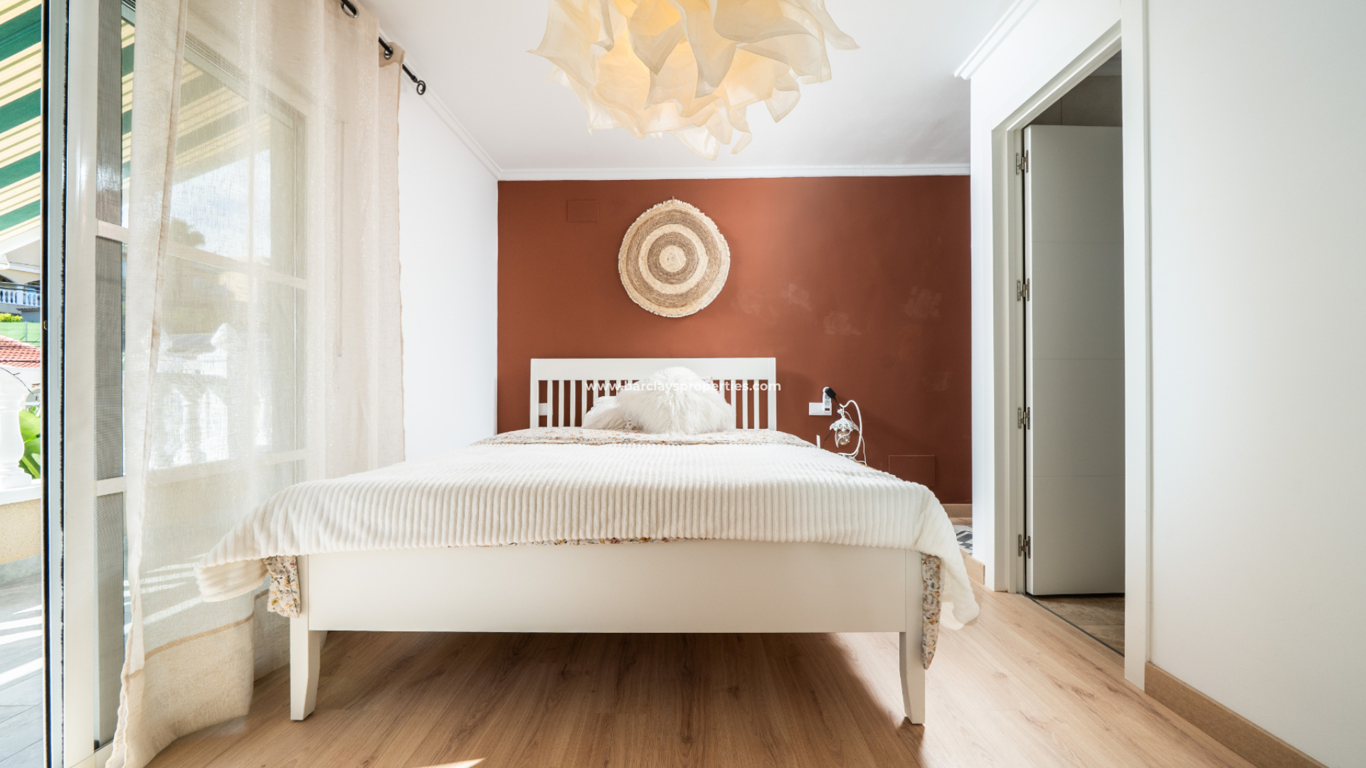 Im Obergeschoss bietet das Hauptschlafzimmer Privatsphäre und Komfort und verfügt über ein stilvolles en-suite Badezimmer mit ebenerdiger Dusche und Klimaanlage für ganzjährigen Komfort. Von hier aus öffnen sich Terrassentüren zu einer großen Sonnenterrasse, die das Anwesen umgibt und ➡️ atemberaubende Ausblicke auf die umliegende Landschaft und die nahe gelegene Stadt Guardamar del Segura bietet.