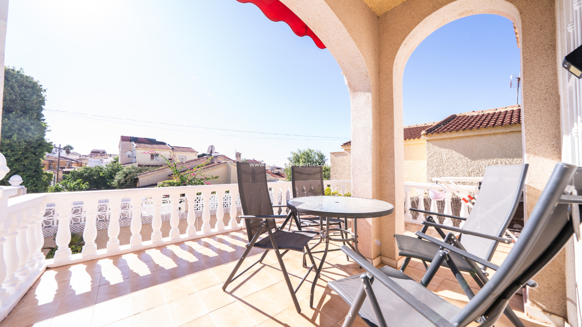 Der Zugang erfolgt über das elektrische Tor, das zum Parkplatz abseits der Straße führt. Der Außenbereich verfügt über eine glatte, wartungsarme Gota Gran-Oberfläche und eine erweiterte Terrasse, ideal für Mahlzeiten im Freien, die mit einer Sonnenmarkise ausgestattet ist, die während der wärmeren Monate Schatten spendet. Dieses Anwesen verfügt über einen Abstellraum unter der Terrasse sowie ➡️ Platz für den Bau eines privaten Pools, falls der neue Eigentümer dies wünscht.